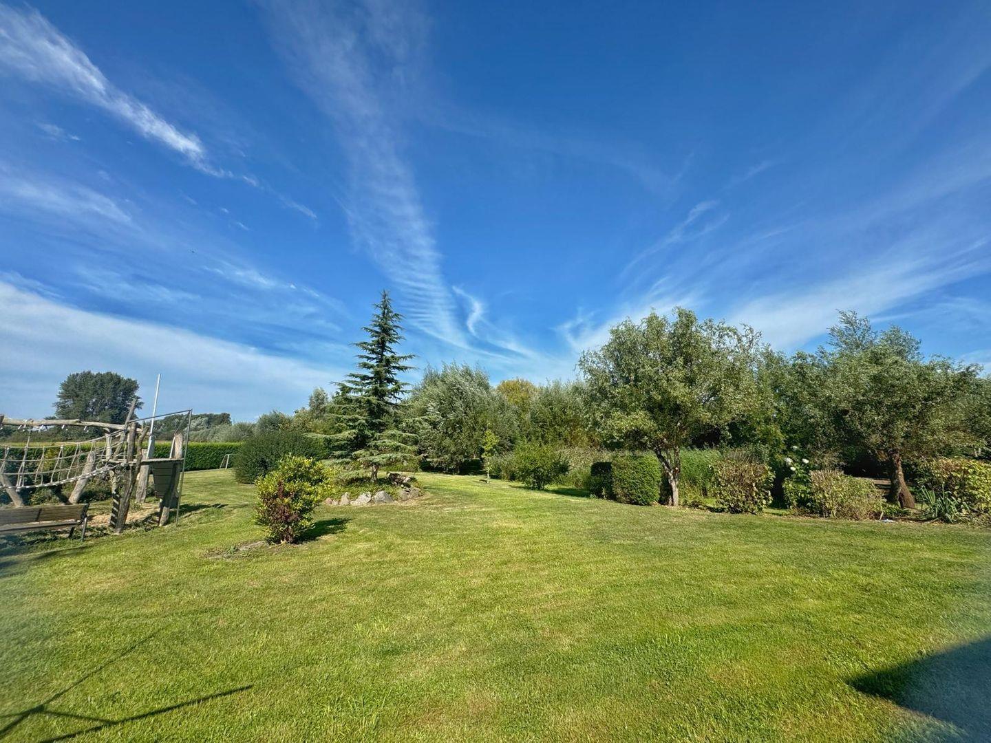 Das Reihenhaus steht auf einem ca. 5.000 qm großen, gepflegten und eingezäunten Grundstück, welches von allen Gästen genutzt werden kann. Für jeden ist etwas dabei: ein großer Spielplatz mit Sandkasten, Schaukeln, Rutsche und Kletterwand; ein separater Sandkasten für die Kleinsten; eine Obstwies; ein großer Teich; viel Rasenfläche zum Erholen und für sportliche Aktivitäten sowie viele Möglichkeiten zum Verweilen.