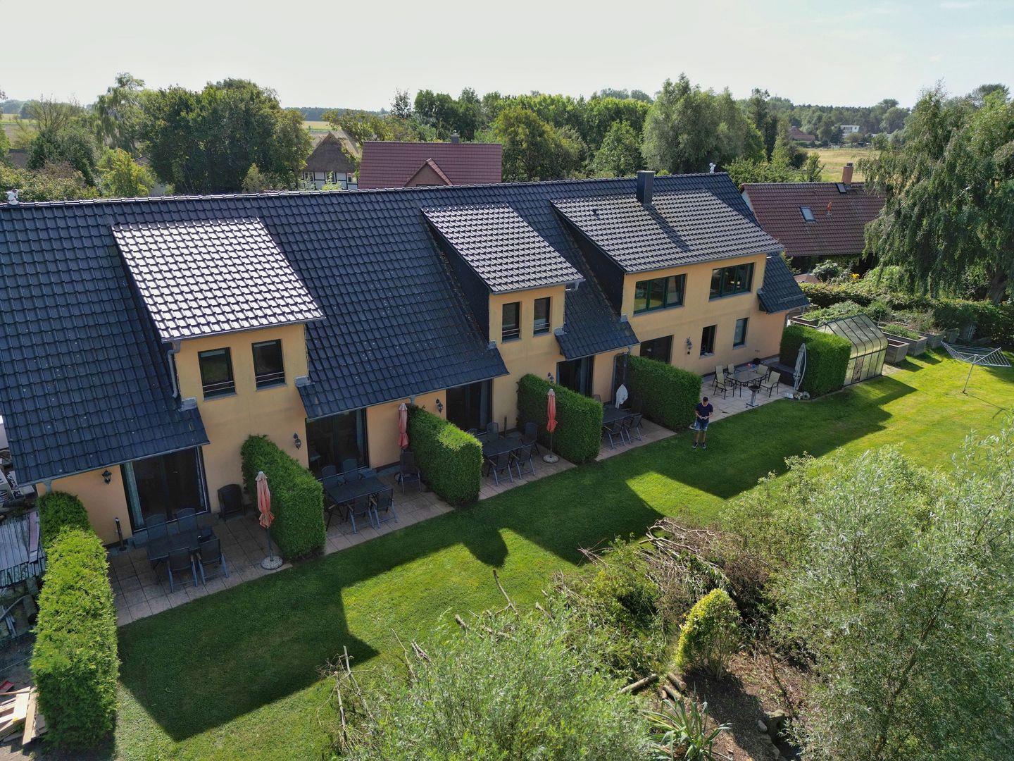 Es gibt insgesamt vier identische Ferienwohnungen bzw. Reihenhäuser (Nr. 2-5) nebeneinander, so dass man auch mit Großfamilie oder mit Freunden gemeinsam buchen und die Ferien verbringen könnte.