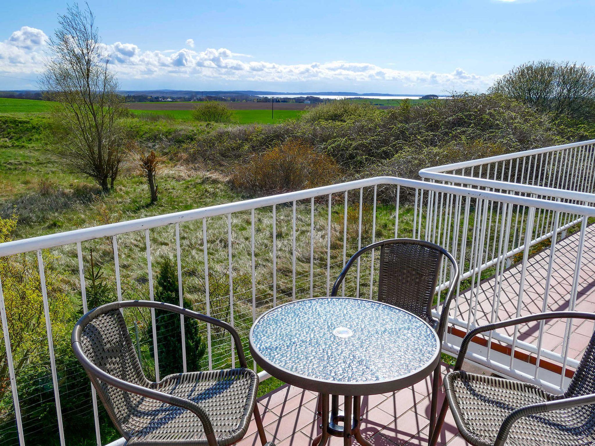 ? Vom Wohnbereich gelangen sie auf den möblierten Balkon.