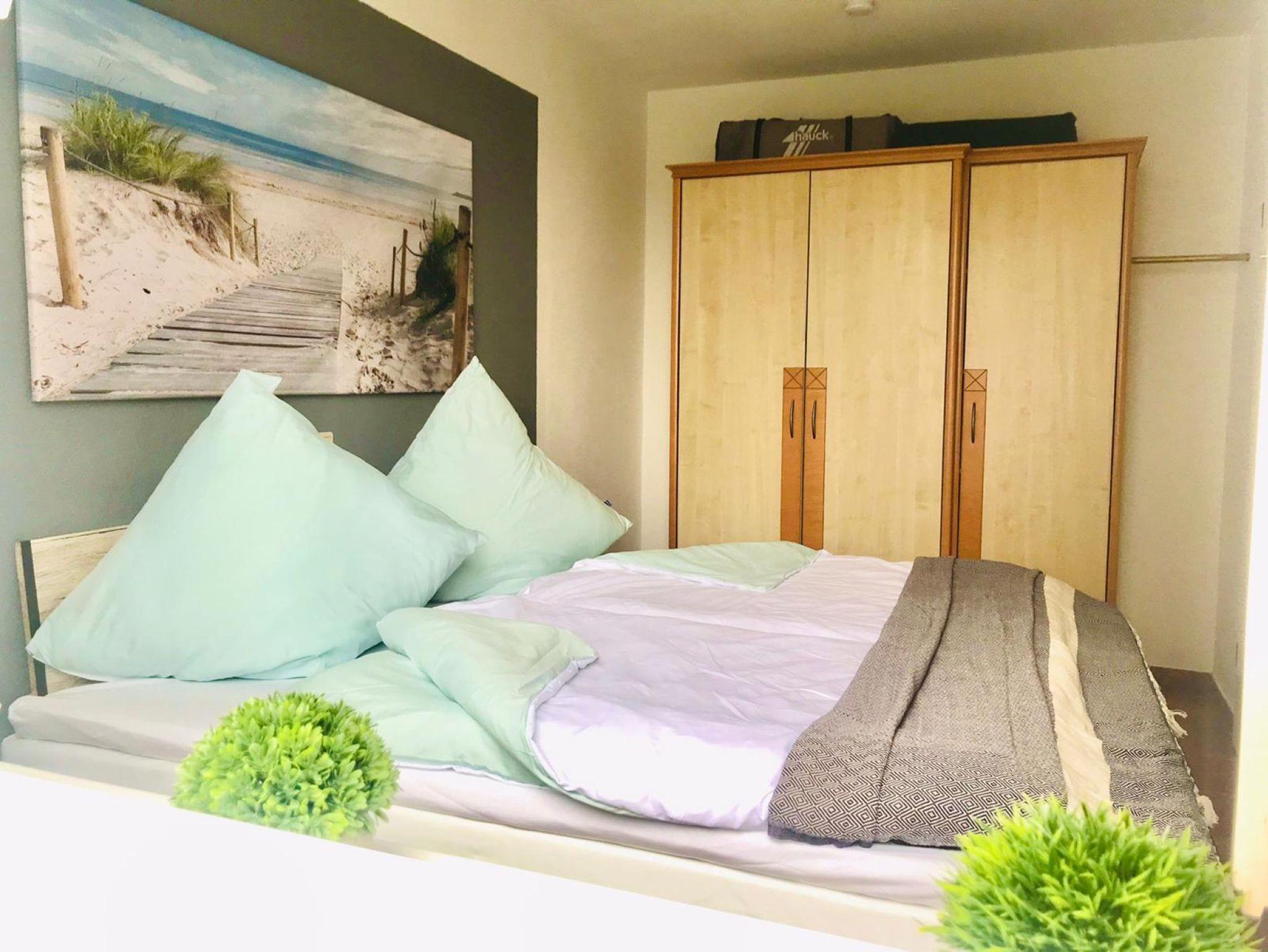 • Die Wohnung verfügt über ein separates Schlafzimmer mit Doppelbett (Flat-TV).