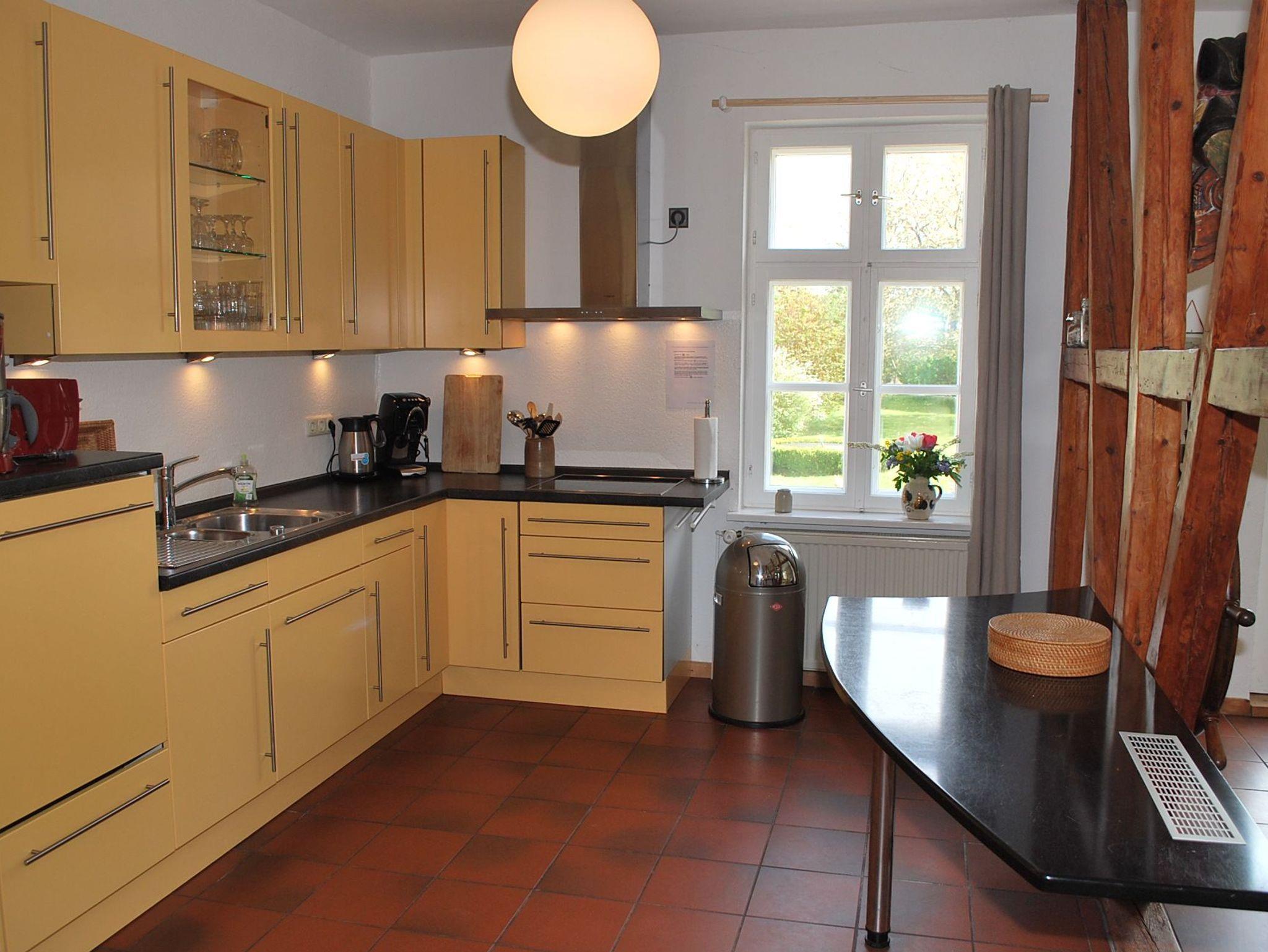 ? 1 Wohnzimmer/Fernseh-Zimmer mit Couchgarnitur sowie große gemütliche Wohnküche mit Esstischgruppe und Einbauküche mit Spülmaschine, Ceranfeld, Backofen, Mikrowelle, Kaffee- und Espressomaschine, Toaster und Wasserkocher