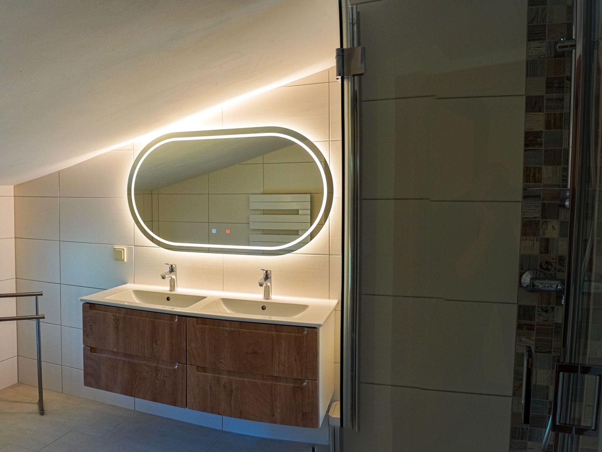 ? 1 Badezimmer/WC mit Dusche und Doppel-Waschbecken und Fön