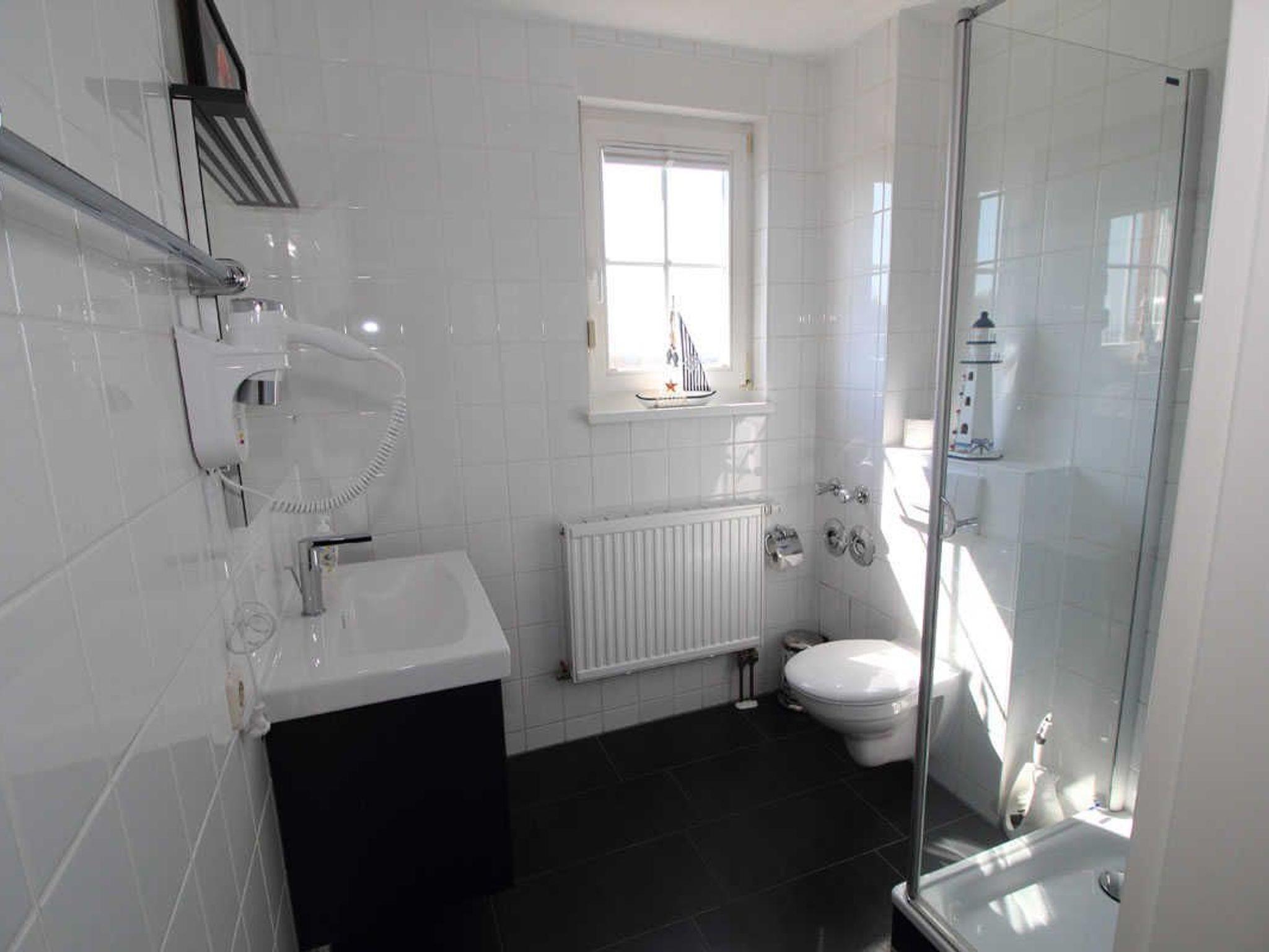 ? Das modernisierte Badezimmer ist mit Dusche, WC, Waschtisch und Fön ausgestattet