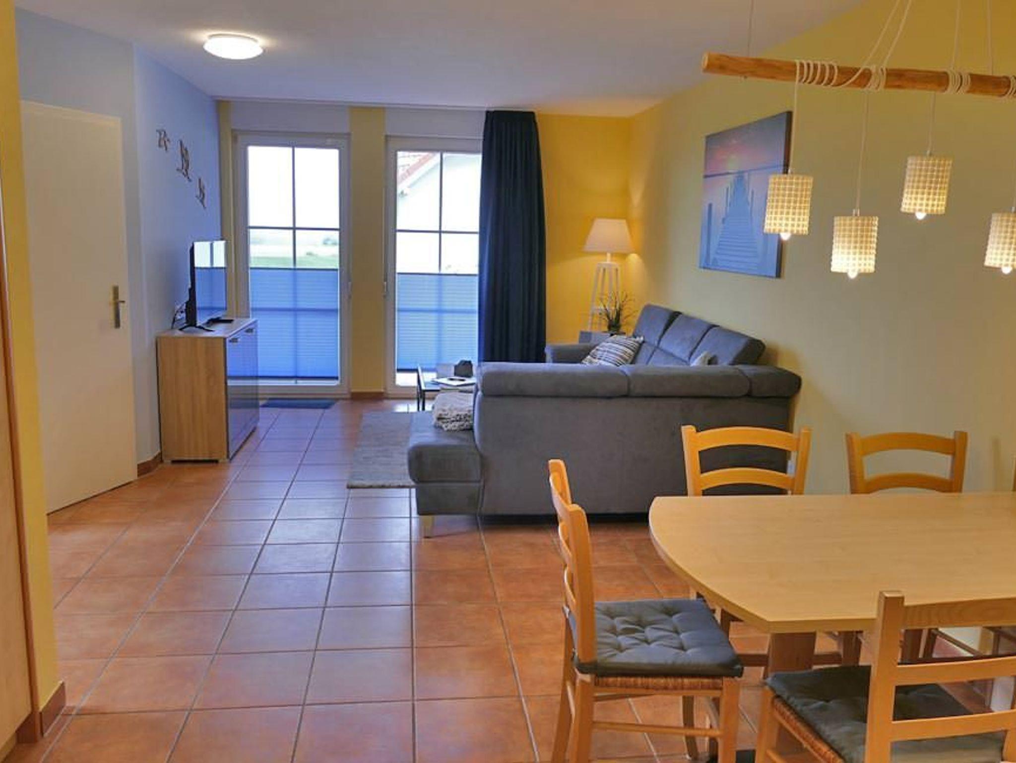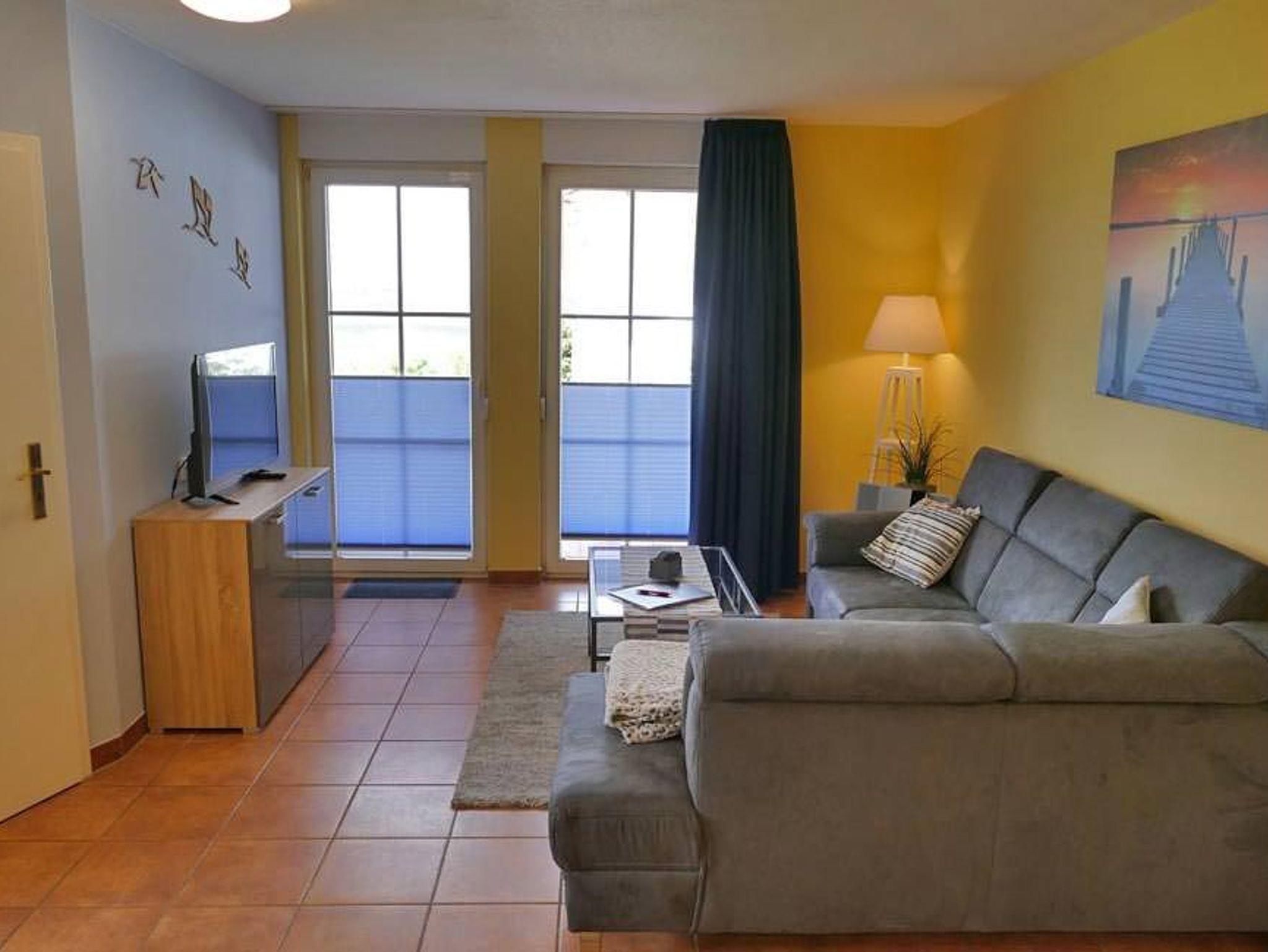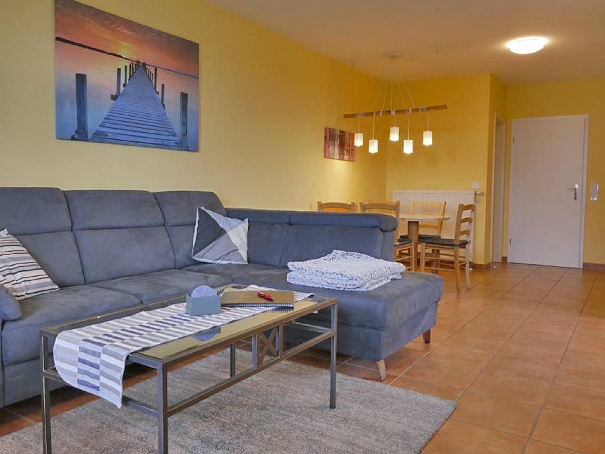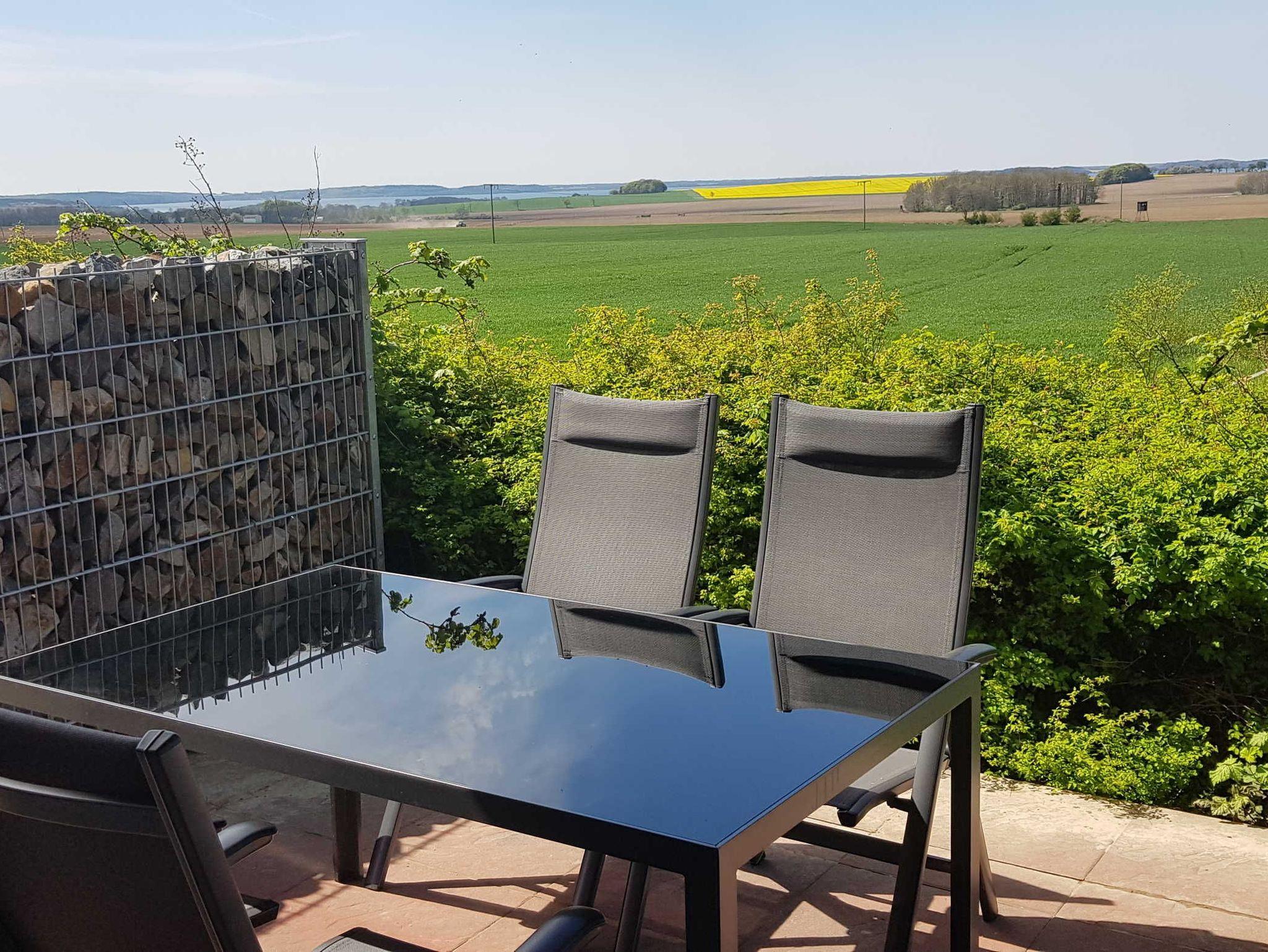 Gemütliche Ferienwohnung Kranichglück in ruhiger Lage mit Terrasse und Zugang zu Hotel-Spa und Sportangeboten.