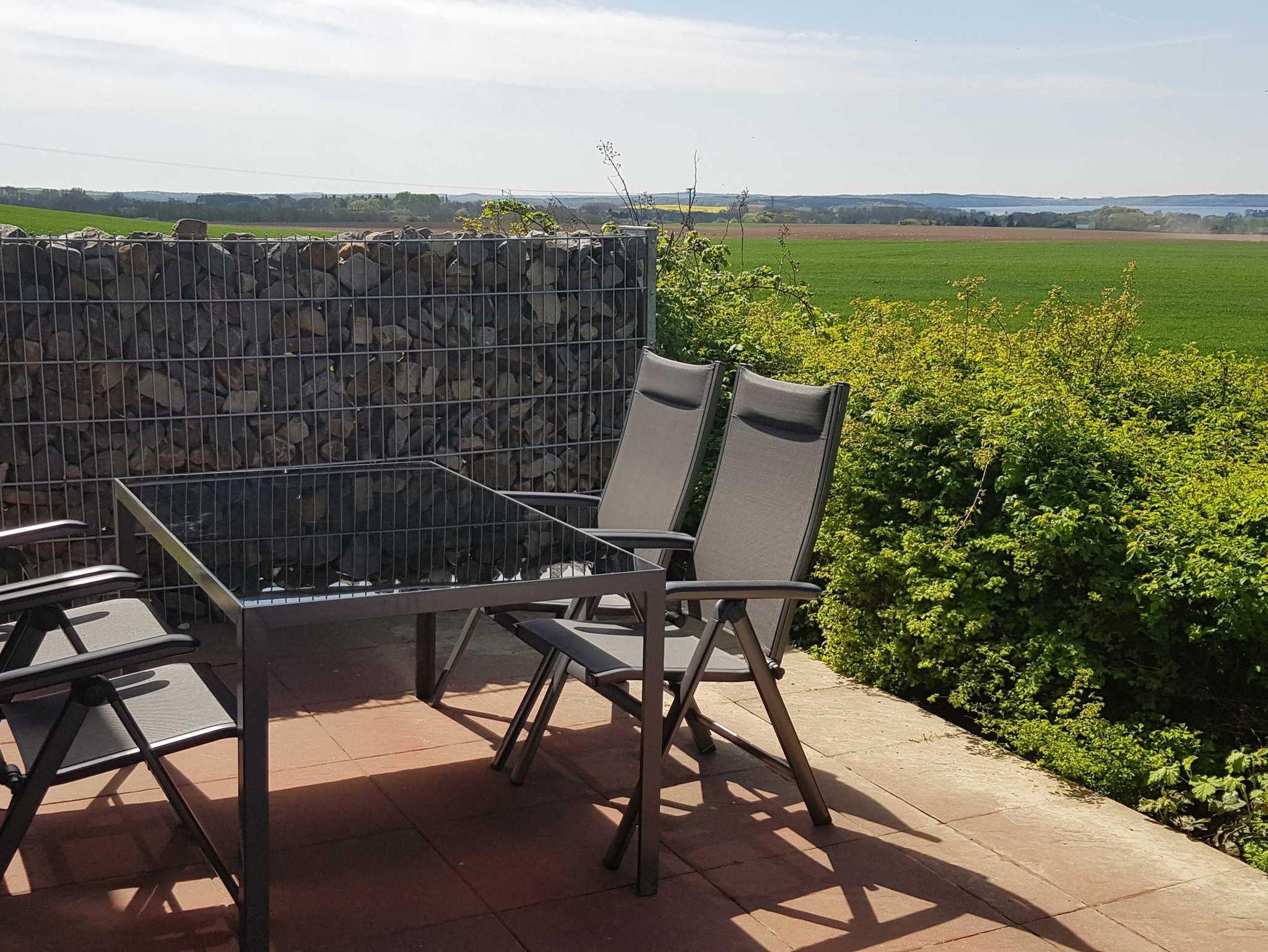 ? Die Terrasse ist mit einem Tisch und 4 Stühlen ausgestattet