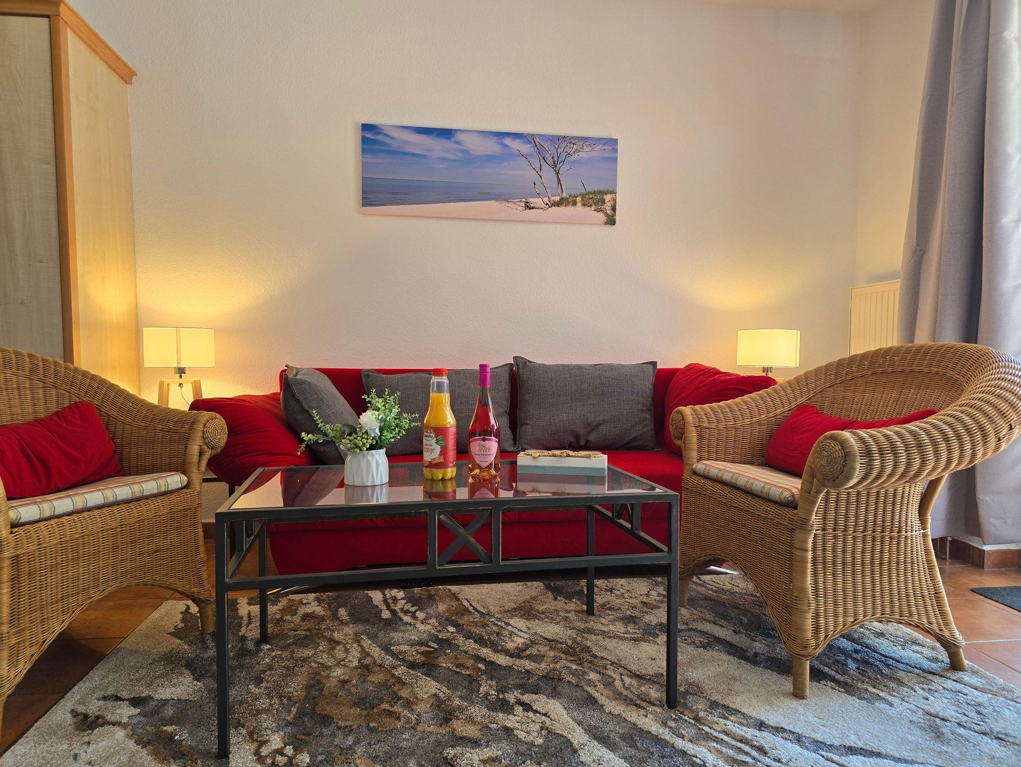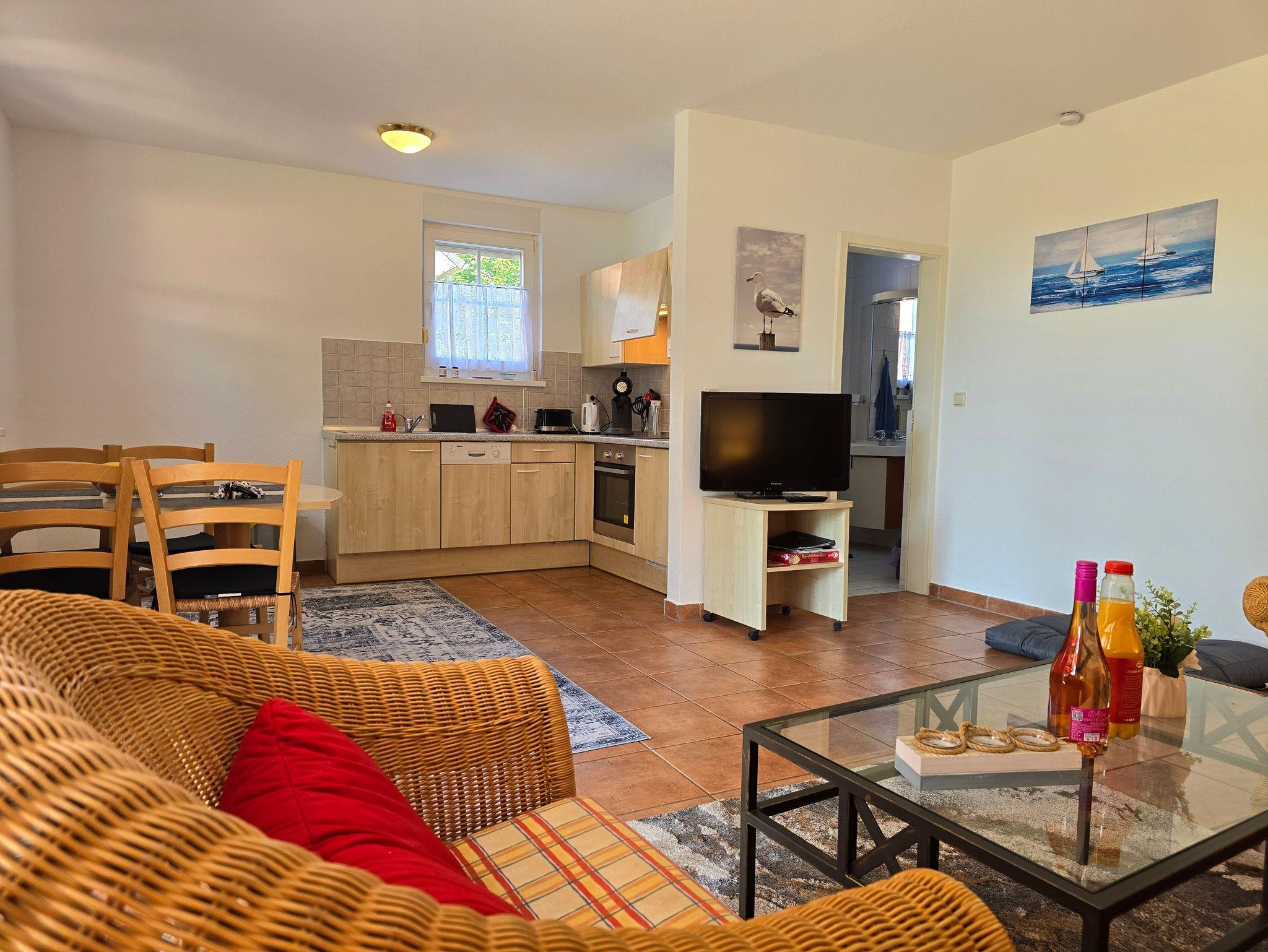Komfortable Ferienwohnung Seehund in ruhiger Lage nahe Glowe, ideal für Familien und Hunde, mit großer Terrasse und vielfältigen Freizeitmöglichkeiten.