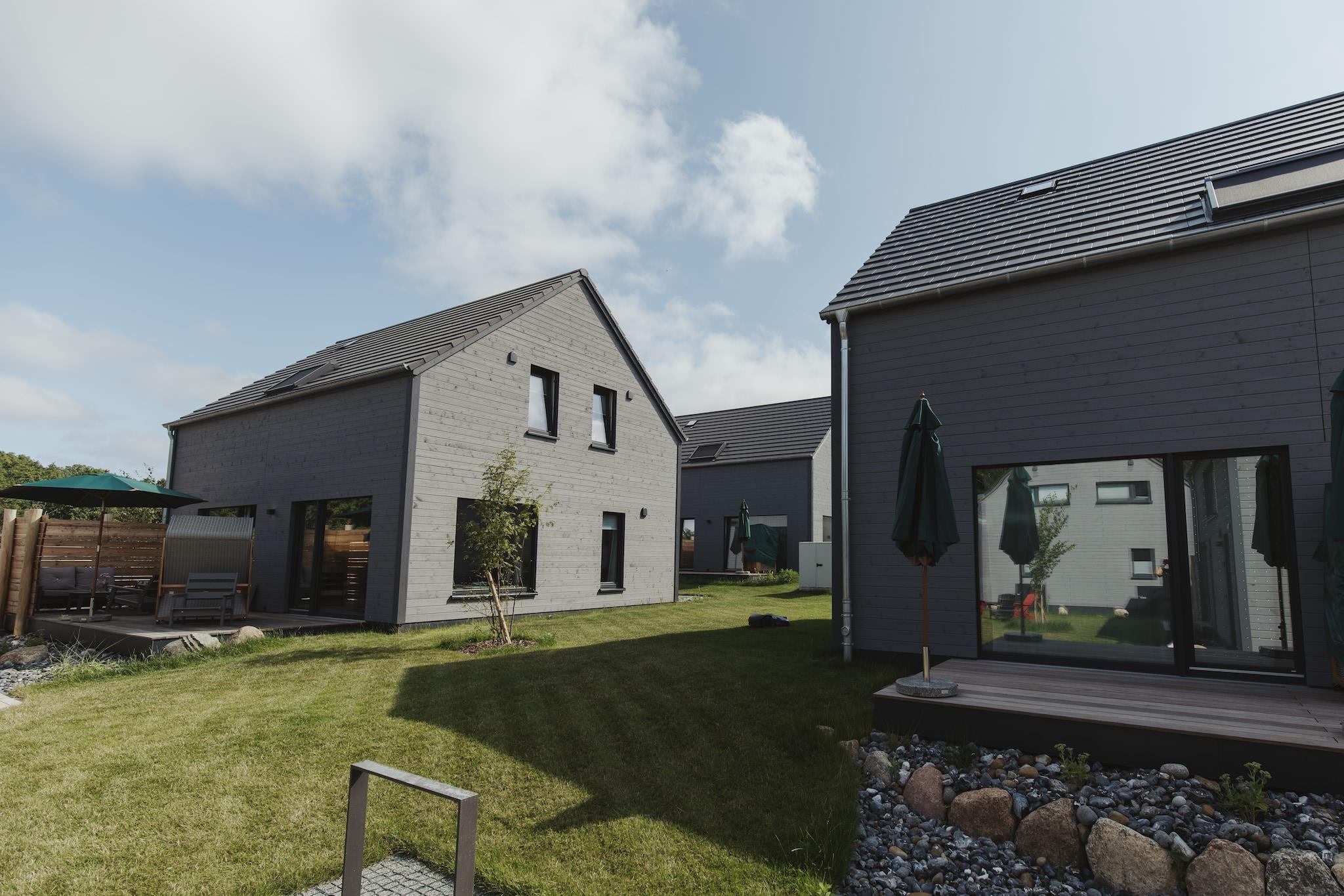 Skandinavisch eingerichtetes Doppelhaus in ruhigem Ferienpark nahe Bodden und Ostsee.