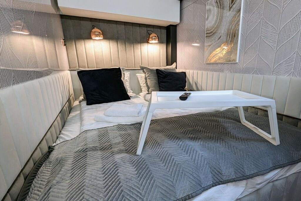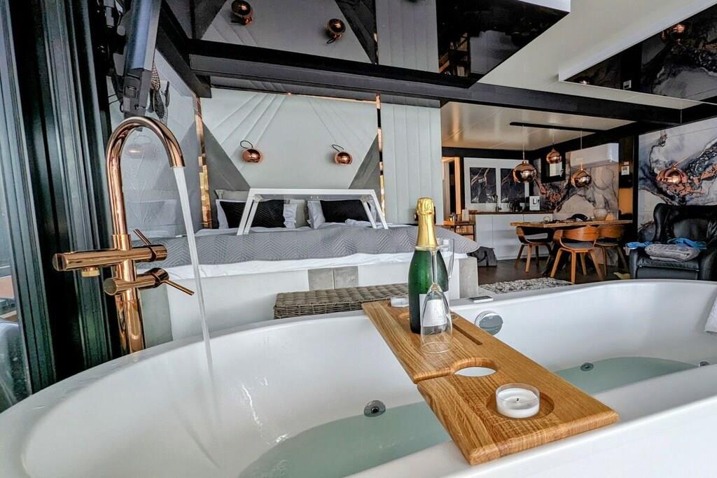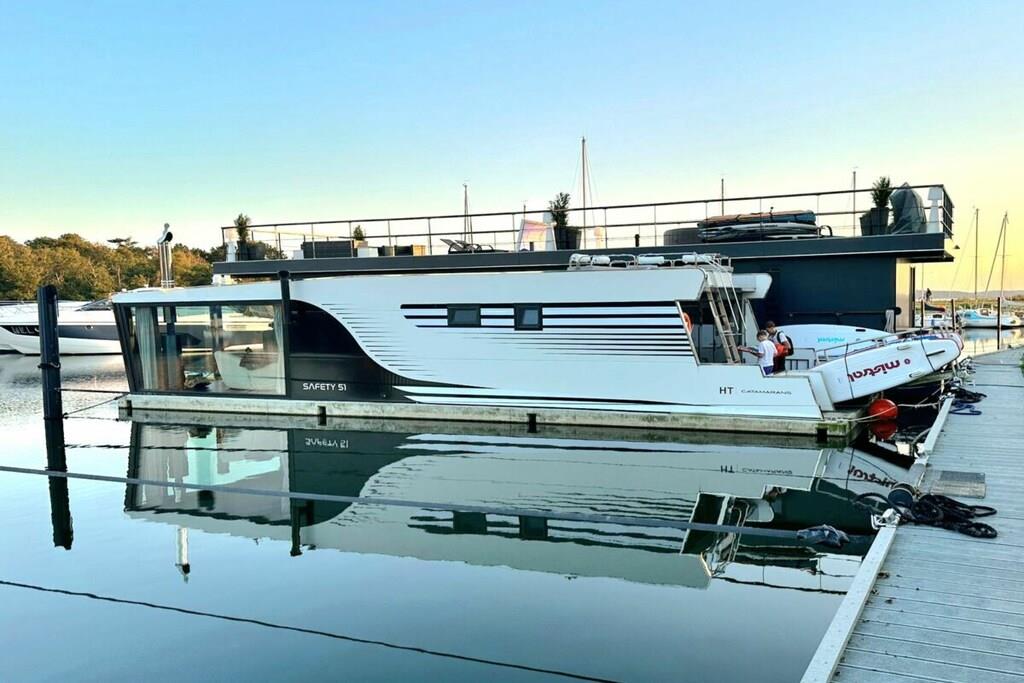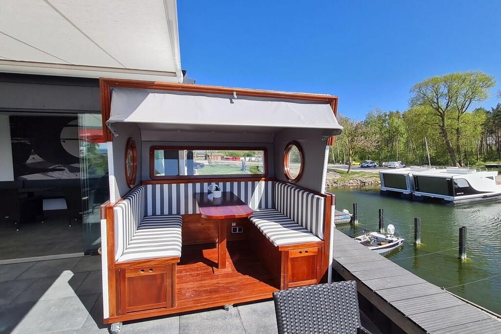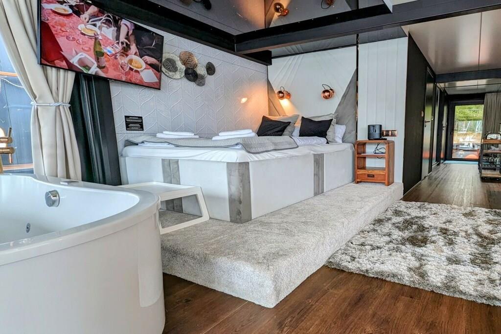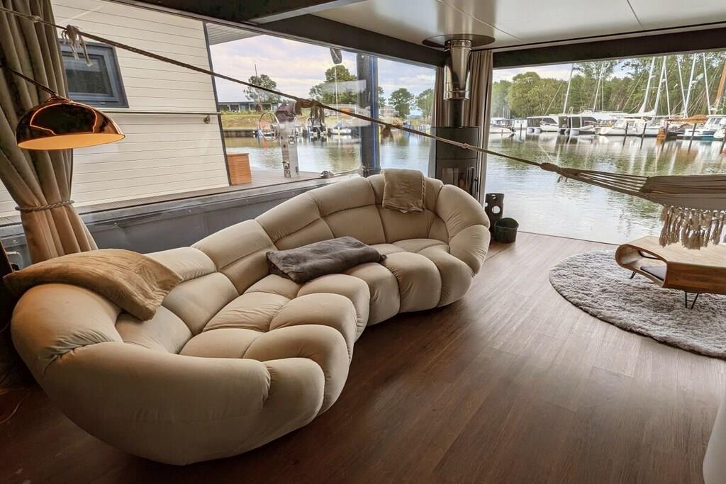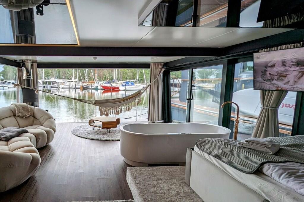 Luxuriöse Hafensuite auf festliegendem Hausboot mit Panoramablick, Sauna und Whirlpool am Jasmunder Bodden.