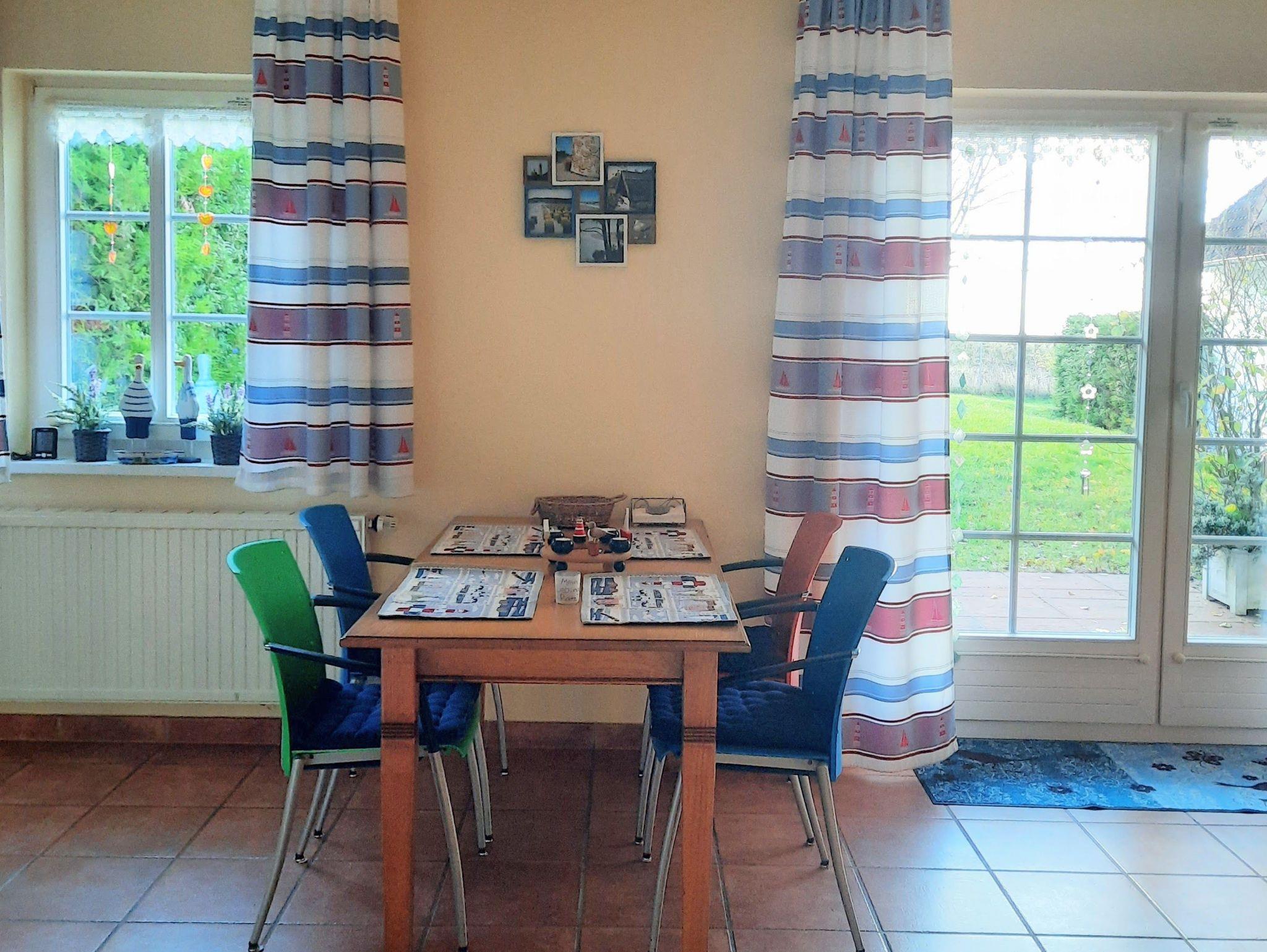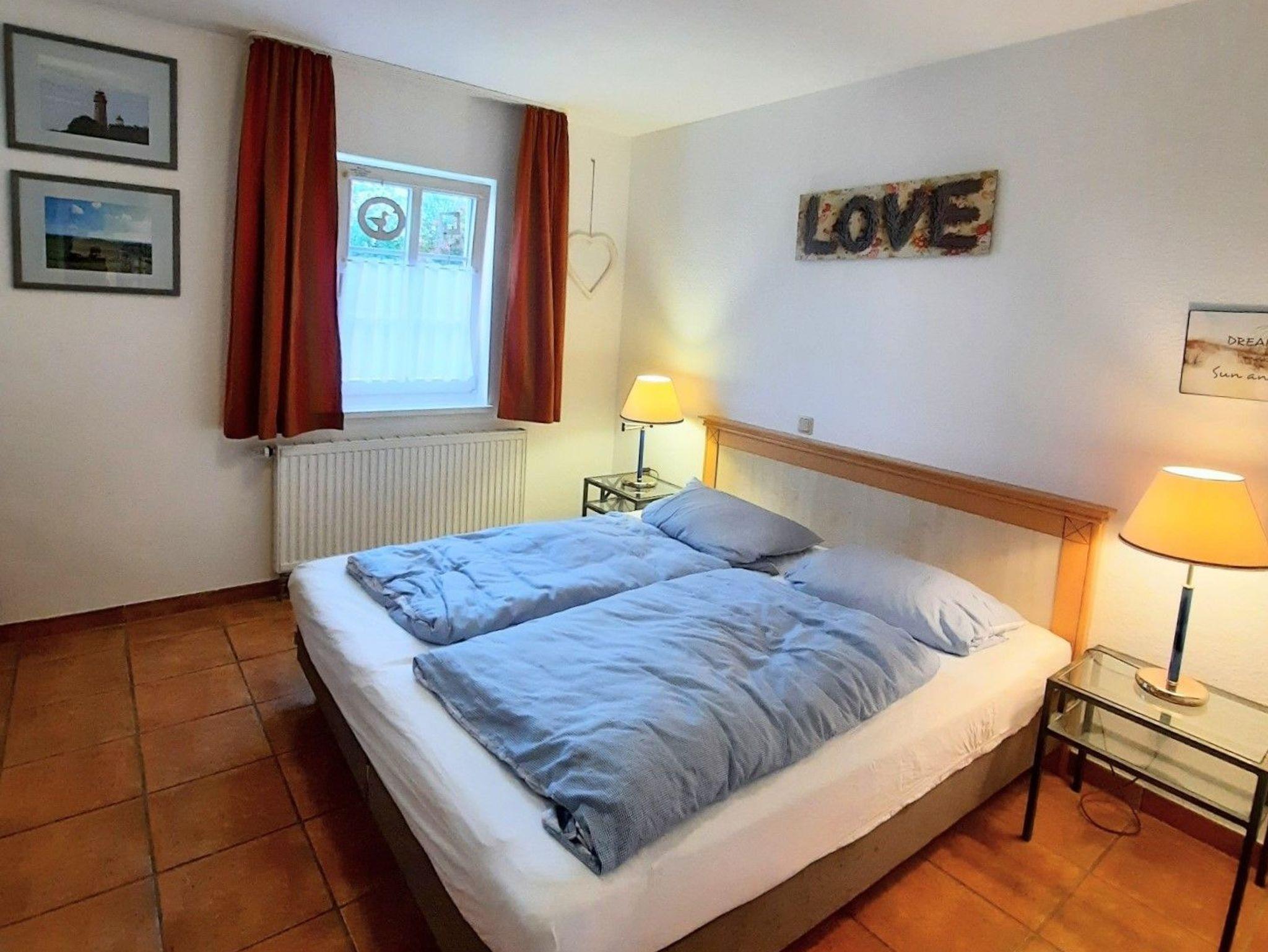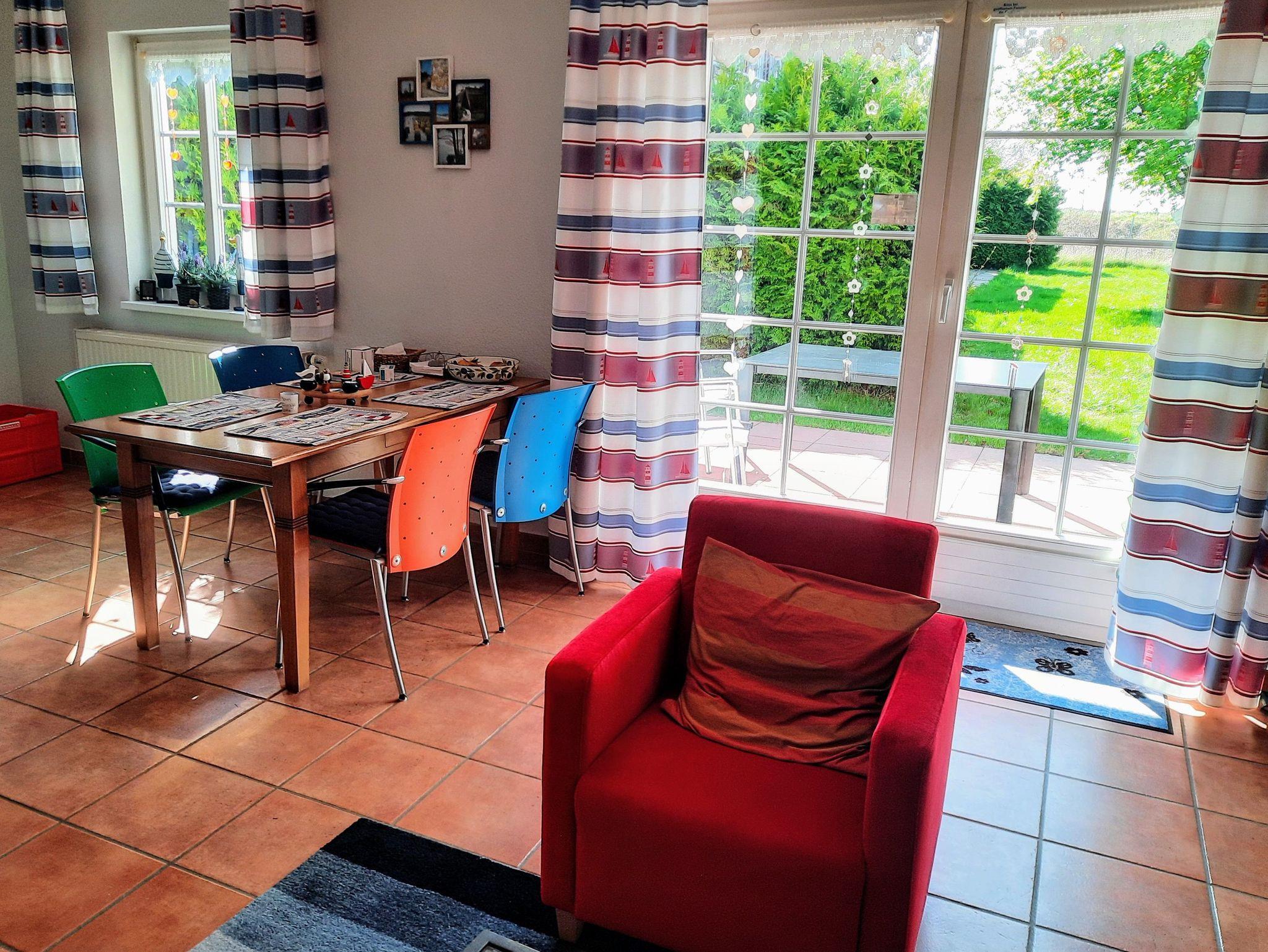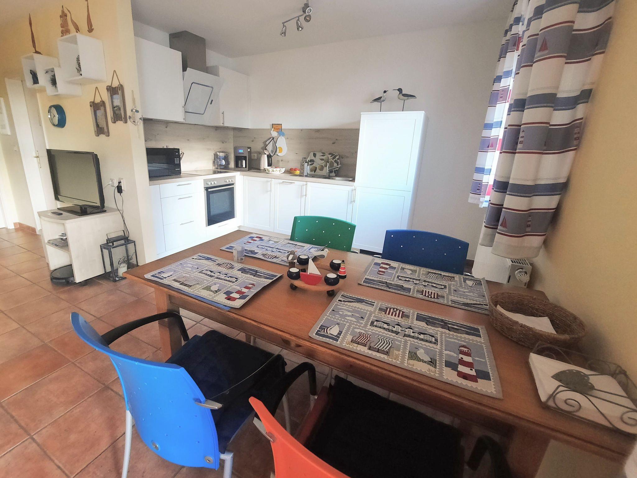 Die gemütliche Ferienwohnung ist ebenerdig und hat eine große möblierte Terrasse. Zur Ferienwohnung gehört ein reservierter Parkplatz. Sie besteht aus einem Wohn-/Essraum mit Schlafcouch (für bis zu zwei Kindern) und einem Elternschlafzimmer sowie einem Tageslichtbad mit Dusche. Alles, was Sie benötigen, finden Sie dort vor. Anfang 2024 wurde in der Ferienwohnung eine neue Küche eingebaut.