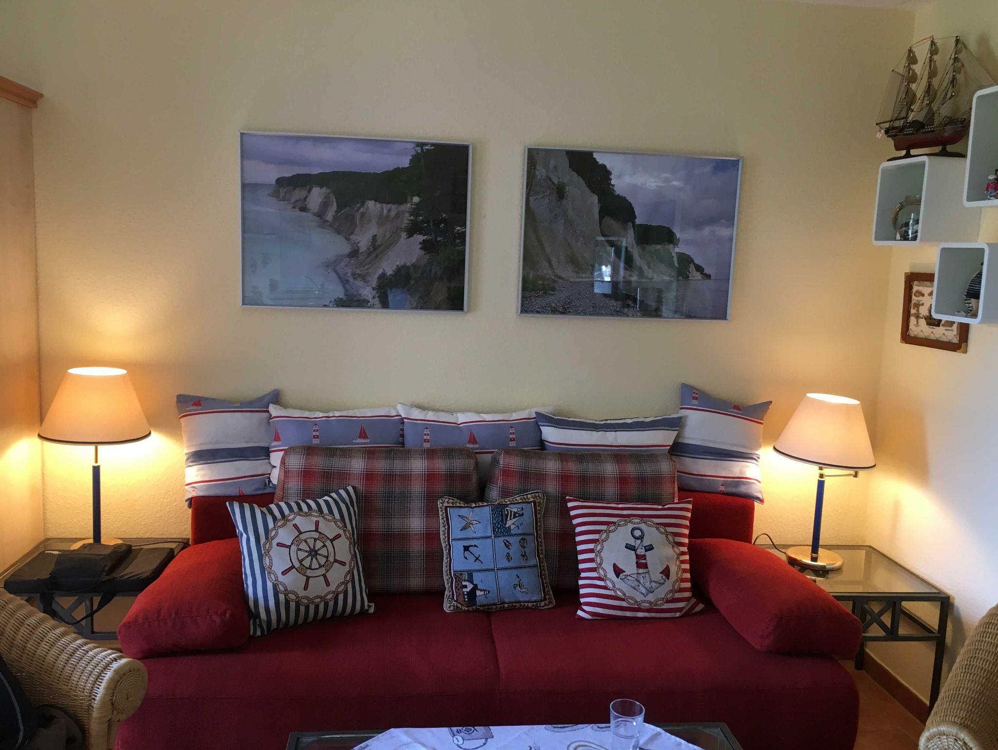 Unsere gemütliche Wohnung liegt ruhig und dennoch sehr zentral auf der wunderschönen Halbinsel Jasmund im Nordosten der Sonneninsel RÜGEN direkt am gleichnamigen Nationalpark. Von hier aus erreichen Sie in nur wenigen Autominuten bspw. den größten feinsandigen Strand der Insel – die Schaabe - oder den Nationalpark JASMUND mit der Stubbenkammer und dem Wahrzeichen der Insel, dem Königsstuhl mit dem neuen Königsweg. Die Wohnung (vier-Sterne-Niveau) ist komplett ausgestattet und verfügt über eine Terrasse und einen Parkplatz direkt vor der Haustür. Sie ist rd. 60 qm groß und besteht aus einem Wohnraum mit Schlafsofa (Fernseher), einer 2024 installierten Einbauküche (Herd mit Backofen, großem Kühlschrank, Mikrowelle, kleiner Spülmaschine, ausreichend Geschirr, Töpfe, Besteck) und Essecke, einem Schlafzimmer mit Doppelbett, einem Tageslicht-Bad mit Dusche sowie einer sep. Abstellfläche. Haustiere sind nicht erlaubt und Rauchen ist in der FEWO ebenso verboten.