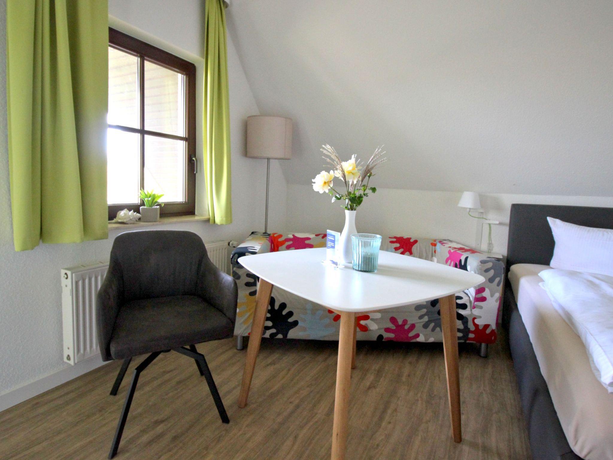 Das 2-Raum Appartement ist komfortabel ausgestattet mit 1 Wohnraum mit Sitzecke (ausziehbare Couch für eine Pers.), Sat.-TV und Telefon, 1 Schlafraum mit Doppelbett, Küchenzeile, Dusche/WC. Lage: Erdgeschoss / Obergeschoss mit Terrasse bzw. Balkon. Darüber hinaus gehört zu jeder Wohnung ein Pkw-Stellplatz. Alle Appartements inklusive Energiekosten, Wasser, Bettwäsche / Handtücher und Endreinigung Babybett und Hochstuhl kostenlos.