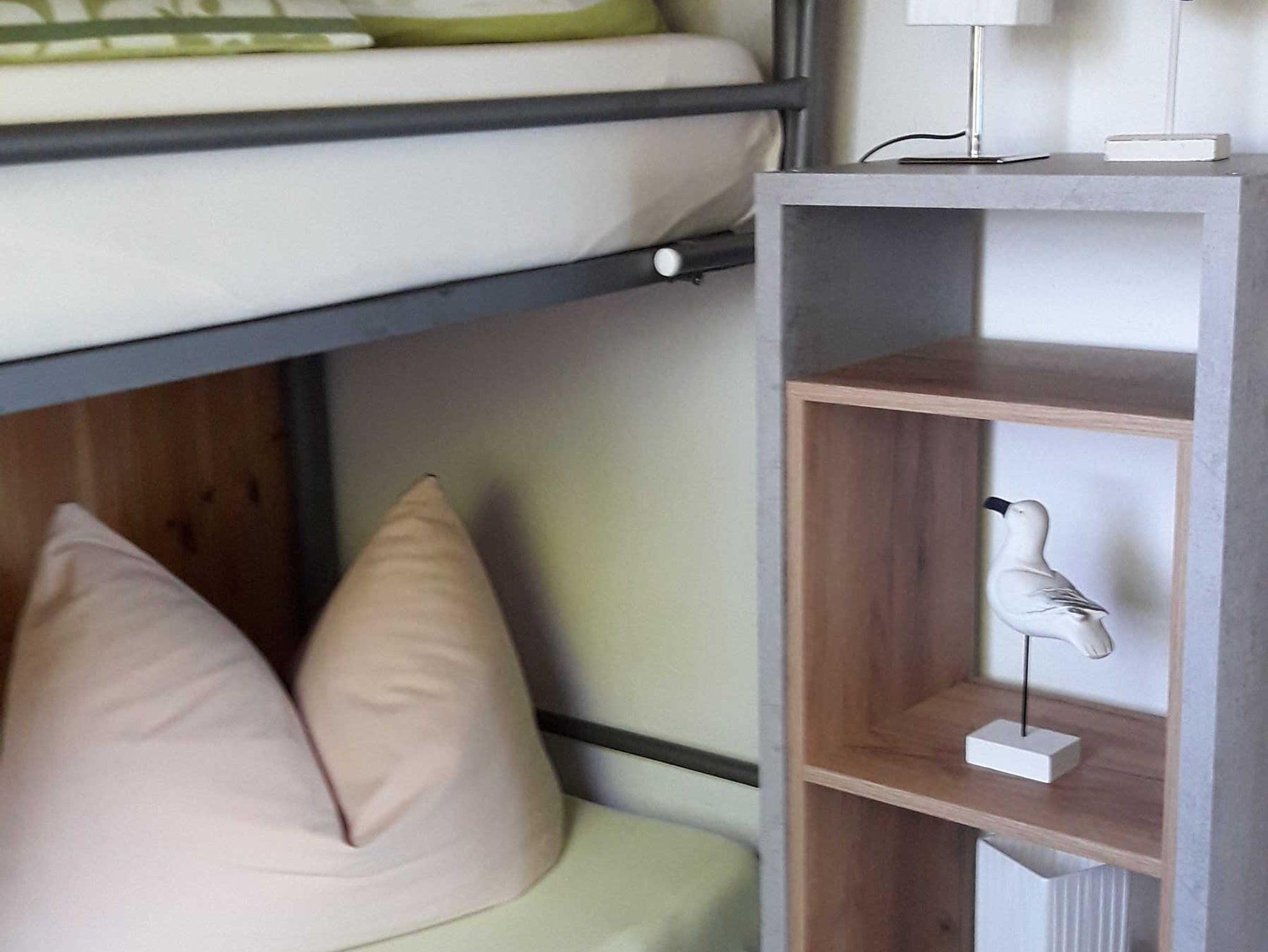 Das Ferienhaus ist ausgestattet mit einem Wohnraum (Schlafcouch, SAT-TV, Radio), einem Schlafraum mit Doppelbett, einem Kinderschlafraum mit Etagenbett, Küche und DU/WC, Zentralheizung. PKW-Stellplatz.Zur Verfügung stehen Terrasse, Grill. Im Mietpreis inkl.: Bettwäsche, Wasser, Energie und Endreinigung. Bei Buchung mit Haustier bitte zustätzlich die Haustierendreinigung anklicken.