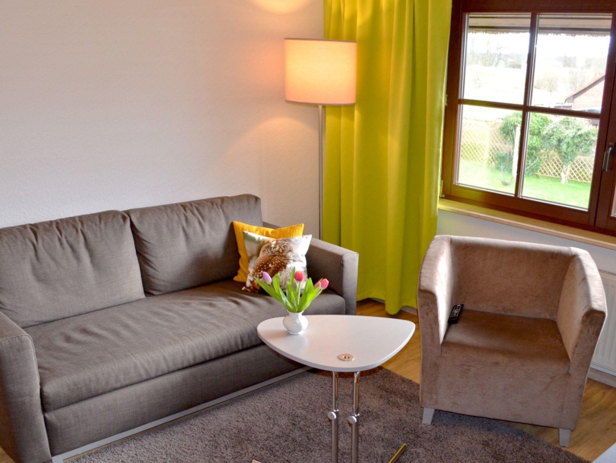 Das 2-Raum Appartement ist komfortabel ausgestattet mit 1 Wohnraum mit Sitzecke (ausziehbare Couch für eine Pers.), Sat.-TV und Telefon, 1 Schlafraum mit Doppelbett, Küchenzeile, Dusche/WC. Darüber hinaus gehört zu jeder Wohnung ein Pkw-Stellplatz. Alle Appartements inklusive Energiekosten, Wasser, Bettwäsche / Handtücher und Endreinigung. Babybett und Hochstuhl kostenlos.