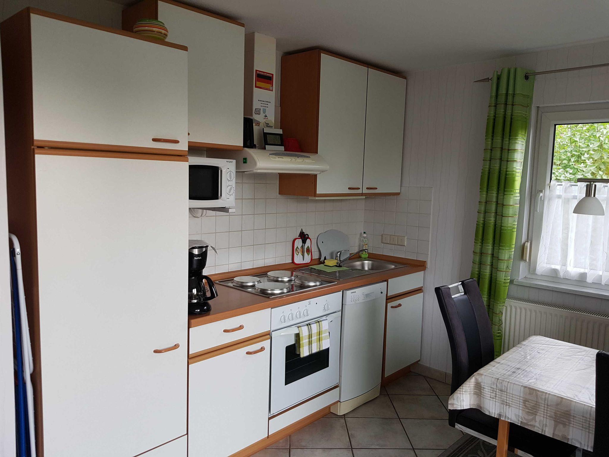 Ruhige Ferienwohnung auf großem Grundstück. Komfortabel ausgestattet: Wohnraum mit offener Küche - Küchenzeile mit Spülmaschine, Backofen, Mikrowelle, Kühlschrank mit Gefriermöglichkeit; TV-Flachbildschirm( Sat), Radio. Schlafzimmer mit Doppelbett (160 x 200) und TV-Flachbild. Badezimmer mit Dusche; Haartrockner vorhanden. Terrasse und Liegewiese mit Gartenmöbeln. Grillplatz mit Grill.