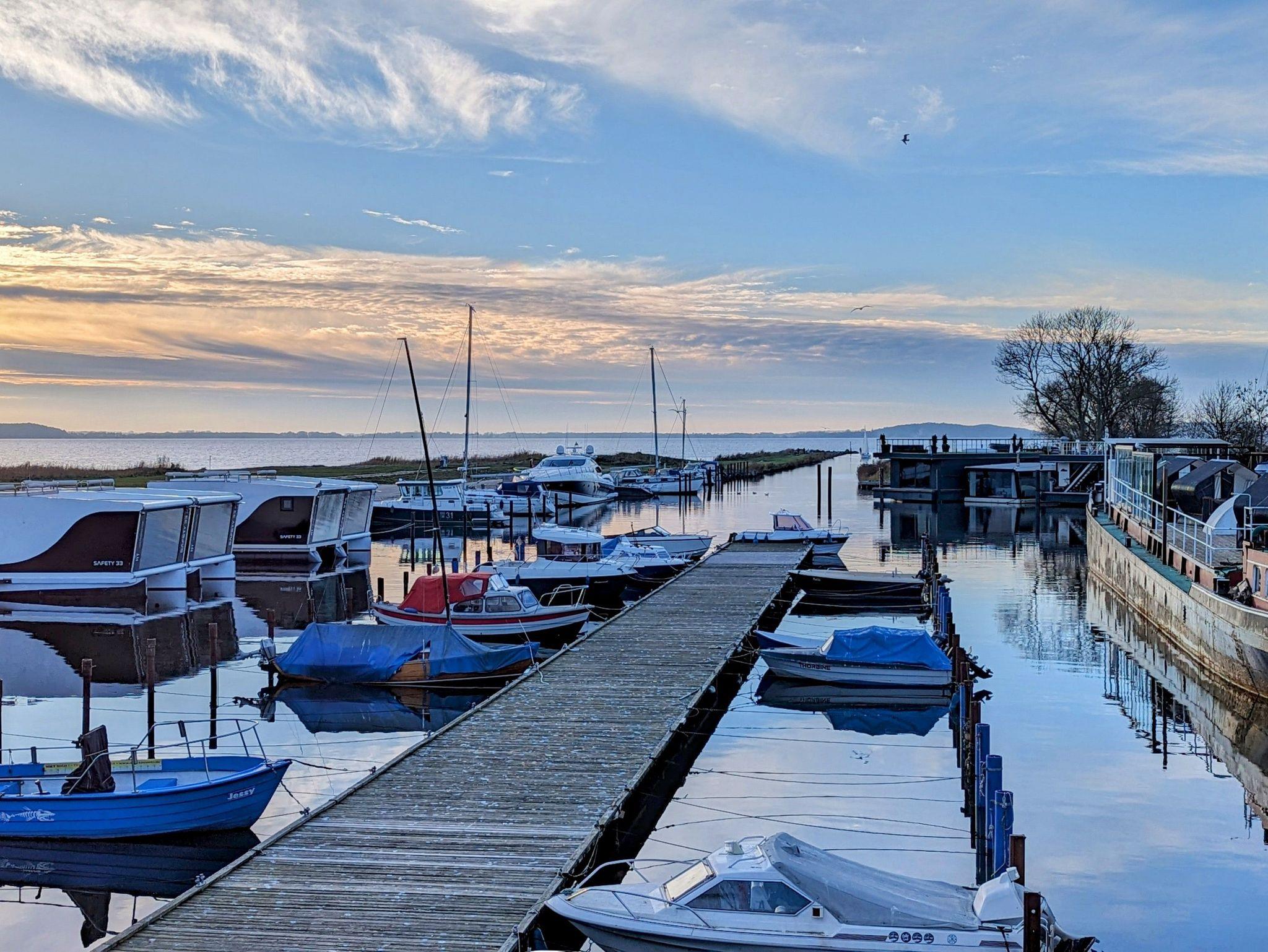 Unser Hausboot, die schwimmende Hafensuite DeLuxe, im Hafenbecken der kleinen Marina Martinshafen gelegen, bietet Luxus pur auf ca. 60 m² Relaxwohnfläche und 2 Außenterrassen auf 2 Etagen. Ein großes Panoramafenster verstärkt den weitläufigen Raumeindruck und eröffnet tolle Blicke auf das Hafengeschehen. Eine kleine Trockensauna, eine Whirlwanne direkt vor dem Doppelbett (140 x 200 cm), ein elektrischer Massagesessel und ein klassischer Kamin sorgen für besondere und persönliche Wellnessmomente an Bord. Eine Essecke mit einer kleinen Küchenzeile bietet Möglichkeiten für eine einfache Selbstversorgung. Hier stehen ein Kühlschrank, eine BEKO-Kaffeemaschine, ein Toaster, ein Wasserkocher und ein Eiswürfelmaker zur Verfügung. Entertainmentinfrastruktur ist mit W-LAN, 2 Smart-TV`s und einer Bose-Homesound-500-Anlager vorhanden. 2 Bäder mit großen bodentiefen Duschen, Waschbecken und WC sowie eine zusätzliche kleine Kajüte mit einer Doppelkoje (140 x 200 cm) runden das Luxusangebot der schwimmenden Hafensuite ab. Eingebettet in das Naturschutzgebiet rund um den Großen Jasmunder Bodden und ideal zentral gelegen im nördlichen Teil der Insel Rügen liegt die Hafenlady in geschützter Lage in der Marina Martinshafen. Lassen Sie den Blick schweifen über die den gesamten Tag glitzernde Wasseroberfläche oder genießen Sie eine Flasche Wein mit Blick auf den Sonnenuntergang am Ende eines ereignisreichen Urlaubstages. Unsere einmalige Urlaubs-Location für Sie liegt fest im Hafen vertaut - bereit für entspannte Stunden und einmalige Urlaubs-Momente. Mehr Urlaub mit und auf dem Wasser geht nicht. Mit viel unberührter Natur, direkt auf dem Wasser und einem kleinen Strandabschnitt direkt am Hafen. Genießen Sie bei uns ganz entspannte Stunden. Oder bei entsprechendem Wetter die sehr guten Voraussetzungen für Kite- oder Wind-Surfen. 2 SuP`s gehören zur Bordausstattung für einen Wasserausflug auf dem Bodden dazu. Auf jeden Fall werden Sie nach unvergesslichen Momenten bei einem Glas Wein mit Blick auf den Sonnenuntergang über dem großen Jasmunder Bodden immer wieder zurückkommen wollen – in die schwimmende Hafensuite De Luxe in der Marina Martinshafen.