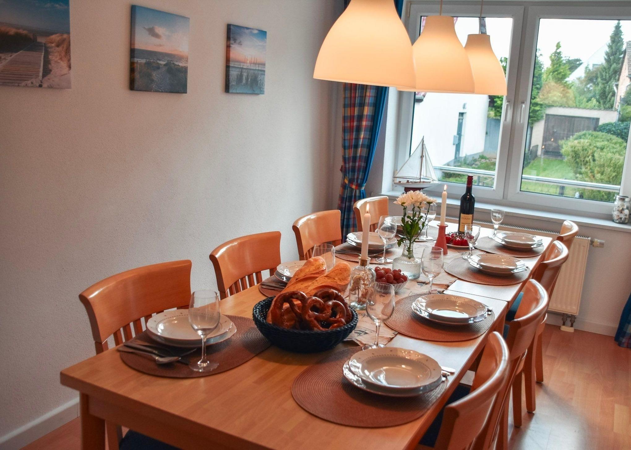 Das Haus ist mit seinen 120 qm Wohnfläche geräumig für bis zu 8 Gäste geeignet und gut ausgestattet: 3 separate Schlafzimmer, großer Wohnbereich mit angrenzendem separatem Esszimmer, WLAN , Garten mit Kinderspielplatz, Garage für Fahrräder, 2 Autostellplätze vor dem Haus....