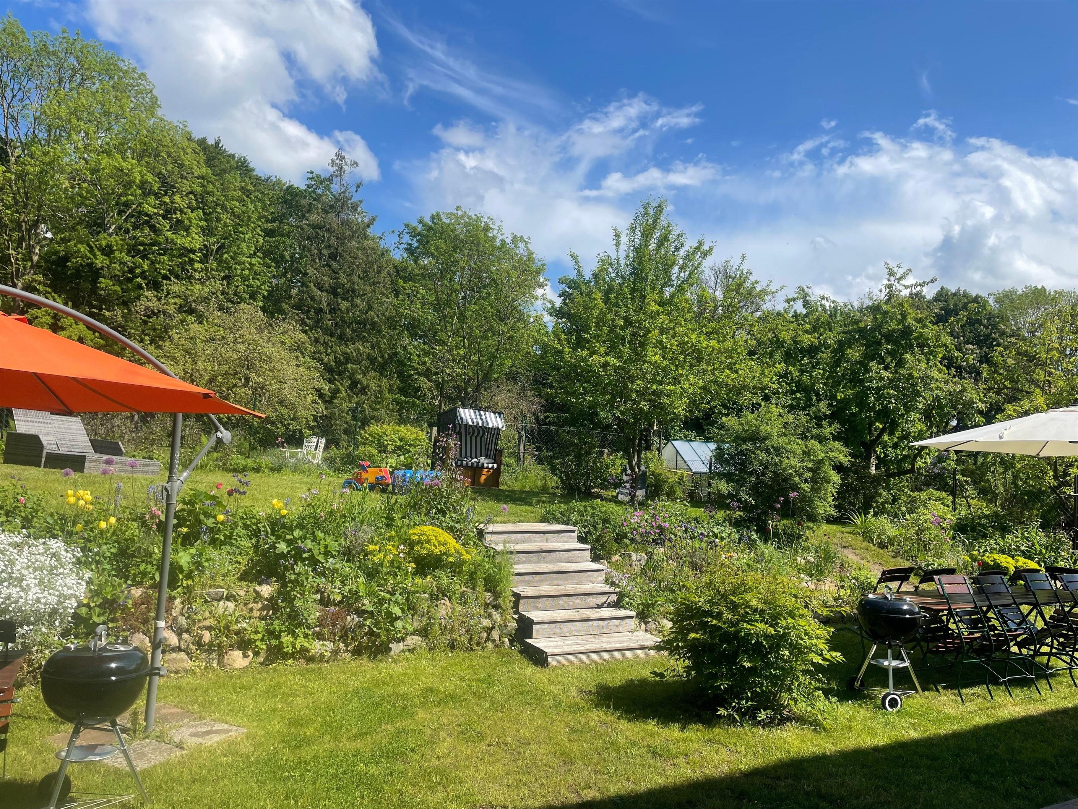 Ihre Ferienunterkunft erstreckt sich über 2 Etagen mit freiem Blick in die Parkanlage der Brunnenaue. Der ruhige Garten mit sonniger, windgeschützter Sitzecke lädt Sie zum Entspannen ein.