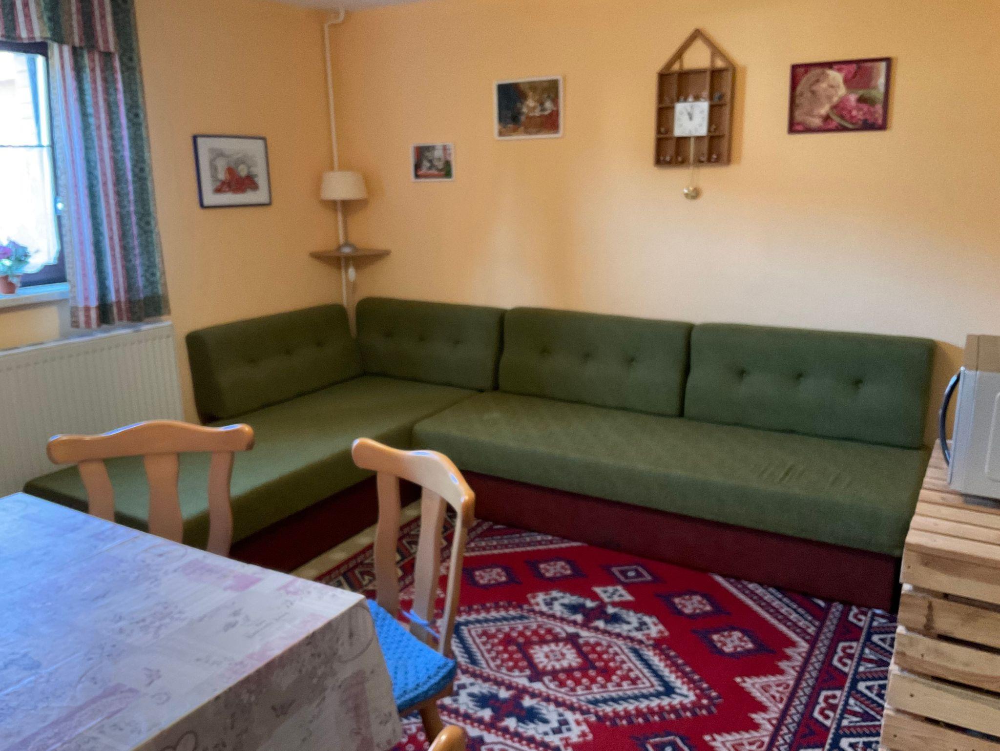 Die Ferienwohnung ist sehr einfach ausgestattet und besteht aus einem Wohn-Schlafraum, durch einen Raumteiler getrennt mit Radio und TV und einer Sitzecke. und einem weiteren Zimmer mit zwei Aufbettungsmöglichkeiten auf Bettliegen. Sie hat eine kleine Pantry-Küche und ein Bad mit Dusche und WC.