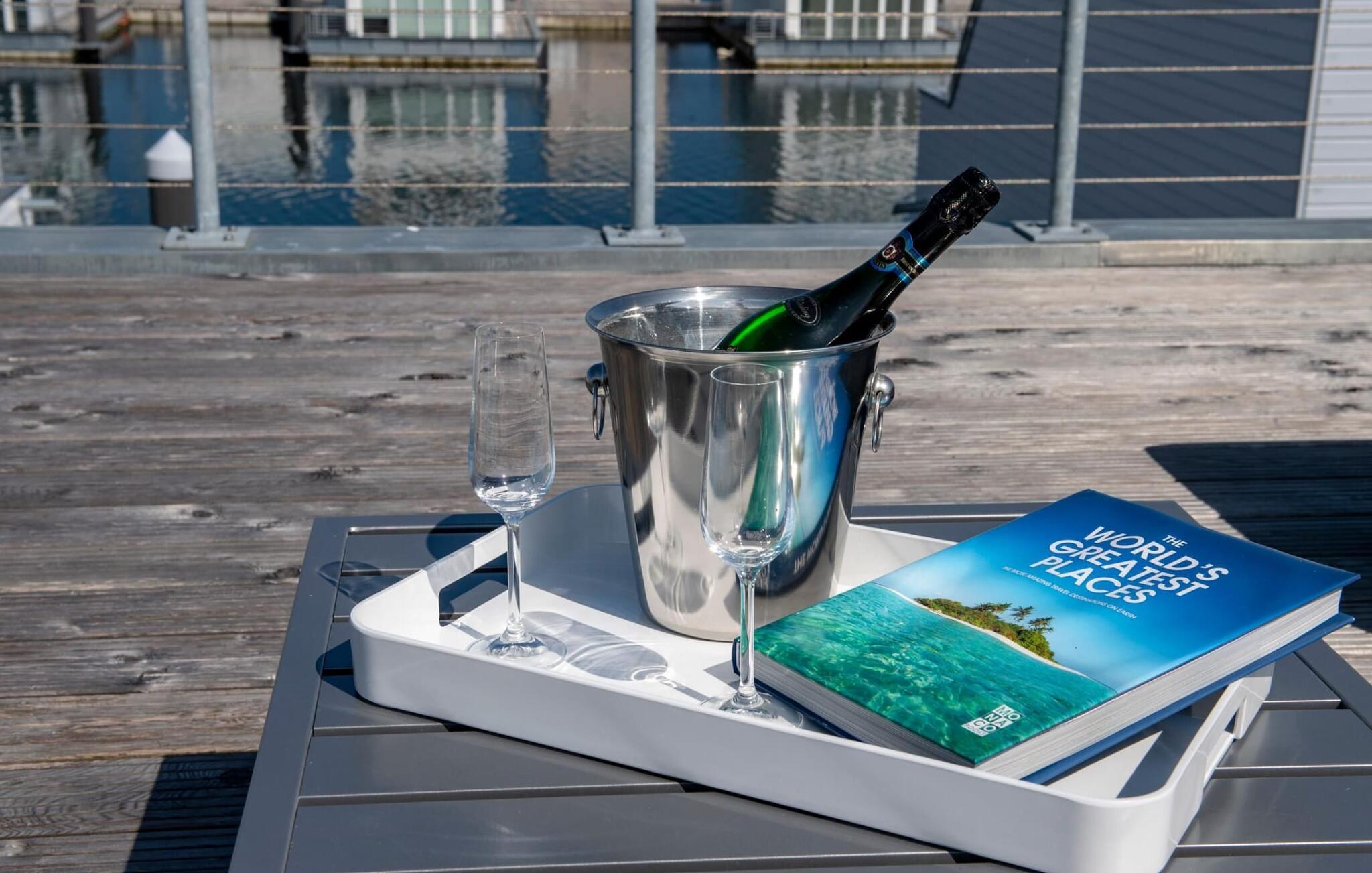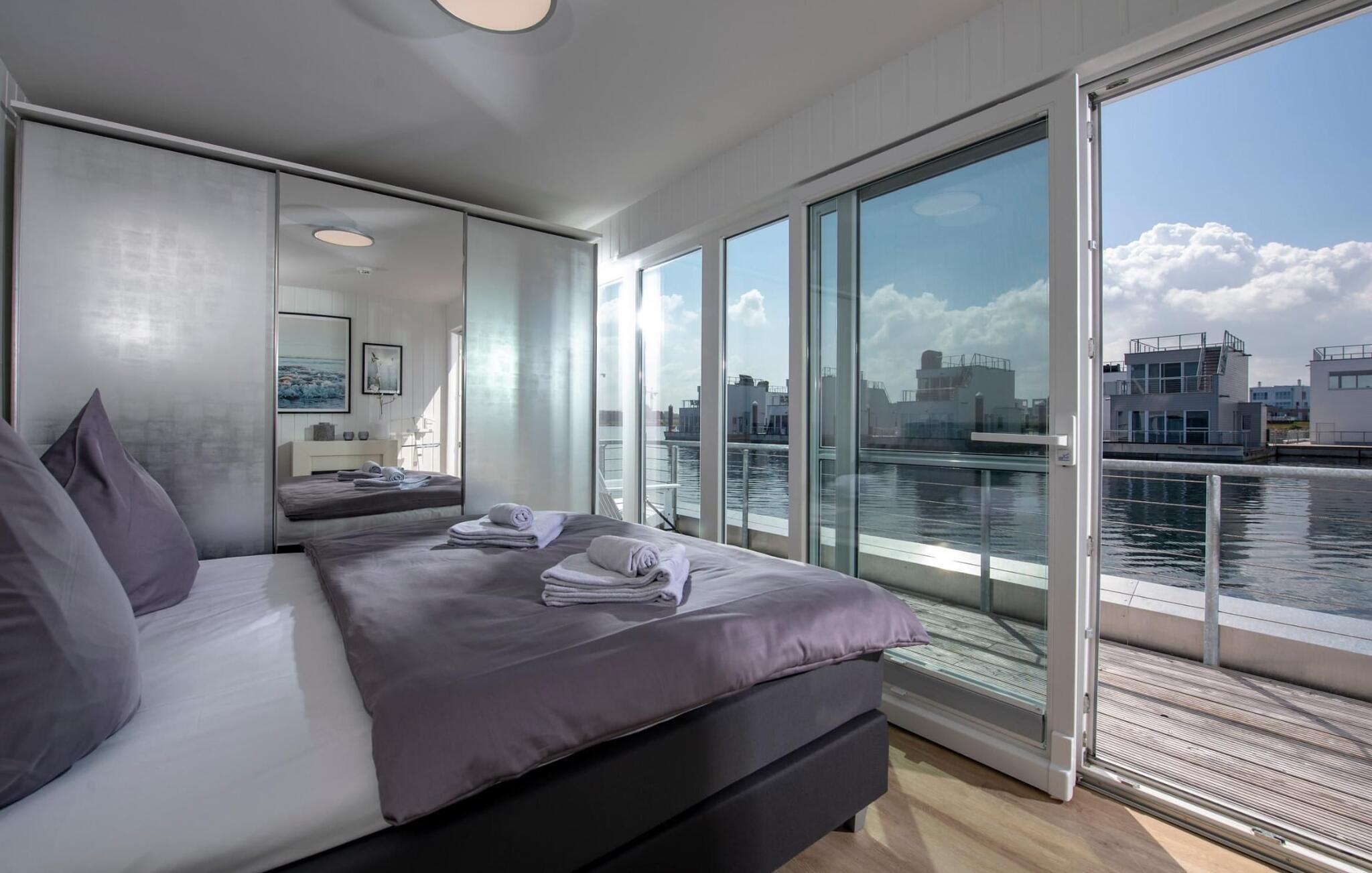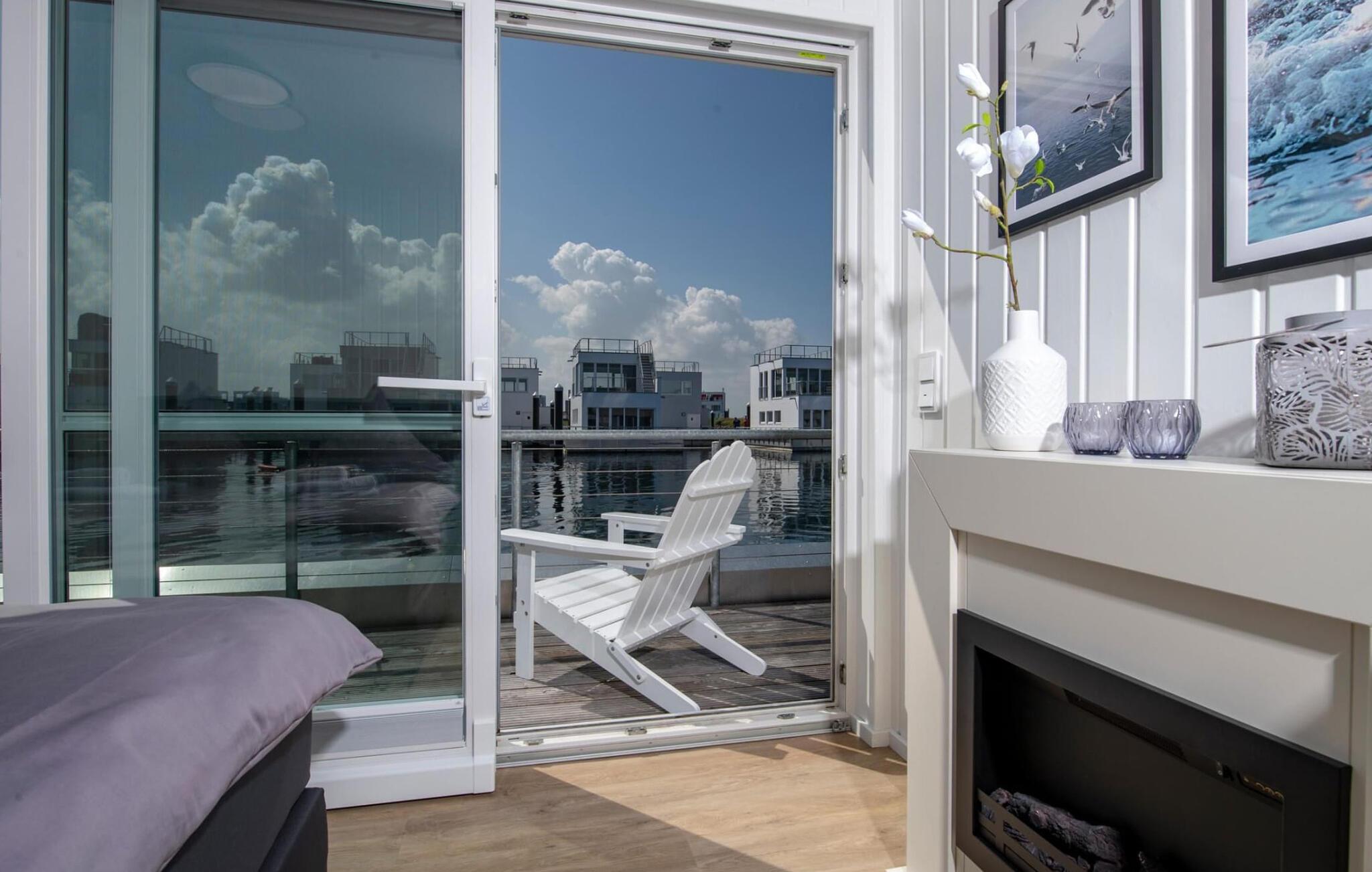 Erleben Sie maritimes Flair und Luxus im schwimmenden Haus Sanibel im OstseeResort Olpenitz.