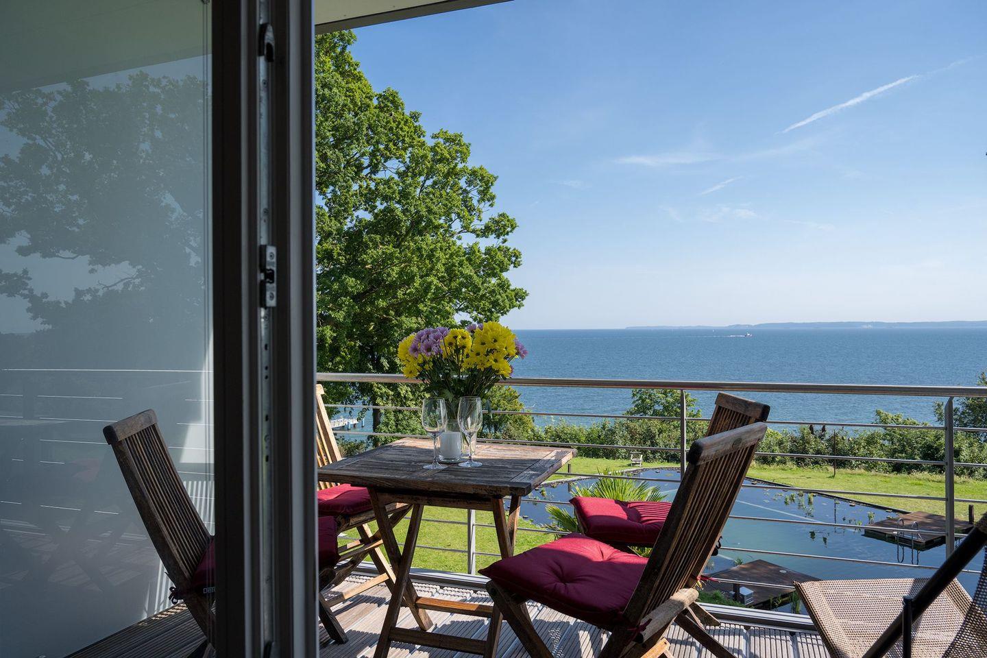 Stilvolle Ferienwohnung mit Balkon, Sauna und Meerblick direkt an der Marina Sassnitz auf Rügen.