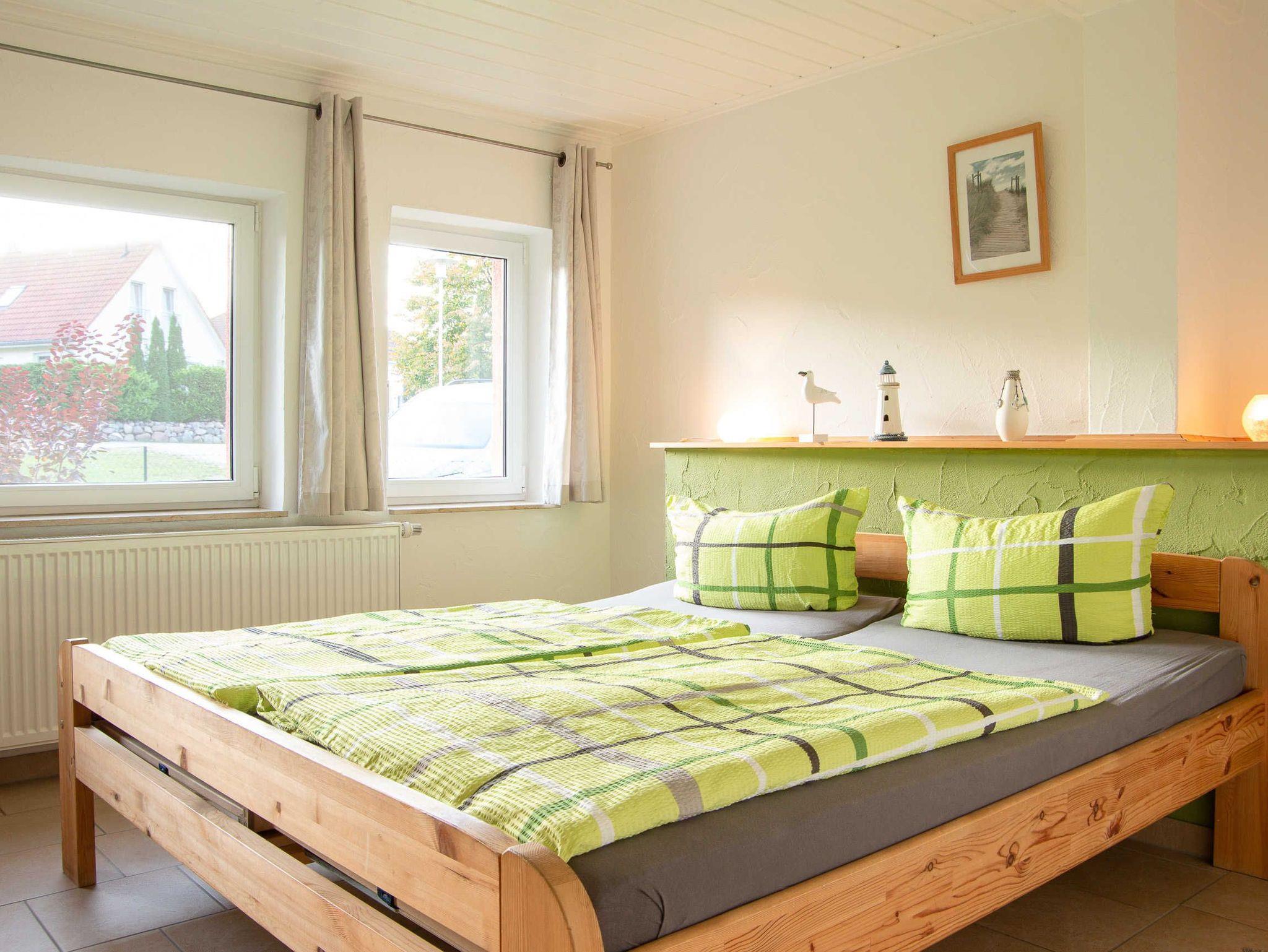 Auf über 100 qm barrierefreier Wohnfläche befinden sich 3 helle Schlafzimmer jeweils mit Doppelbett (1,80 m x 2,00 m) und 1x mit zusätzlichem Einzelbett, 2 Bäder und 1 Wohnzimmer mit offener Küche. Die ca.30 qm große, teilweise überdachte Süd-West-Terrasse lädt zum Grillen ein.