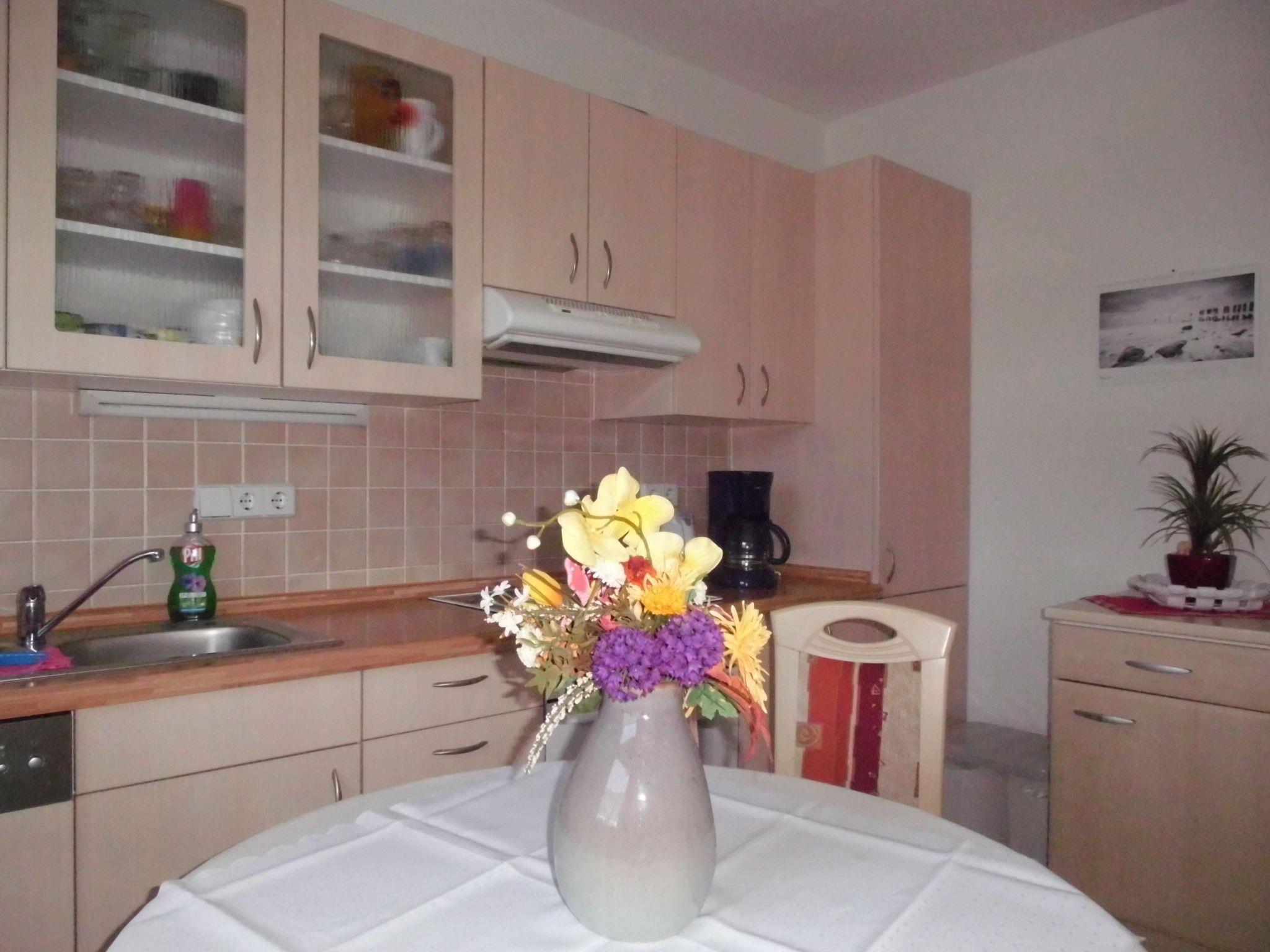 Die ca. 60 m² große Ferienwohnung verfügt über ein Wohnzimmer mit einer großzügigen Couchgarnitur, welche zu einem Schlafsofa für eine Person ausgezogen werden kann (1,10 m Breite), einen Couchtisch und einen Satelliten TV. Die Küche ist mit einem Backofen, einem Cerankochfeld, einem Kühlschrank mit Gefrierfach, einer Spülmaschine, einem Toaster, einer Mikrowelle, einer Kaffeemaschine, sowie einem Essplatz mit einer Sitzbank und Stühlen komplett ausgestattet und lässt somit keine Wünsche offen. Im Schlafzimmer befindet sich ein Doppelbett (1,80 m Breite) Hier kann auch ein Zustellbett (0,80m x 1,90m Breite), ein Kinderreisebett (0,60m x 1,20m) und ein Gitterkinderbett (0,60m x 1,60m) aufgestellt werden. Zu den Ausstattungsmerkmalen des Badezimmers zählen eine Badewanne, eine separate Dusche, ein Waschbecken, eine Toilette und ein Föhn. Gerne stellt Ihnen der Vermieter Kinderspielzeug, sowie Gesellschaftsspiele für Groß und Klein kostenfrei bereit. Eine Heizung, sowie kostenfreies WLAN befinden sich in der ganzen Wohnung. Eine Waschmaschine kann zudem gebührenfrei von Ihnen genutzt werden.