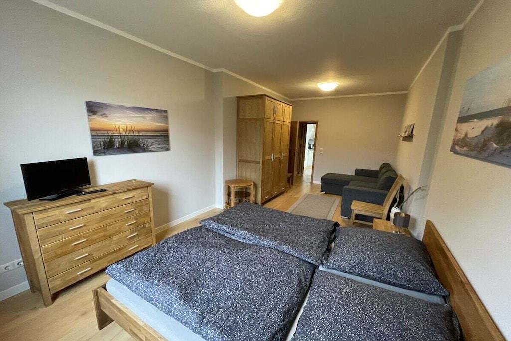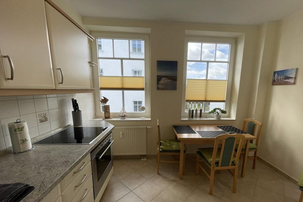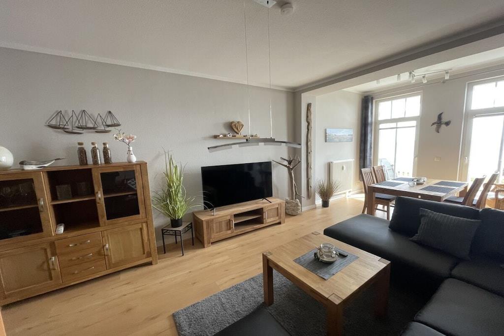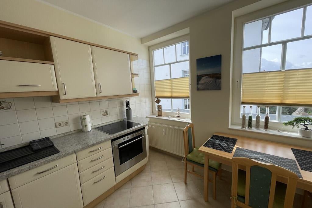 Die Wohnung liegt oberhalb der Promenade von Sassnitz mit Weitblick über die Ostsee. Sie ist ruhig gelegen, ein überdachter Stellplatz ist direkt vor dem Haus. Die 3 Zimmer Wohnung auf einer Ebene verfügt über 2 große Schlafräume mit jeweils einem Doppelbett. Das große Schlafzimmer verfügt über eine ausziehbare Eckcouch für die 5-6. Schlafmöglichkeit. Das Wohnzimmer ist liebevoll eingerichtet und man kann man die Blicke über das Meer schweifen lassen. Die zwei Balkone laden zum verweilen ein. Diese sind in Südrichtung ausgerichtet.