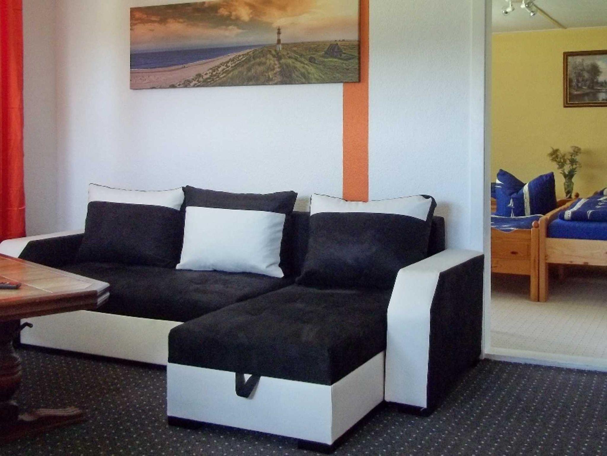 Unsere günstige 2-Raum-Ferienwohnung mit Wohnzimmer, Schlafzimmer und Bad erwartet Sie in gemütlicher Atmosphäre. Die Gemeinschaftsküche mit unserem Aufenthaltsraum lädt zum Frühstück und Speisen ein. Achtung: Die 2-Raum-Ferienwohnung bekommt eine eigene Küche bis zur Saison. Bilder folgen.