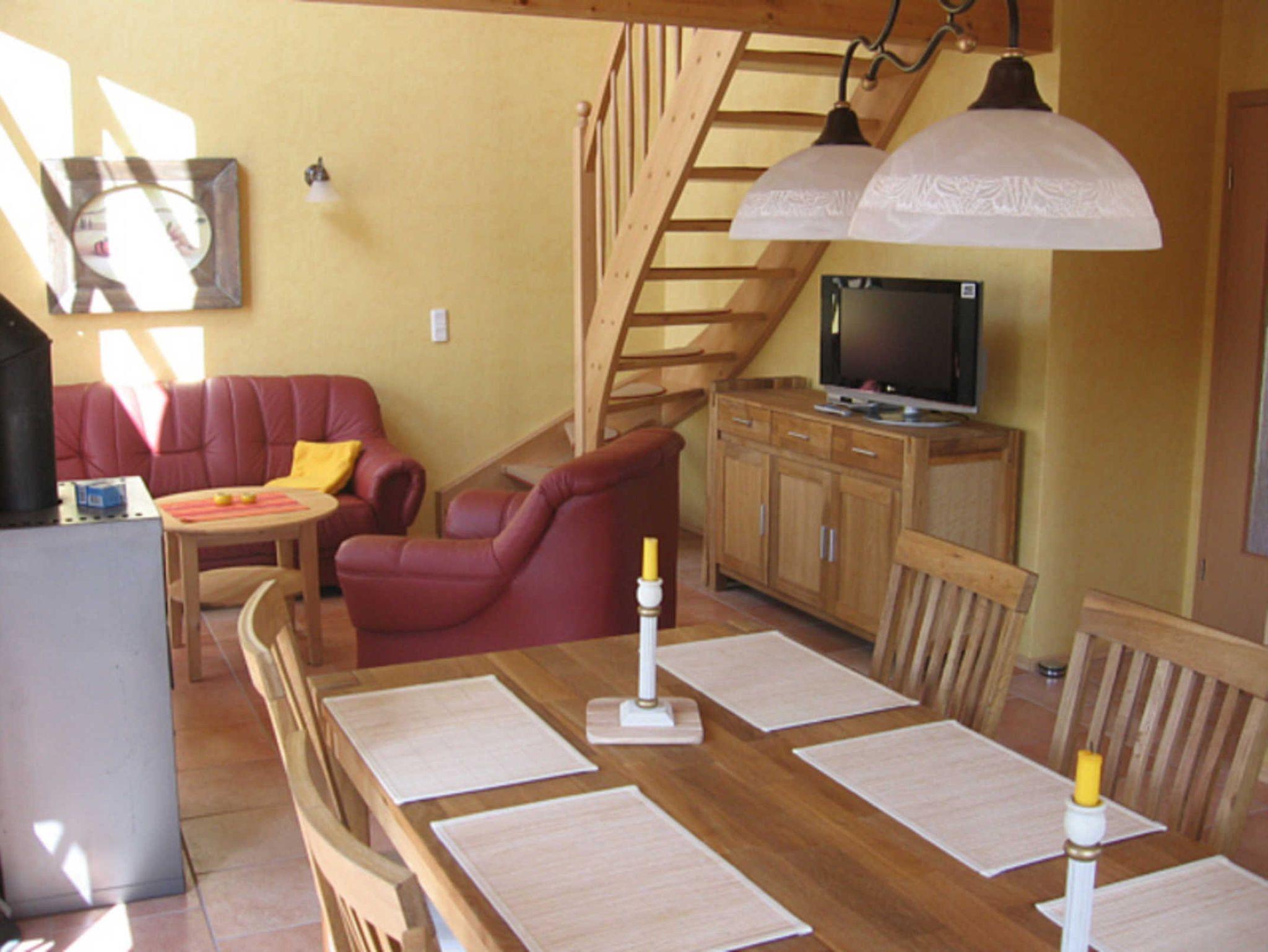 Volleingerichtetes 2006 erbautes, 95 qm grosses Ferienhaus auf 2 Etagen, mit Vollbad (DU, WC, Wanne) u. Gäste WC (Dusche)kleiner Sauna, Wohnküche mit Kaminofen, Gallerie, grosser Terrasse und Parkplatz.