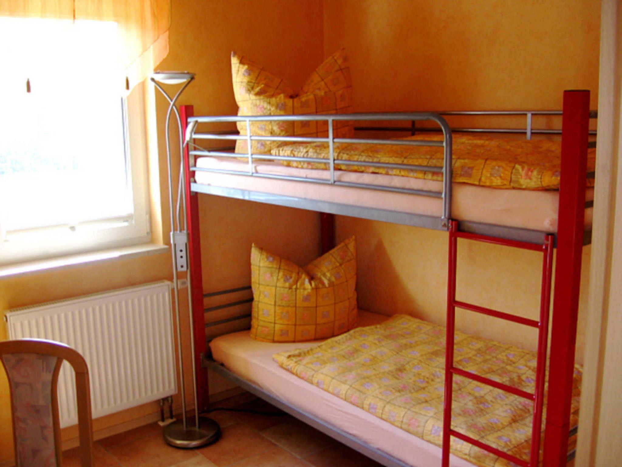 2 Doppelbetten in 2 Schlafzimmern, ein Kinderzimmer mit Etagenbett, Bettwäsche vorhanden.