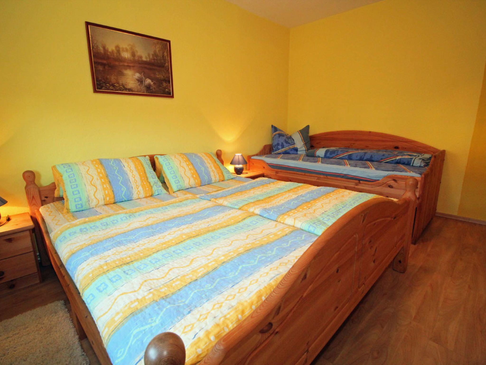 Die Ferienwohnung ist ca. 46 m² groß und besteht aus einem Schlafraum mit Doppelbett und einem Einzelbett, einem Wohnraum mit Schlafcouch sowie einer separaten Küche mit 2 Kochplatten, Kühlschrank, Kaffeemaschine, Du/WC, PKW-Stellplatz, Grillmöglichkeit, Ausstattung: Radio, TV, WLAN, Bettwäsche und Handtücher, Sitzplatz im Freien mit Grillmöglichkeit. Parkmöglichkeiten sind an der Unterkunft vorhanden.