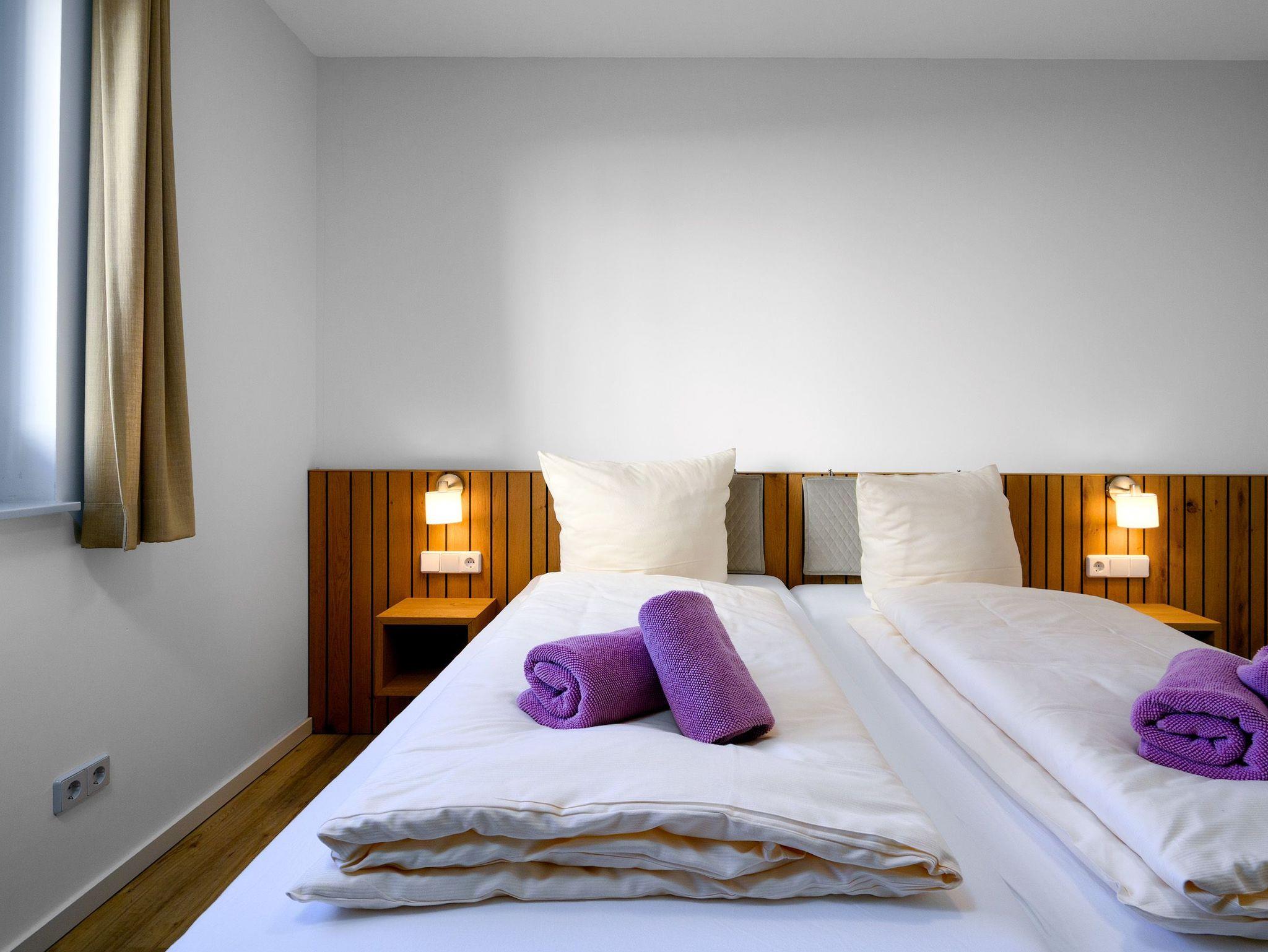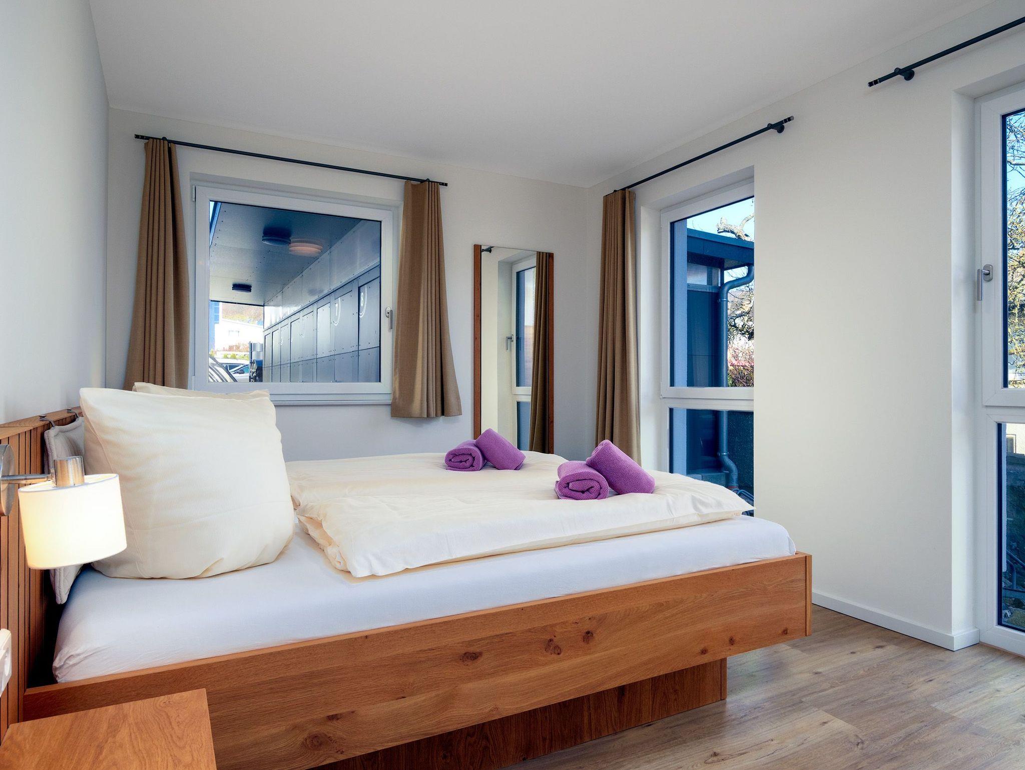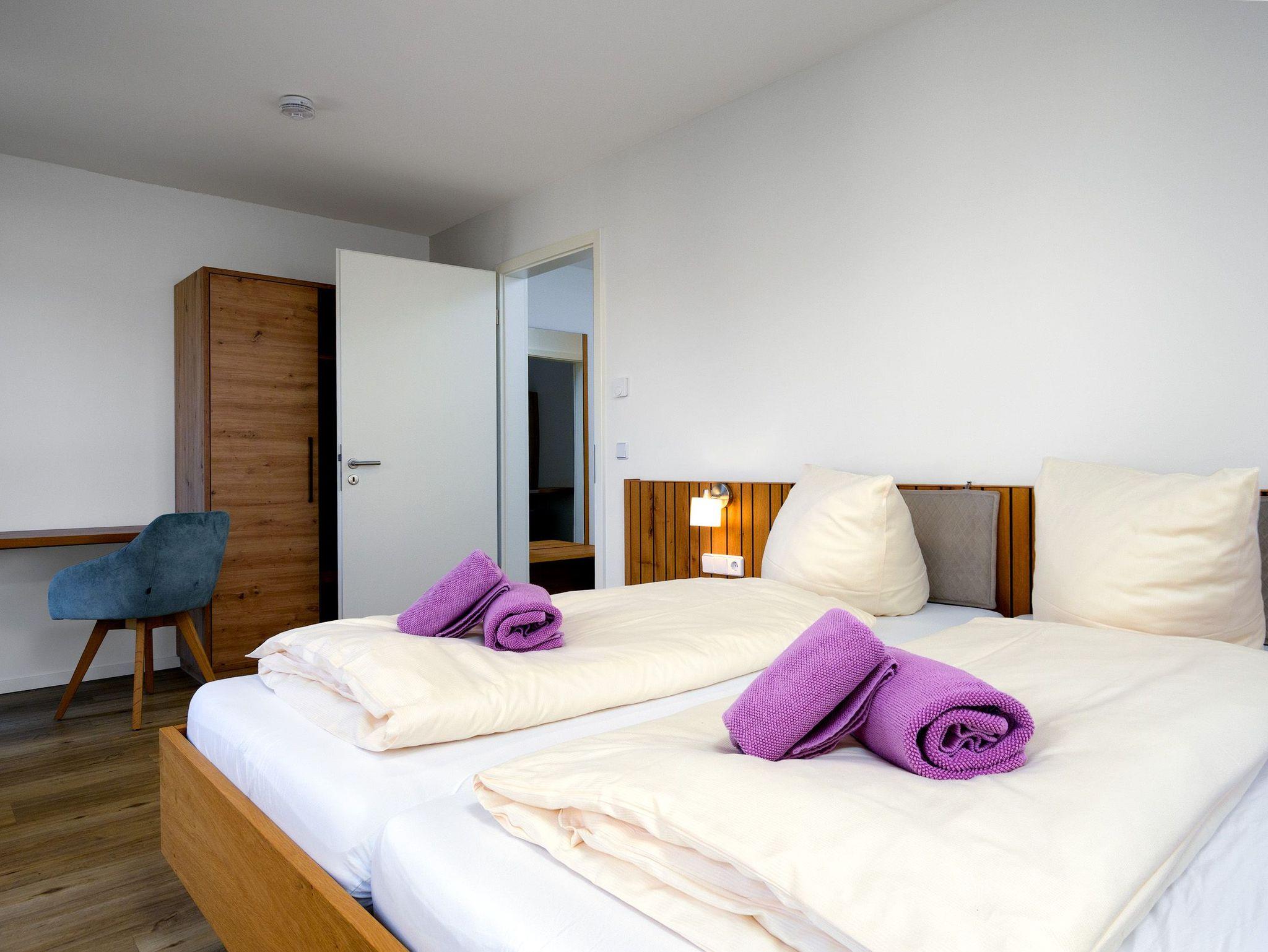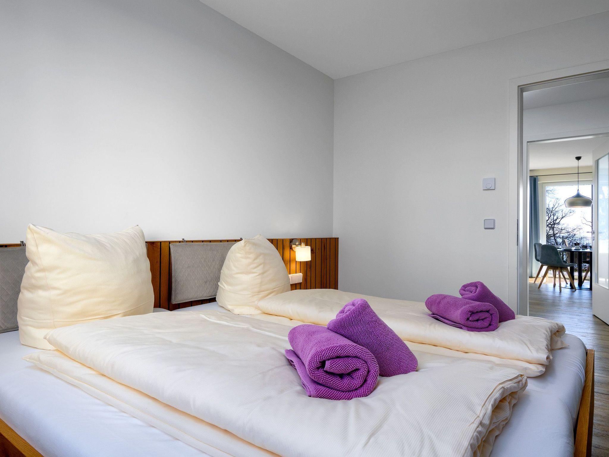 Die neue & hochwertig ausgestattete Ferienwohnung verfügt über zwei Schlafzimmer, jeweils mit Doppelbett (200 × 180) sowie ein Badezimmer mit Dusche, Badewanne & WC sowie Fön.
