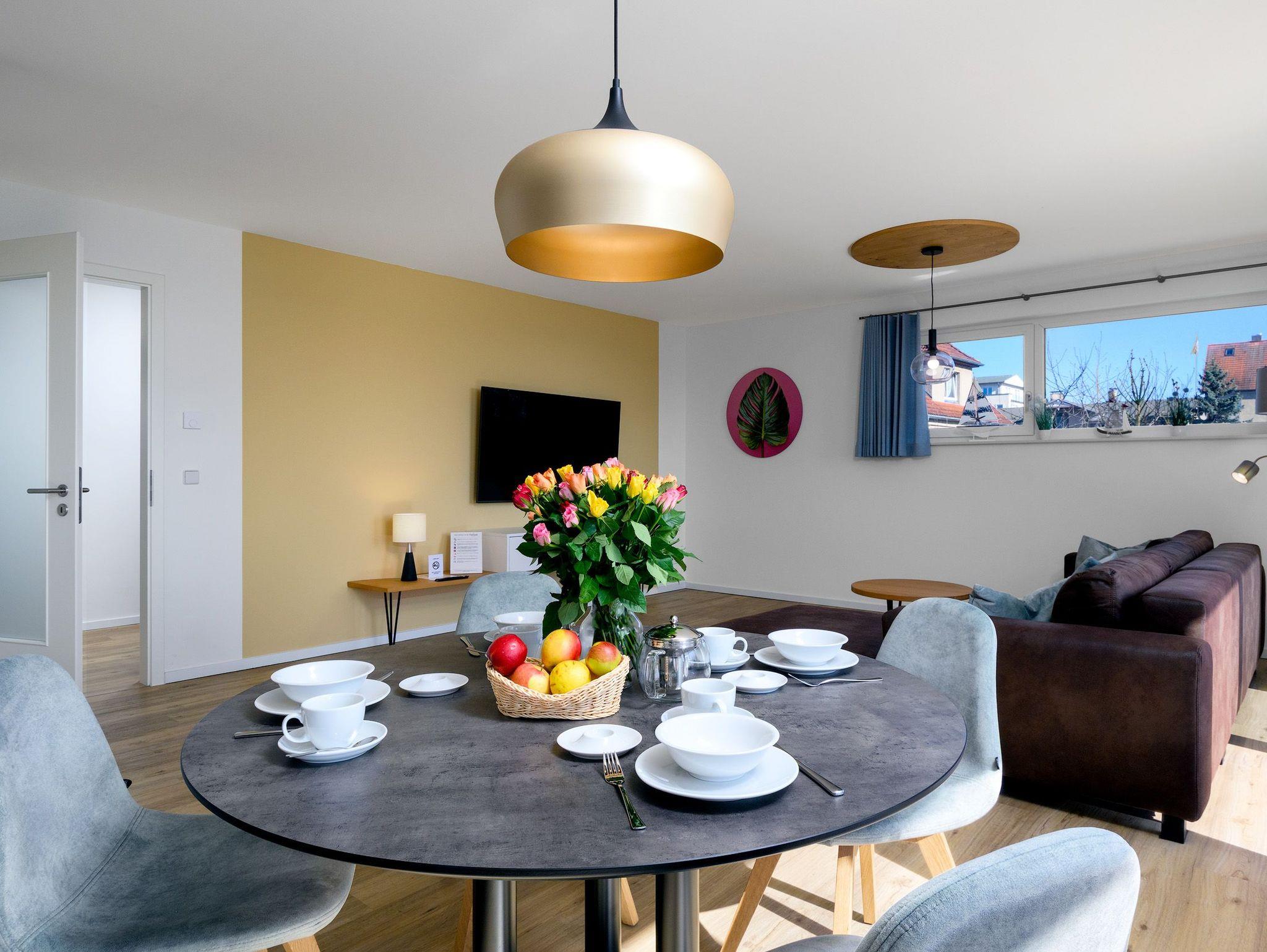 Ausgezeichneten Schlafkomfort bieten in allen Appartements Hotelbetten mit hochwertigen orthopädischen Matratzen. In allen Räumen beeindruckt das offene Wohnkonzept, dass harmonisch auf die Einrichtung abgestimmt und durch ausgewählte Bilder und Kunstobjekte unterstrichen wird.
