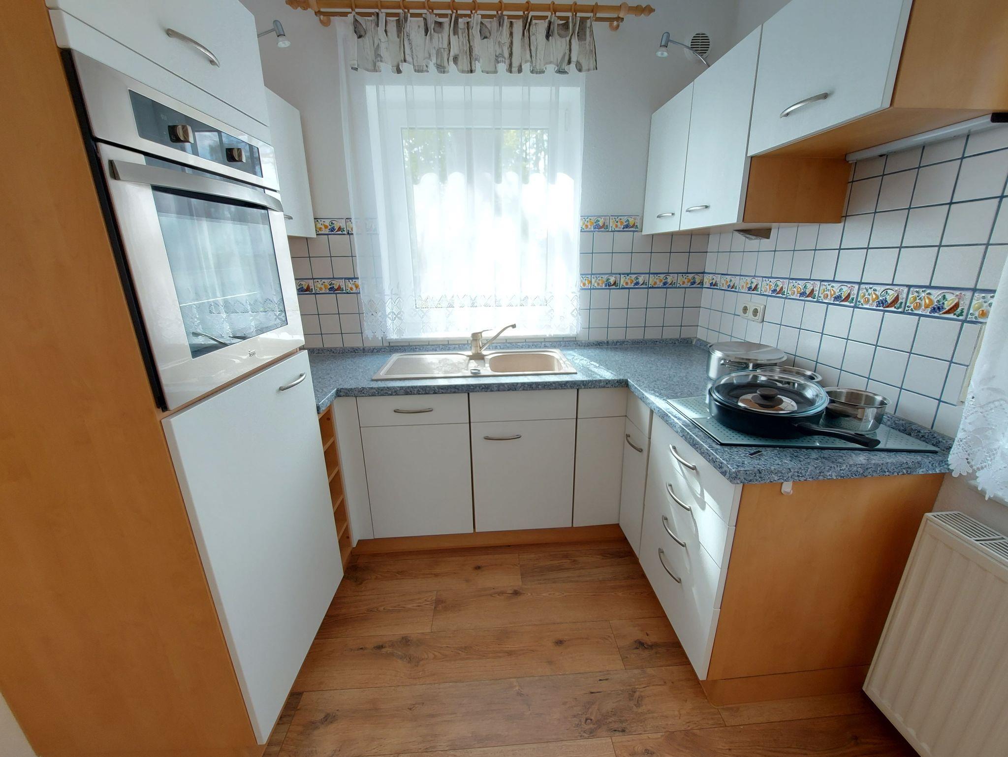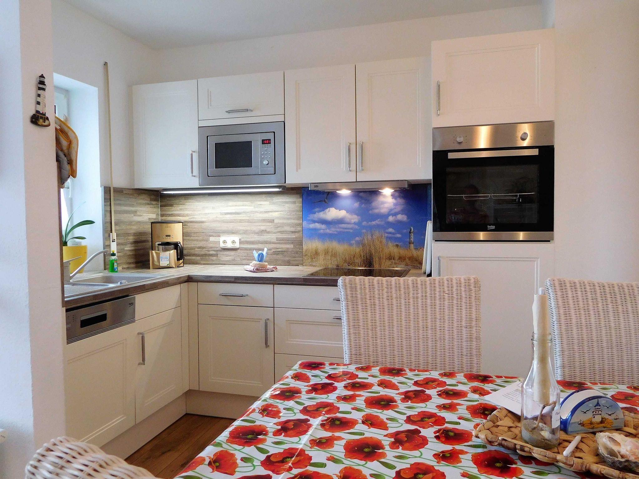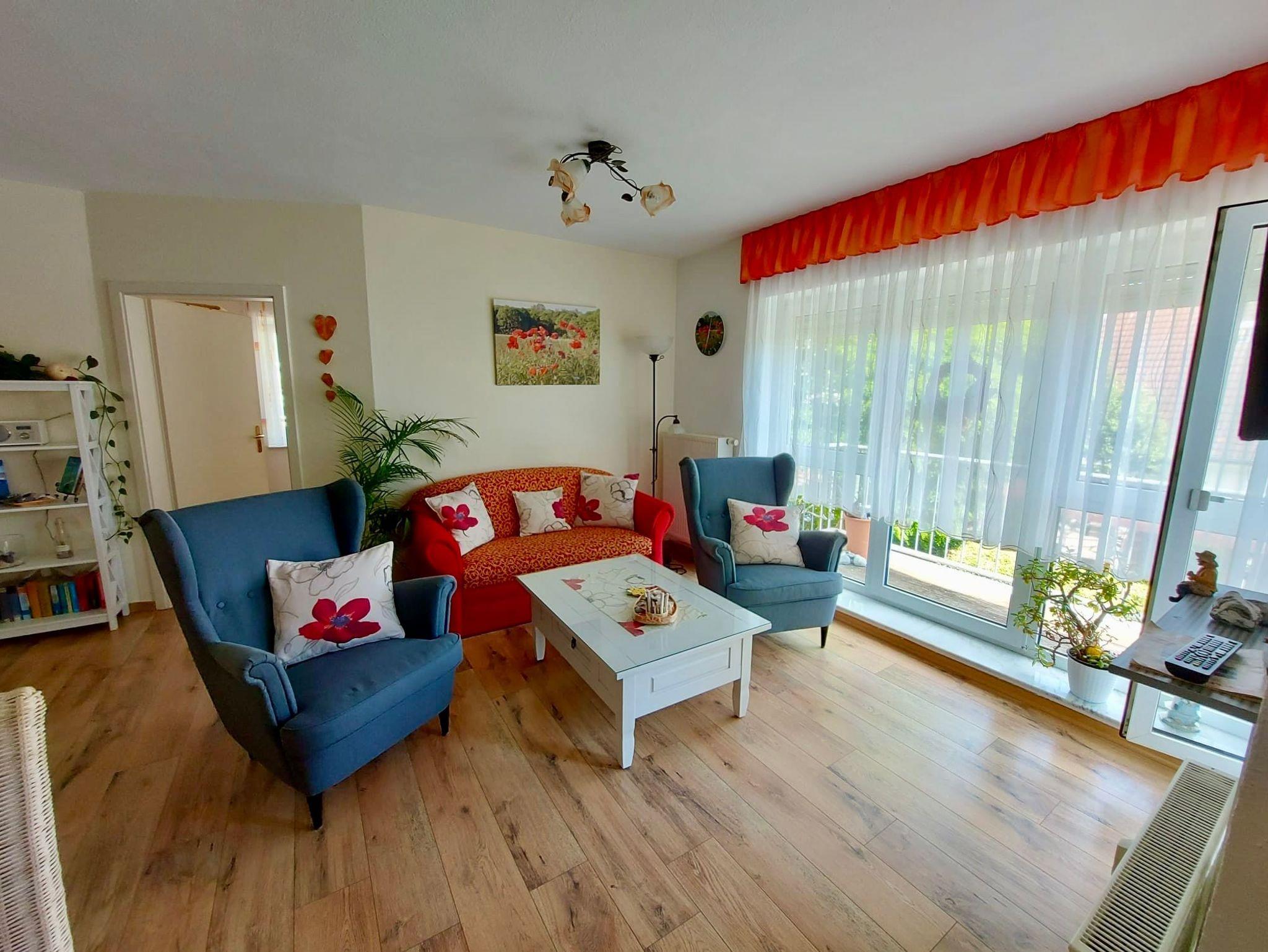 Diese Komfort-Ferienwohnung befindet sich in bevorzugter Lage am Hochufer im ersten Stock eines gepflegten Apartmenthauses in ruhiger Lage aber sehr Zentral. Sie verfügt über einen großen lichtdurchfluteten Wohnraum mit 2 gemütlichen Sofas, Sessel und Hocker die zum Sat.- Fernsehen oder zum Musikhören einladen,oder gehen sie von hier auf den Balkon mit schönen Holzmöbeln und Sonnenschirm und geniessen zb. leckeren Fisch den sie gerade am Hafen direkt vom Fischer geholt haben und in der kompletten Einbauküche mit allem Komfort , wie Geschirrspüler,Mikrowelle,Ceranfeld,Kühl-Gefrierkombi usw mit Freude zubereiten können.Angrenzend ist der Esstisch mit 4 gemütlichen Stühlen..Die Nacht geniessen sie im grosszügigen Schlafzimmer mit neuem Designerboxspringdoppelbett und 2. Balkon und im zweiten Schlafzimmer mit 2 Einzelbetten.Im Bad erwartet sie zum Entspannen eine Wanne. Auch ihr Auto hat einen eigenen PKW-Stellplatz auf dem Hof.