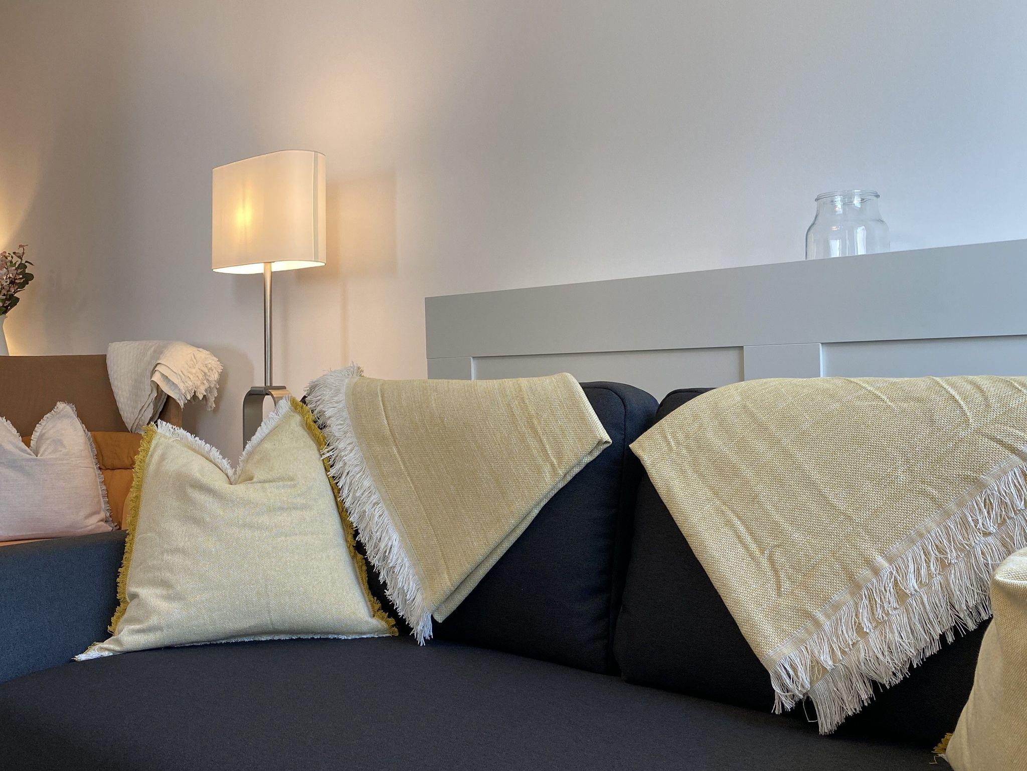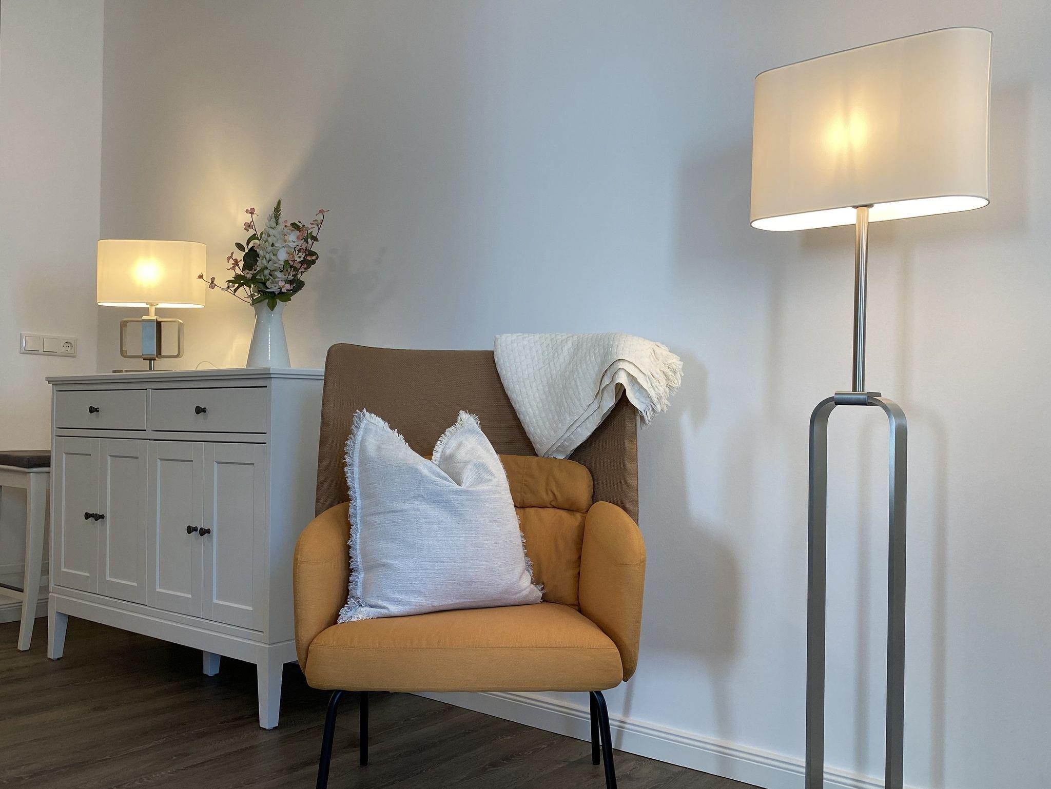 Im Wohnzimmer eine super bequeme Bruno-Schlafcouch mit Taschenfederkernmatratze zum ausziehen und einer Liegefläche von 180 x 200 cm. TV, Ohrensessel und Stubentisch laden zum verweilen ein.