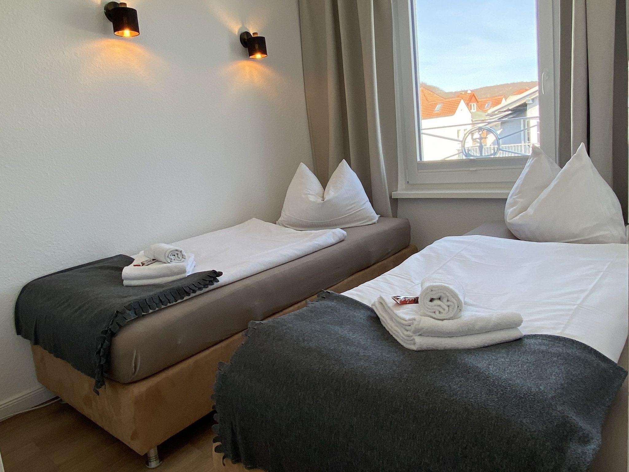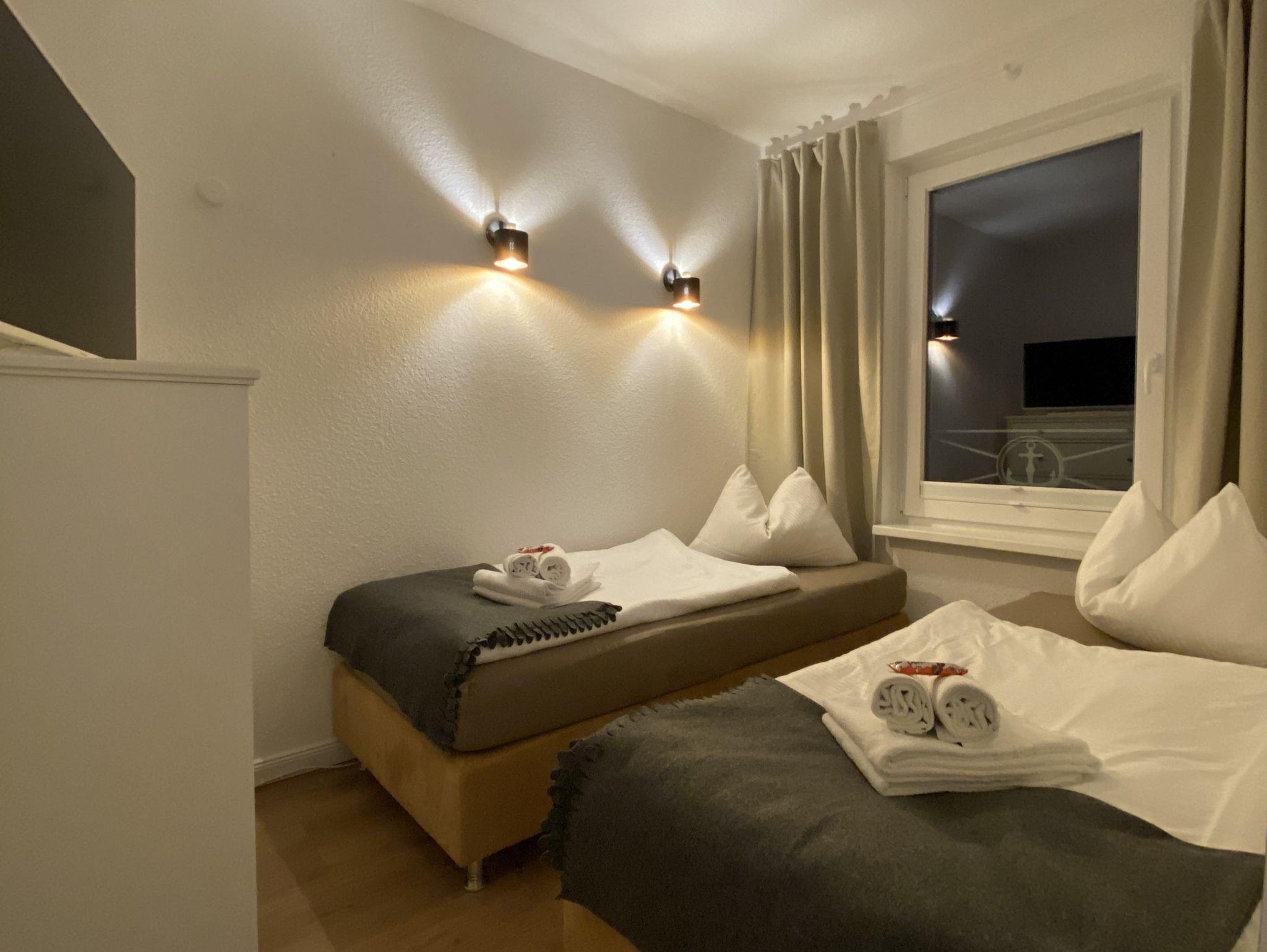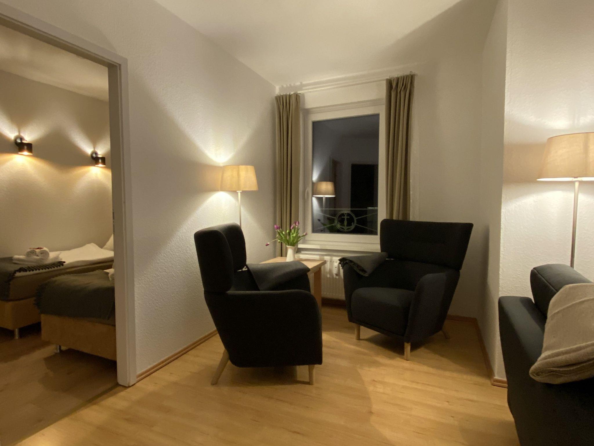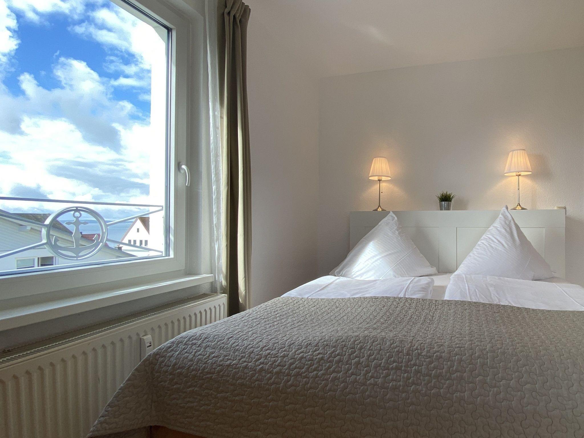 2 Raum-Ferienwohnung mit Ostseeblick, Nichtraucher, für bis zu 4 Erwachsene und bis zu 2 Babybetten, gelegen im zweiten Obergeschoss.