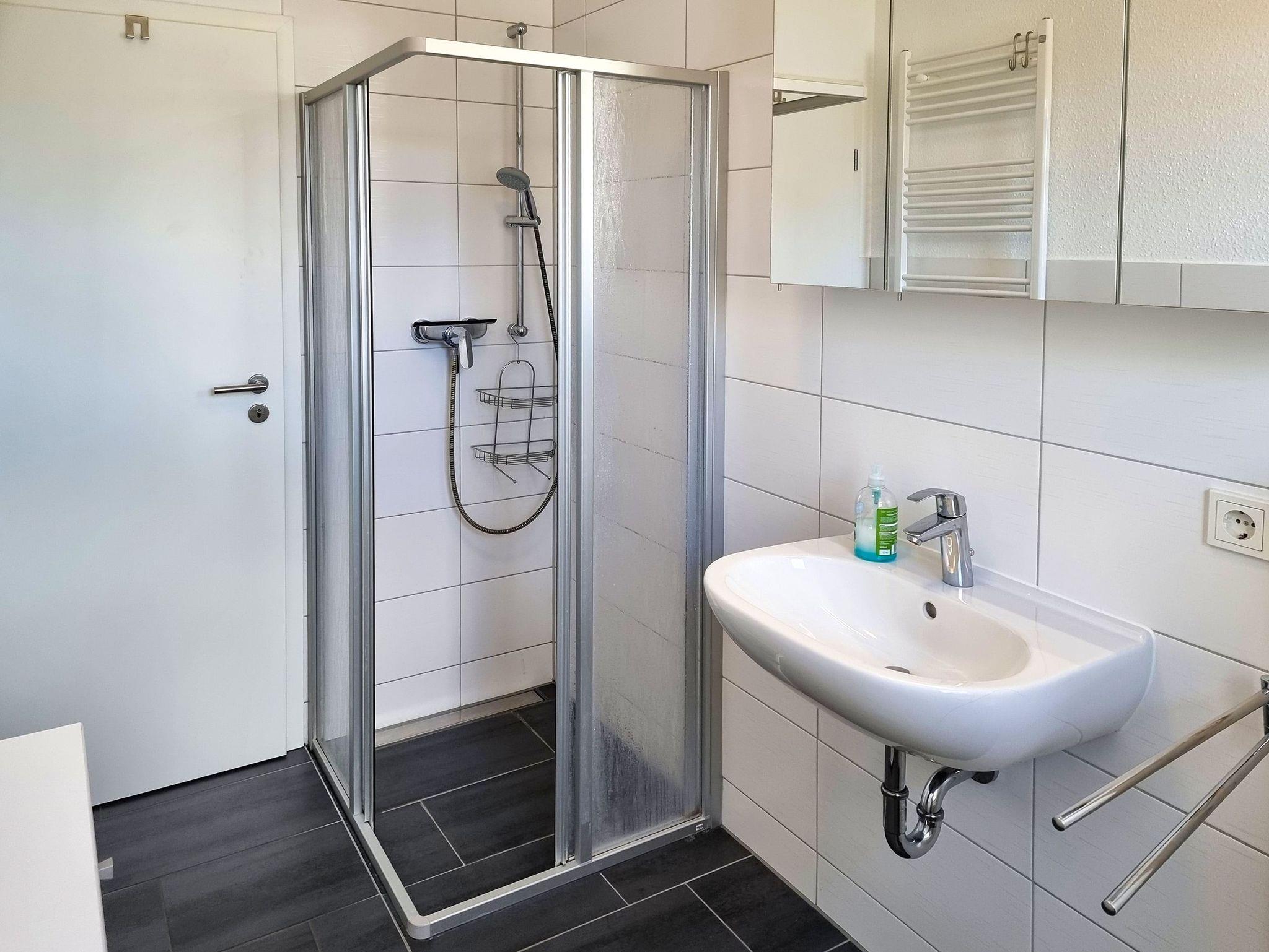• Das Badezimmer ist mit Dusche, WC, Fön und Handtuchheizung ausgestattet.
