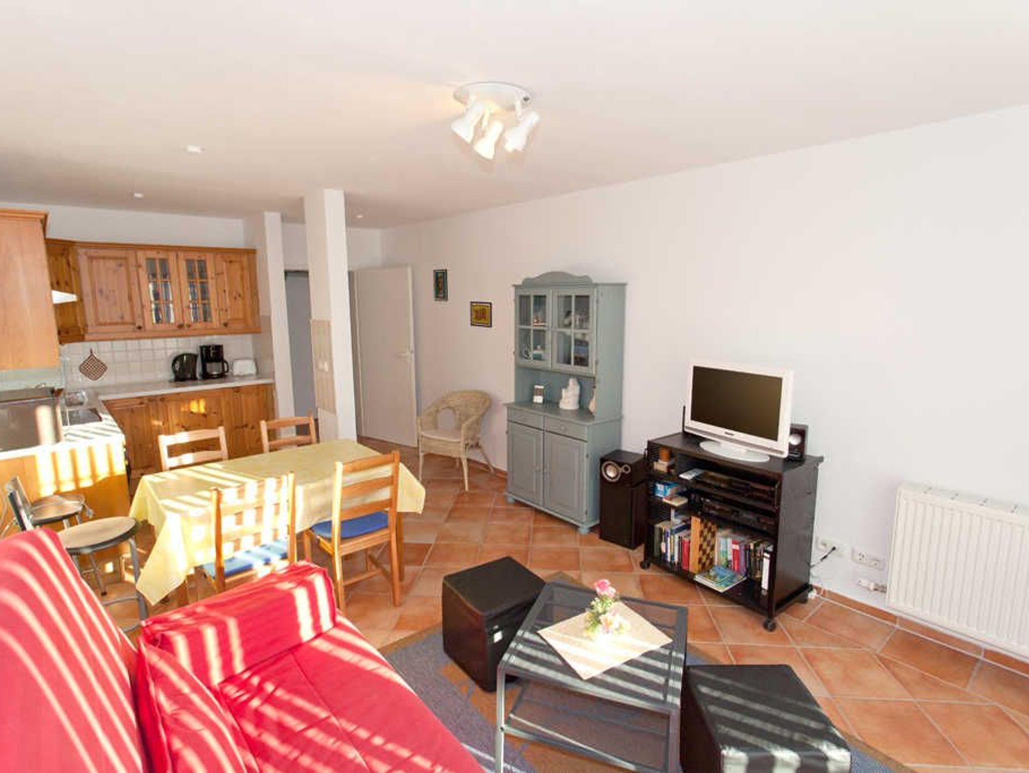 Die Wohnung verfügt über 60 qm Wohnfläche mit Wohn-Schlafraum (Schlafsofa, KabelTV u. Hifianlage), Küche mit Komplettausstattung (Mikrowelle, Cerankochfeld usw.) Essplatz, Schlafzimmer mit Doppelbett sowie Dusche/WC. Eine 30 qm Süd/West-Terrasse, mit Gartenmöbeln und Liegen, lädt zum Sonnen und Erholen ein. Ein Pkw- ( Parkplatz 1) und Fahrradstellplatz stehen zur Verfügung. Der Zugang zum Haus ist barrierefrei!