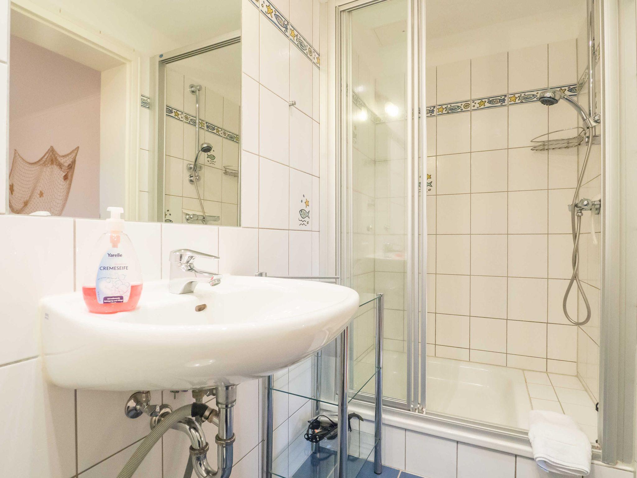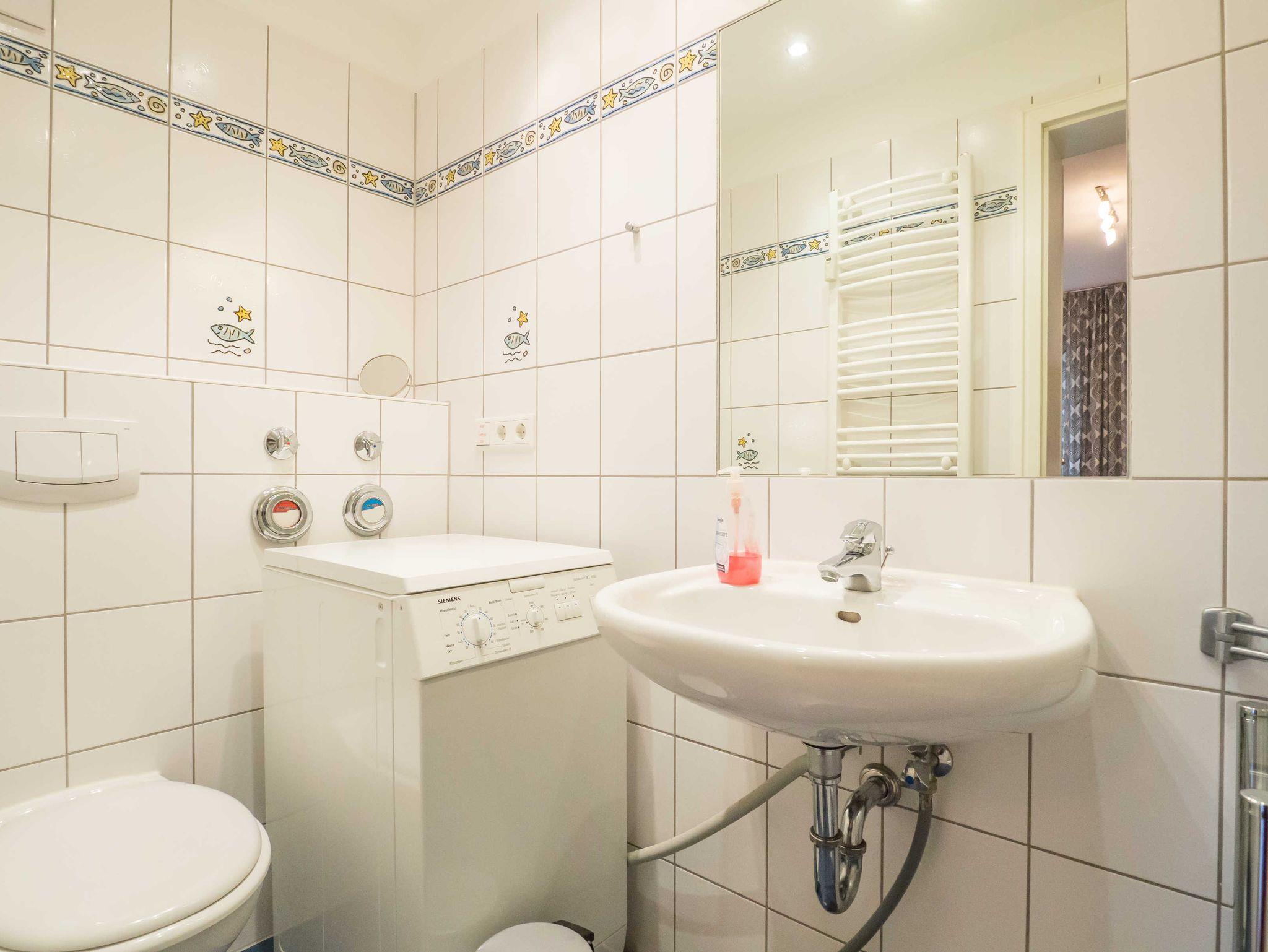 Das komfortable Duschbad/WC verfügt über eine Waschmaschine, die Ihnen zur Verfügung steht.