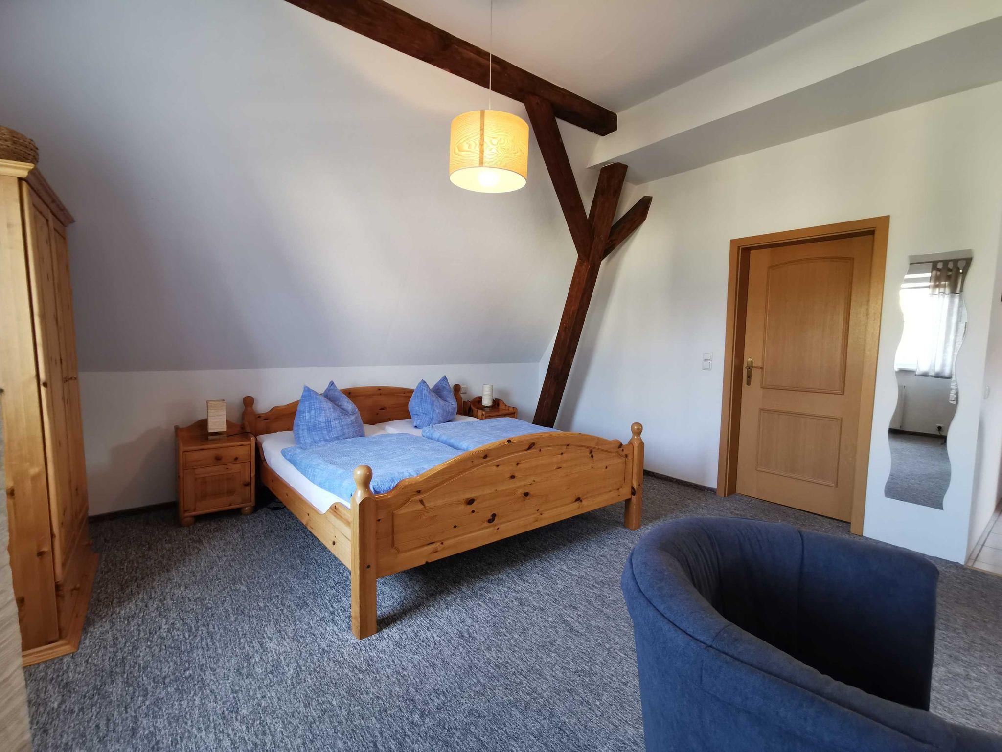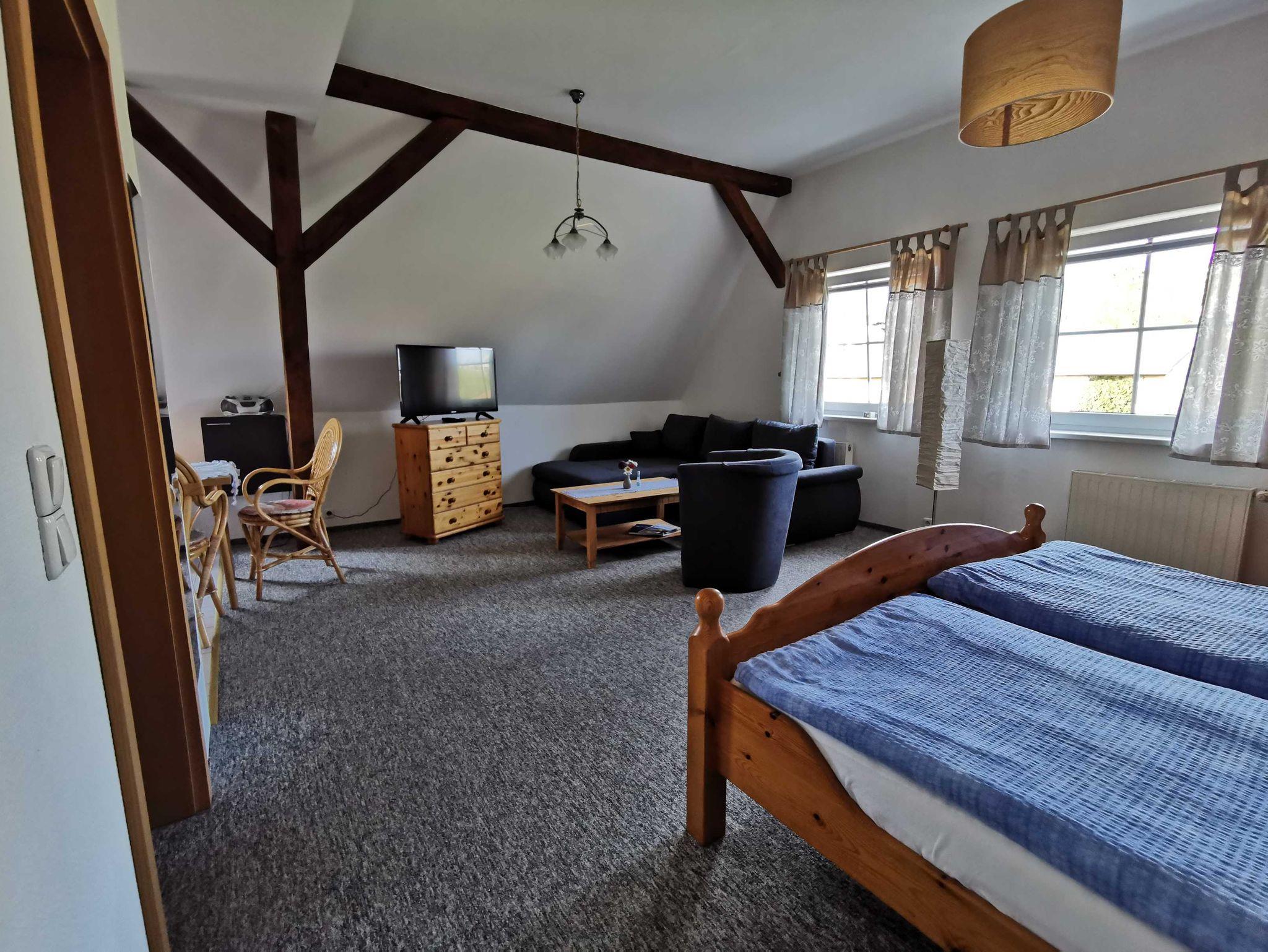 Das Studio befindet sich in einem sep. Ferienhaus im Obergeschoss. 1 großer Raum mit Sitzecke, Doppelbett und Küchenzeile, max. 2 Pers. TV, Radio, Du/WC.