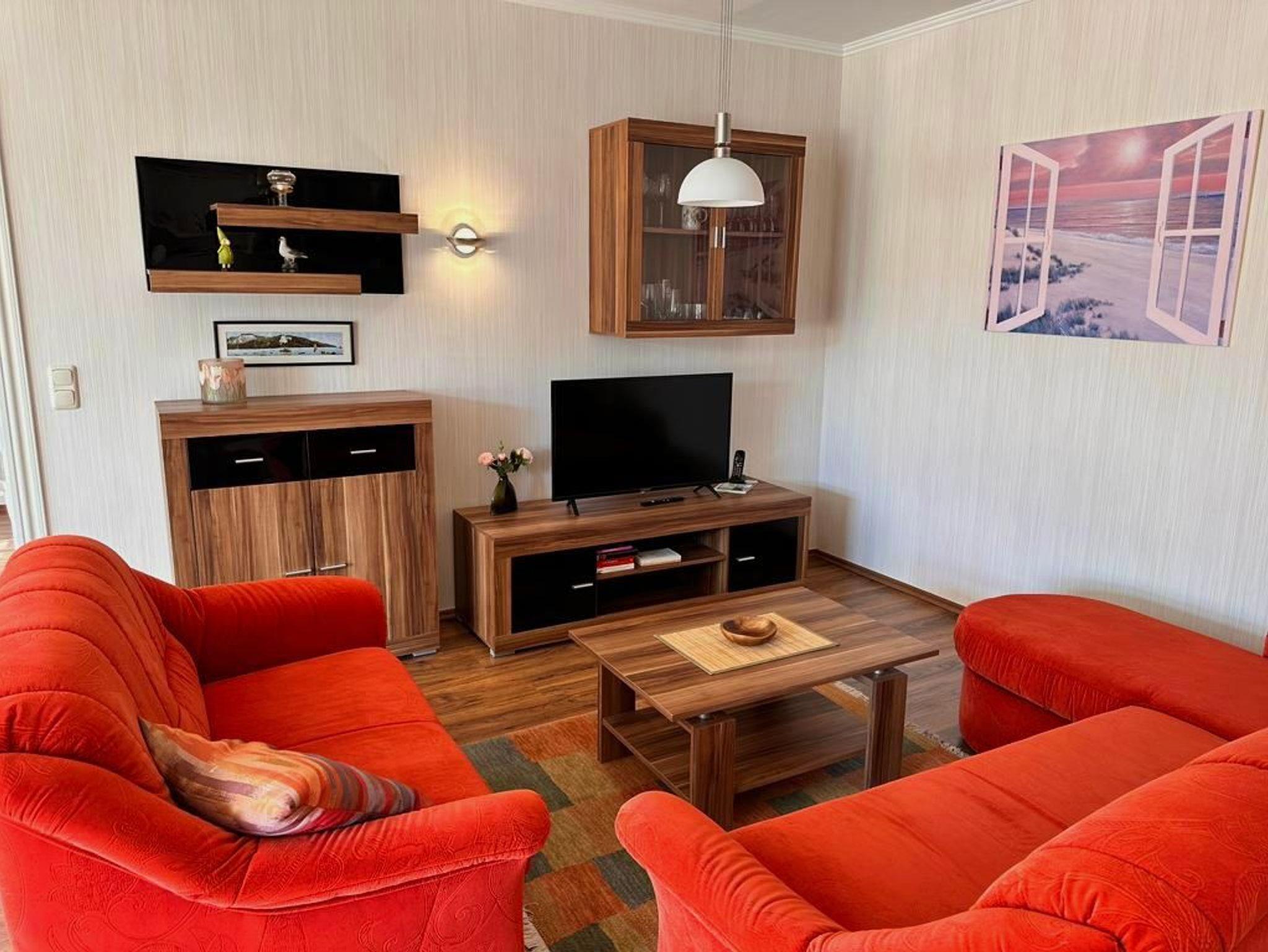 ? Die moderne Ferienwohnung verfügt über einen großzügigen lichtdurchfluteten Wohnraum mit Eßplatz, gemütlicher Sitzecke, TV, Radio und Telefon. Eine Aufbettung auf der Couch im Wohnraum ist möglich.
