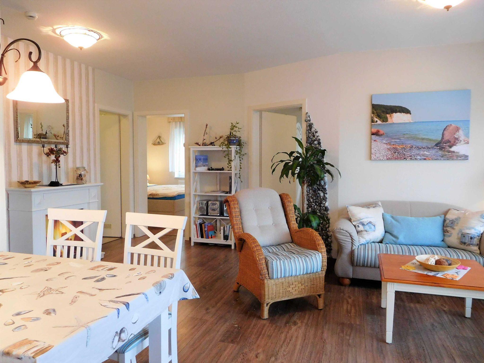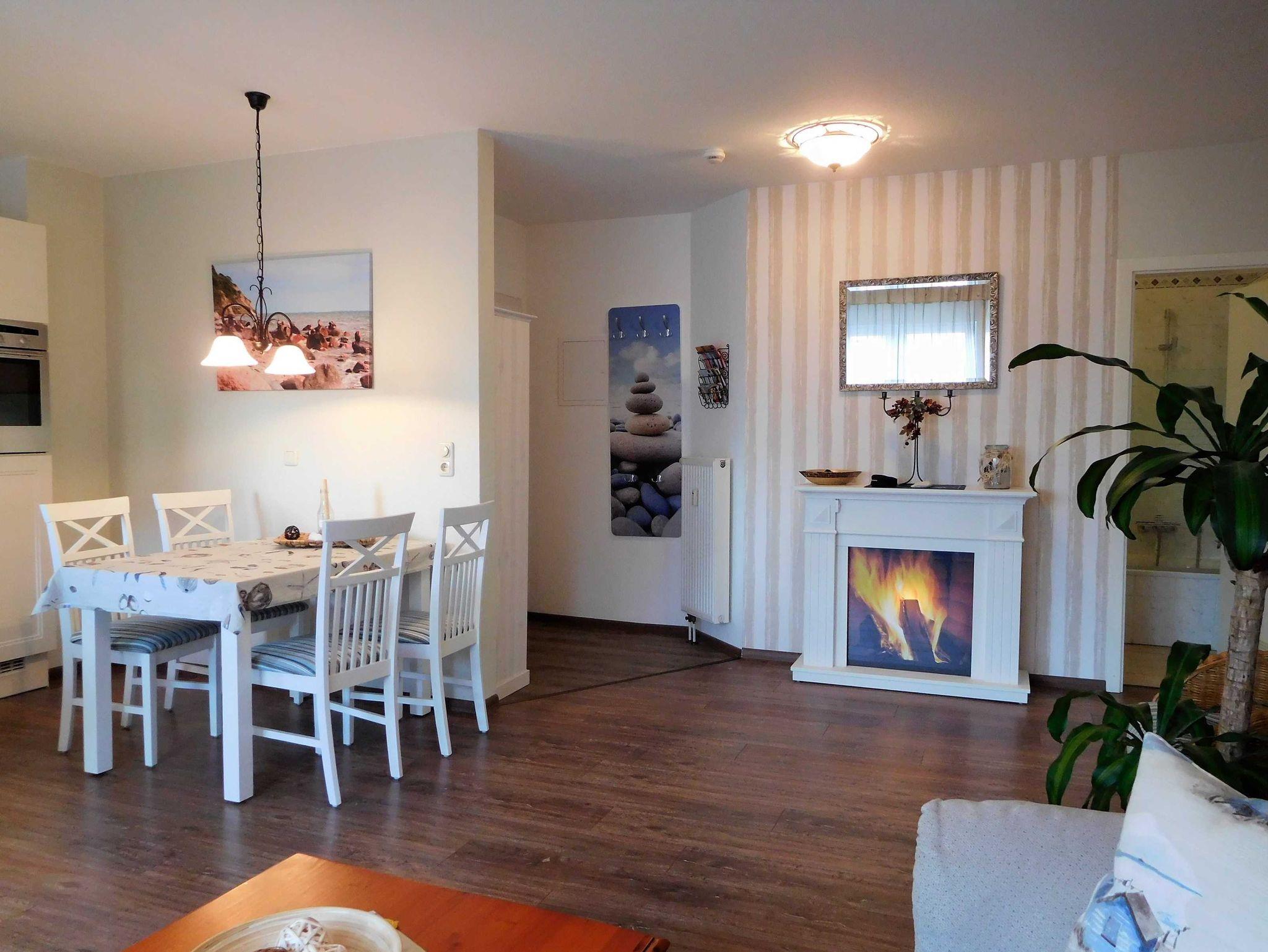 eines gepflegten Apartmenthauses in ruhiger Lage aber sehr Zentral. Sie verfügt über einen großen lichtdurchfluteten Wohnraum mit 2 gemütlichen Sofas und einem Sessel, die zum Sat.- Fernsehen oder zum Musikhören einladen oder gehen sie von hier auf den Balkon mit schönen Holzmöbeln, Sitzkissen und Sonnenschirm und geniessen z Bsp leckeren Fisch, den sie gerade am Hafen direkt vom Fischer geholt haben und in der kompletten Einbauküche mit allem Komfort , wie Geschirrspüler, Mikrowelle, Ceranfeld, Kühl-Gefrierkombi usw mit Freude zubereiten können. Angrenzend ist der Esstisch mit 4 gemütlichen Stühlen.Die Nacht geniessen sie im grosszügigen Schlafzimmer mit Doppelbett und 2. Balkon und im zweiten Schlafzimmer mit 2 Einzelbetten. Im Bad erwartet sie zum Entspannen eine Wanne. Auch ihr Auto hat einen eigenen PKW-Stellplatz auf dem Hof. Fahrradständer vorhanden. Bettwäsche inklusive. Handtücher bitte selbst mitbringen. Gemeinschaftswaschmaschine im Keller.