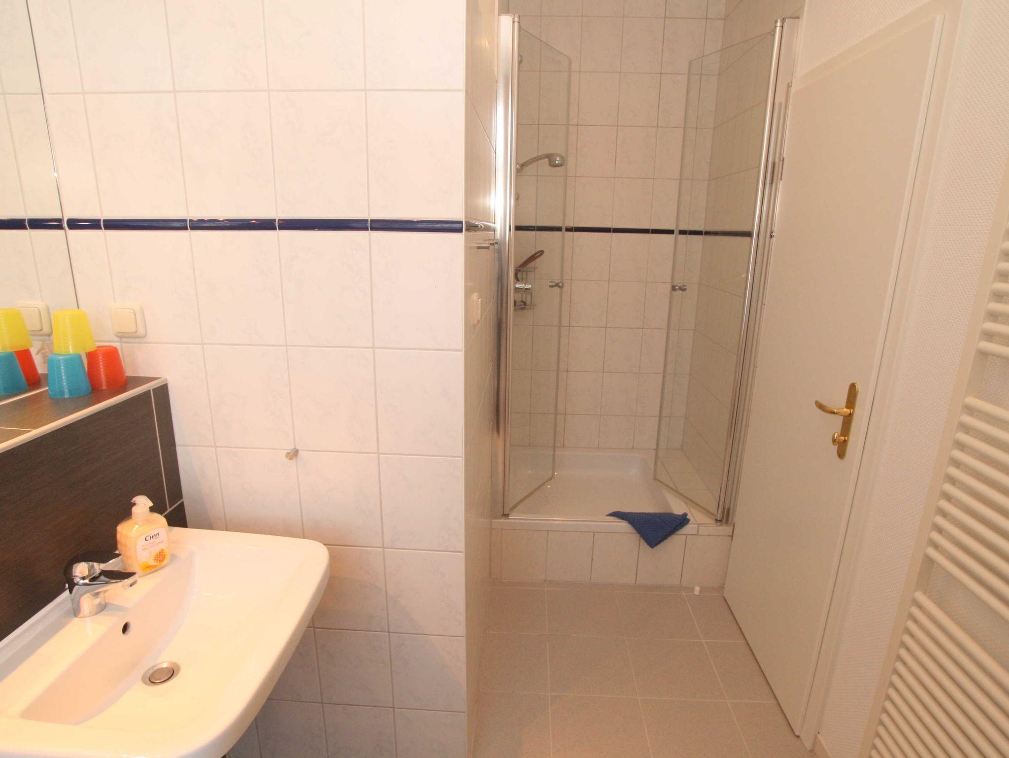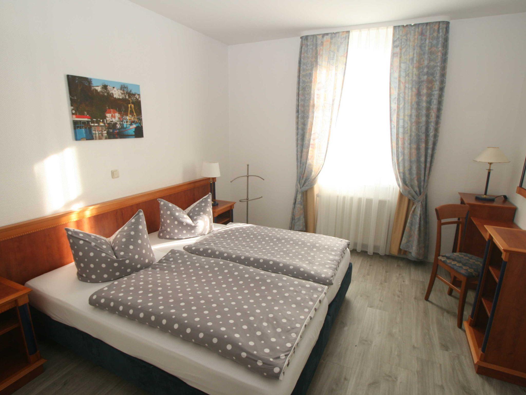 Unser Appartement Mönchgut besteht aus zwei Schlafzimmern. In einem sind ein Doppelbett (1,80x2,00m) , zwei Nachtschränkchen, ein Schreibtisch und ein grosser Kleiderschrank.In dem zweiten Schlafzimmer befinden sich zwei einzeln stehende Betten(90x1,90m), ein Schreibtisch und ein kleiner Kleiderschrank. Ein Bad mit Dusche ist vorhanden. Fön, Handseife und Toilettenpapier stellen wir für Sie bereit. Bettwäsche und Handtücher sind im Preis schon enthalten.