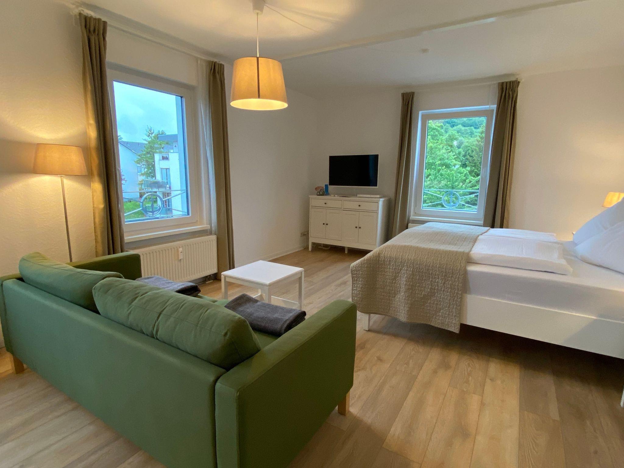 1 Raum-Ferienwohnung mit seitlichen Ostseeblick, NIchtraucher, für bis zu 2 Erwachsene und bis zu 2 Babybetten, gelegen im 2. Obergeschoss.