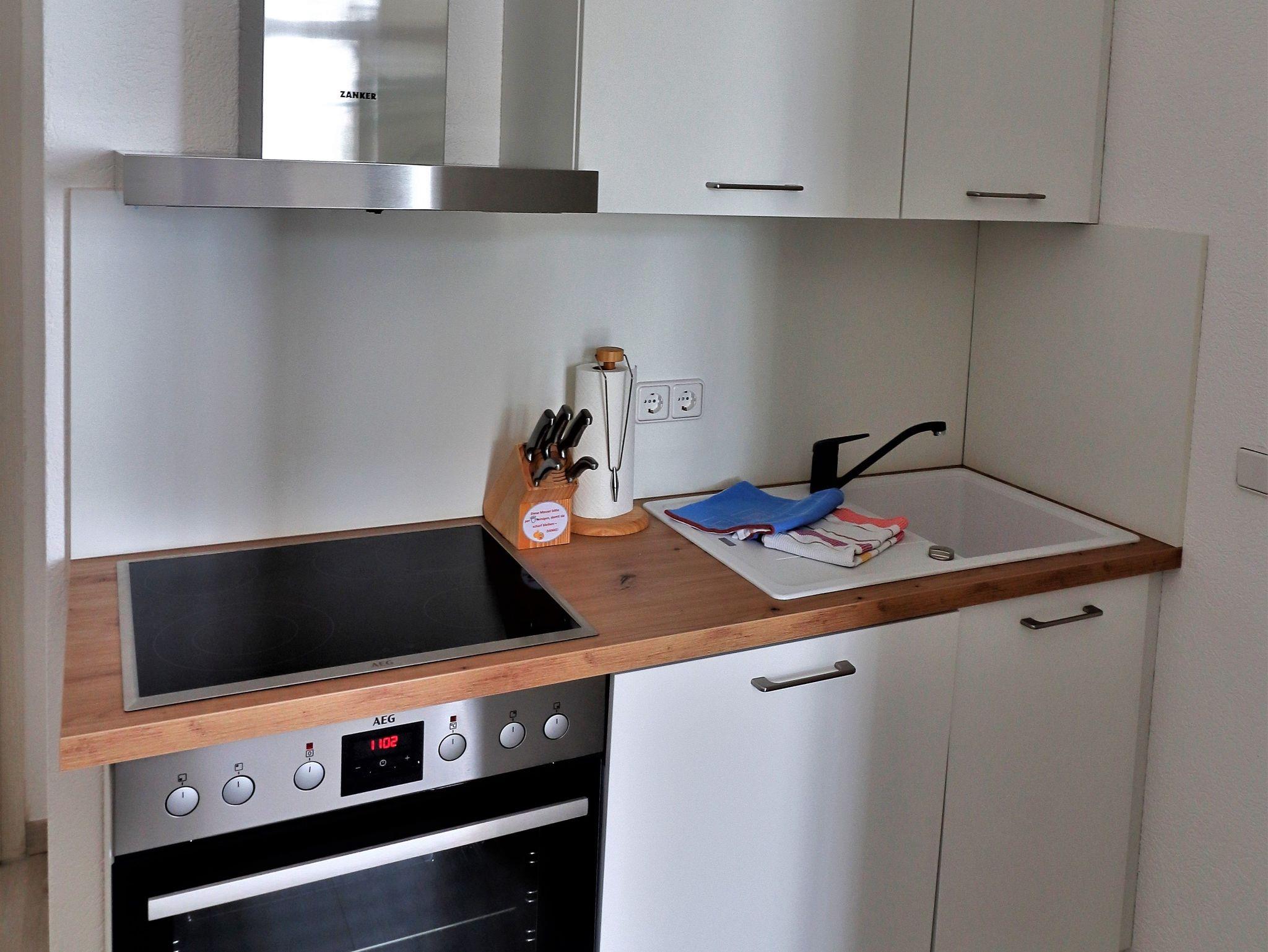 In der ebenfalls völlig neu - eingerichteten und ausgestatteten Küchenzeile mit Backofen und Spülmaschine kann nach Lust und Laune gekocht werden.