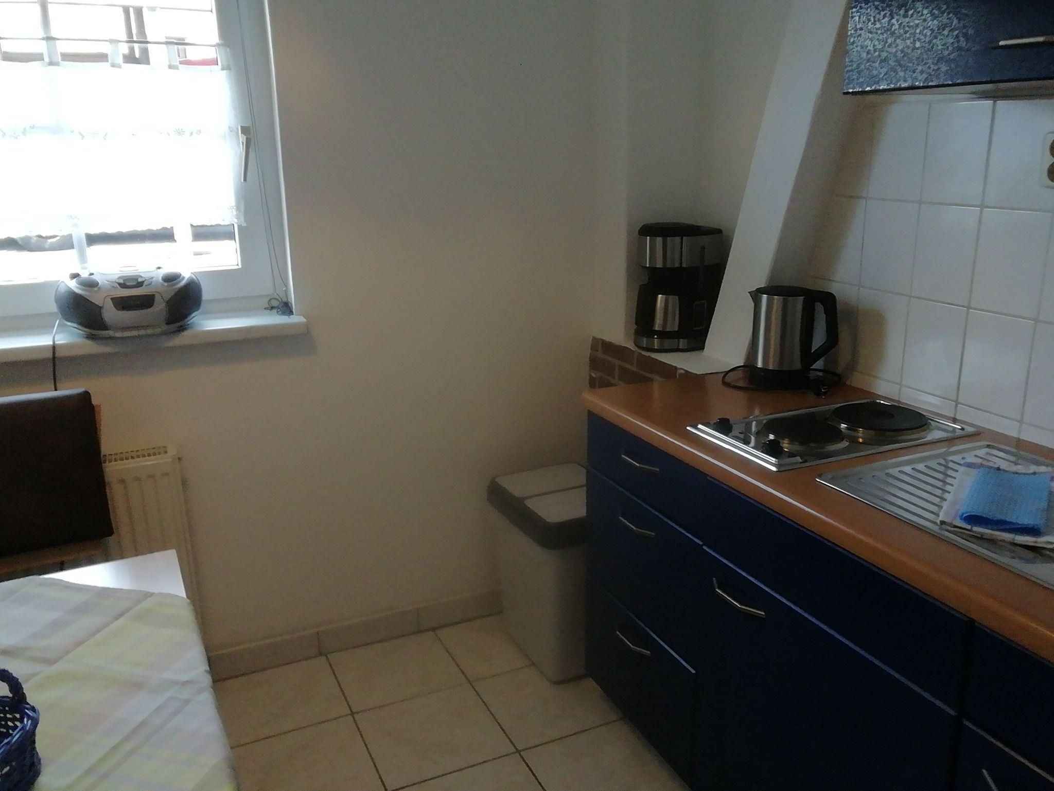 Die Ferienwohnung befindet sich in einem sep. Ferienhaus auf dem Grundstück des Eigentümers im Erdgeschoss. 1 Wohnküche mit Küchenzeile und Sitzecke, 1 Wohn-,Schlafraum mit Doppelbett, TV, Radio,, DU/WC für max. 2 Pers.