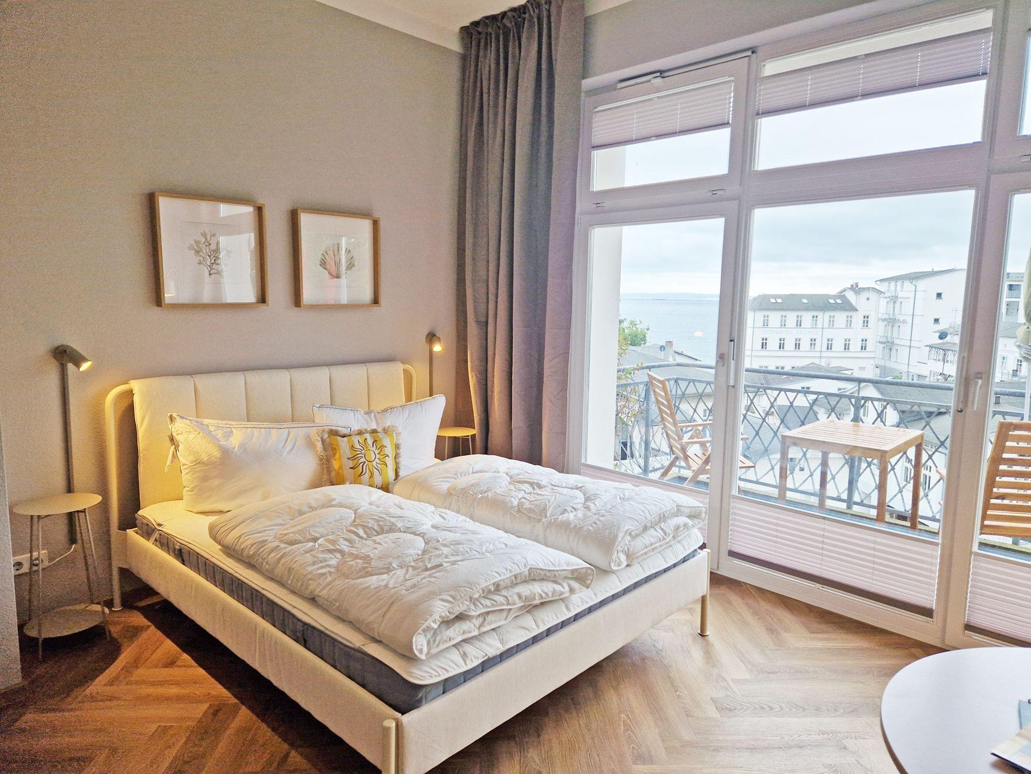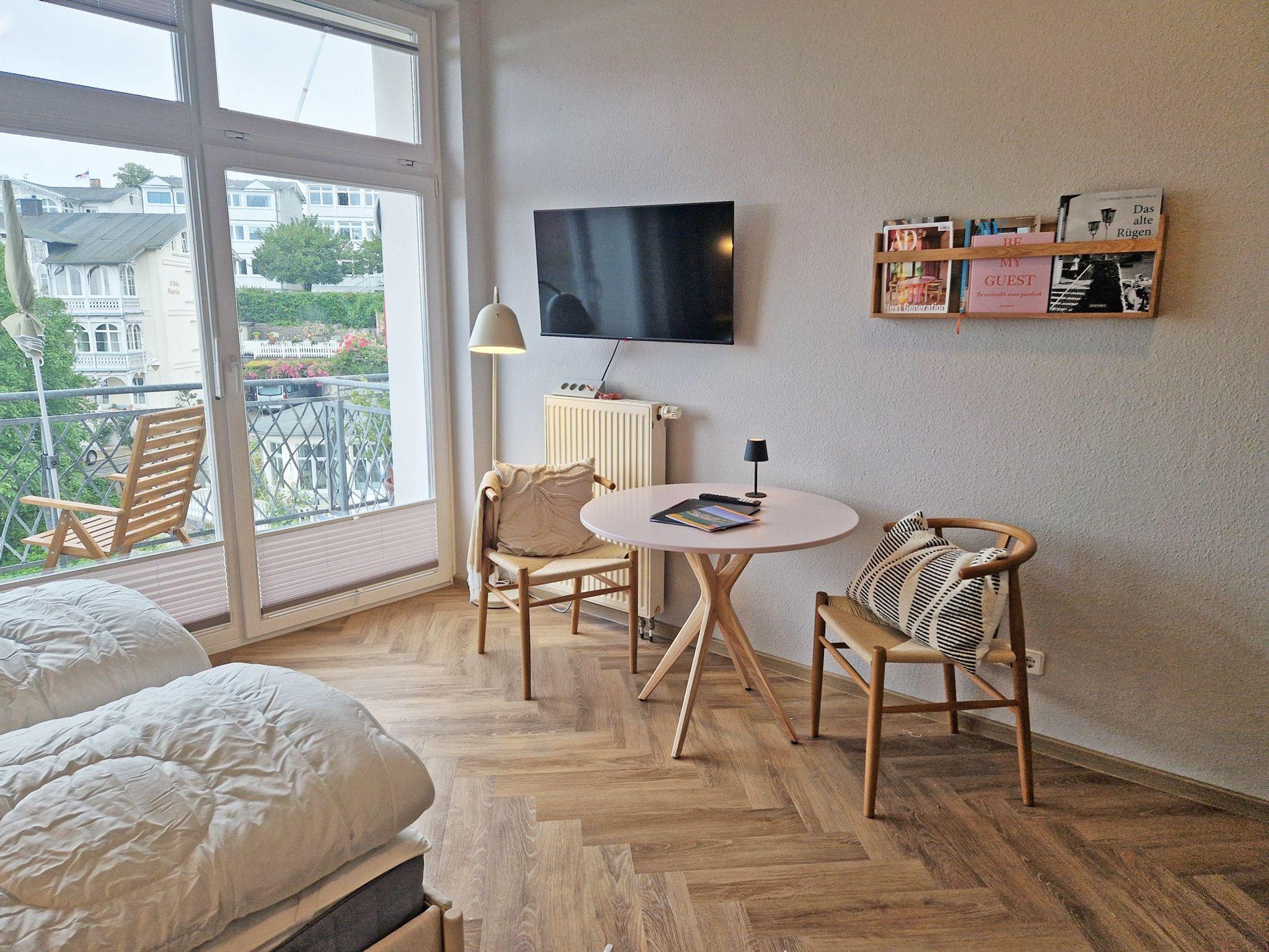 Ein lichtdurchflutetes Appartement mit Meerblick und Balkon im historischen Sassnitz, ideal für Erholung und Naturerlebnis.