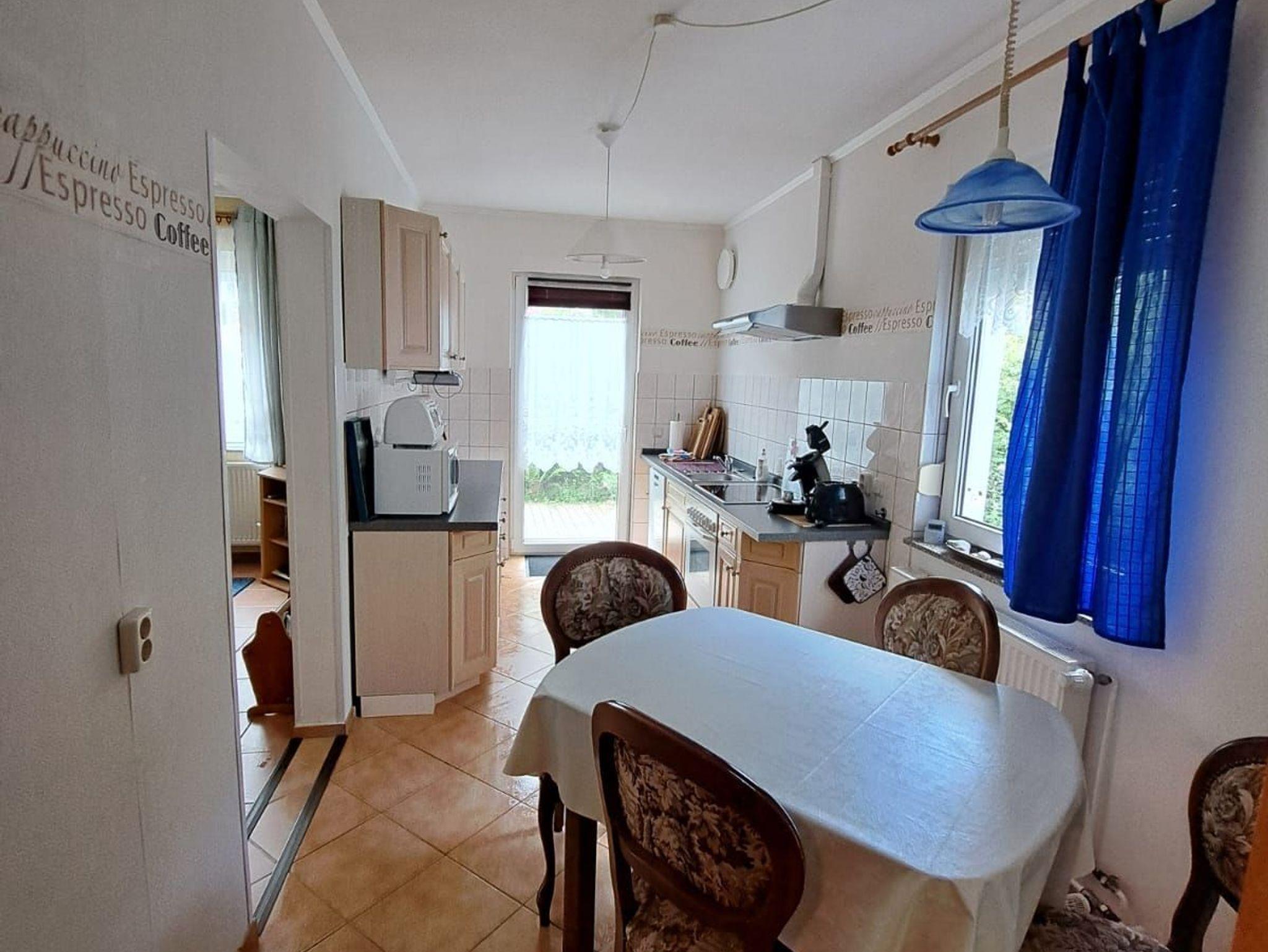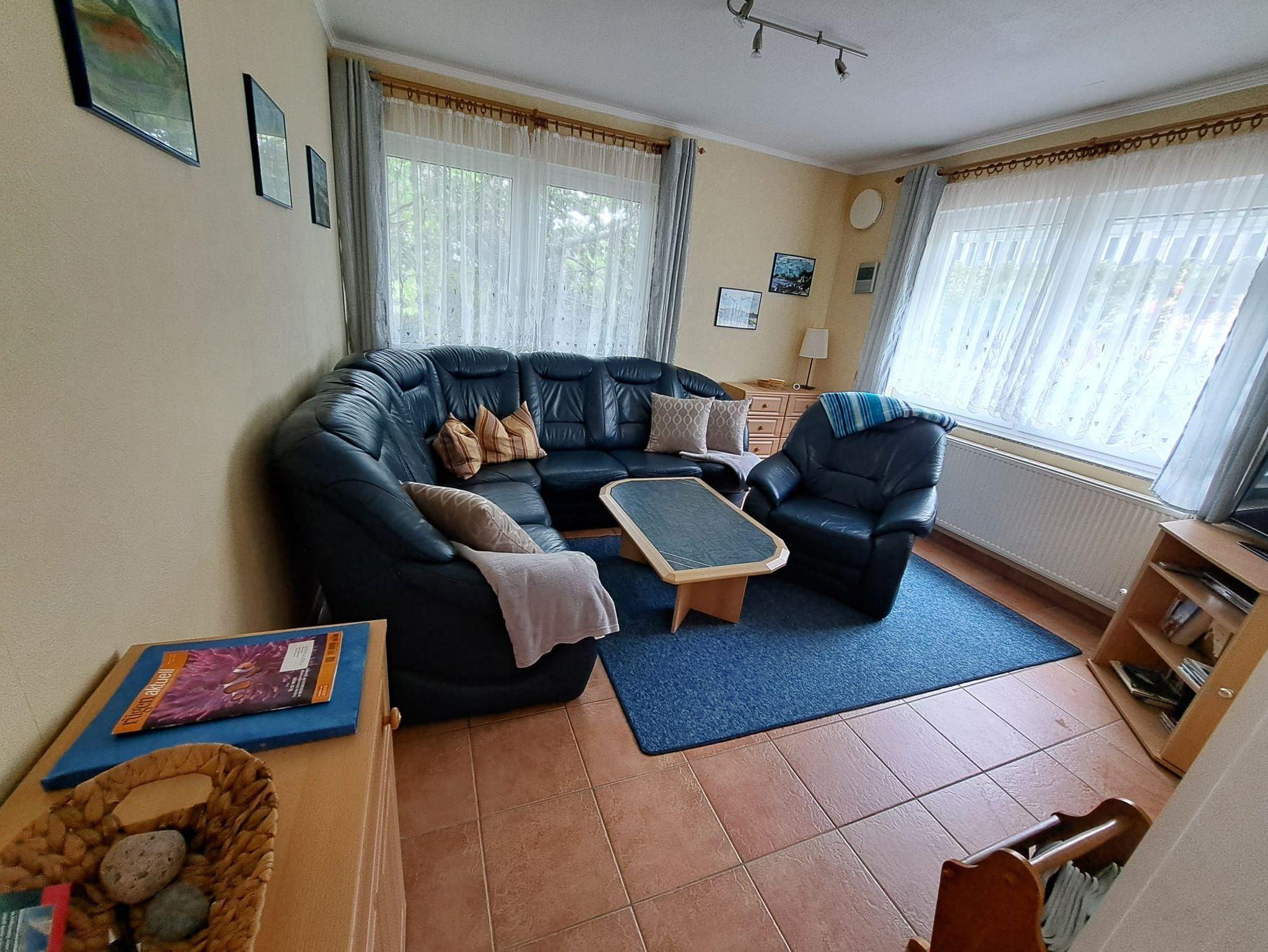Top-ausgestattete Ferienwohnung. Unser Ferienhaus ist massiv im Bungalowstil erbaut. Im Winter 2017 wurde das Objekt mit freundlichen Farben renoviert. Die Räume sind hoch und hell. Die Ausstattung mit Möbeln wird permanent vorgenommen. So ist die Küche im Winter 2015 erneuert worden. Der Fußboden im Schlafzimmer 1 ist aus Laminat, die restlichen Bodenflächen sind durchgängig gefliest. Weiterhin sind Küche und Wohnzimmer mit einer dezentralen Lüftungsanlage ausgestattet. Dadurch kennzeichnen wir das Objekt als allergikergerecht. Die Terrasse ist nach Süden ausgerichtet und schaut auf den großen Garten. In der Nachbarschaft befindet sich eine Kleingartenanlage.