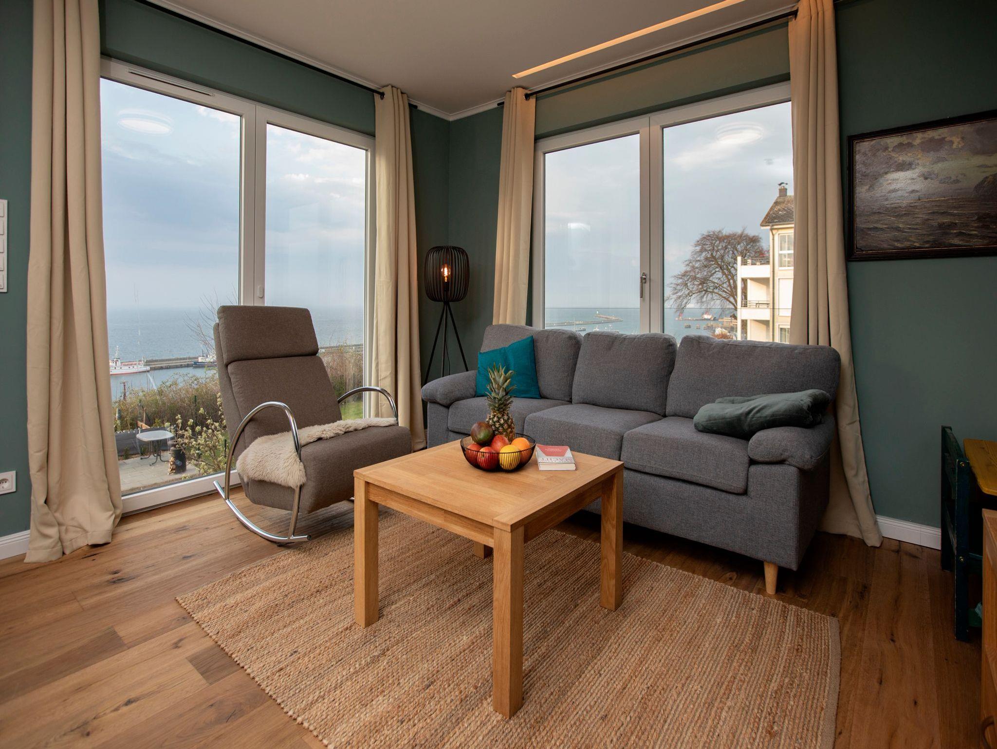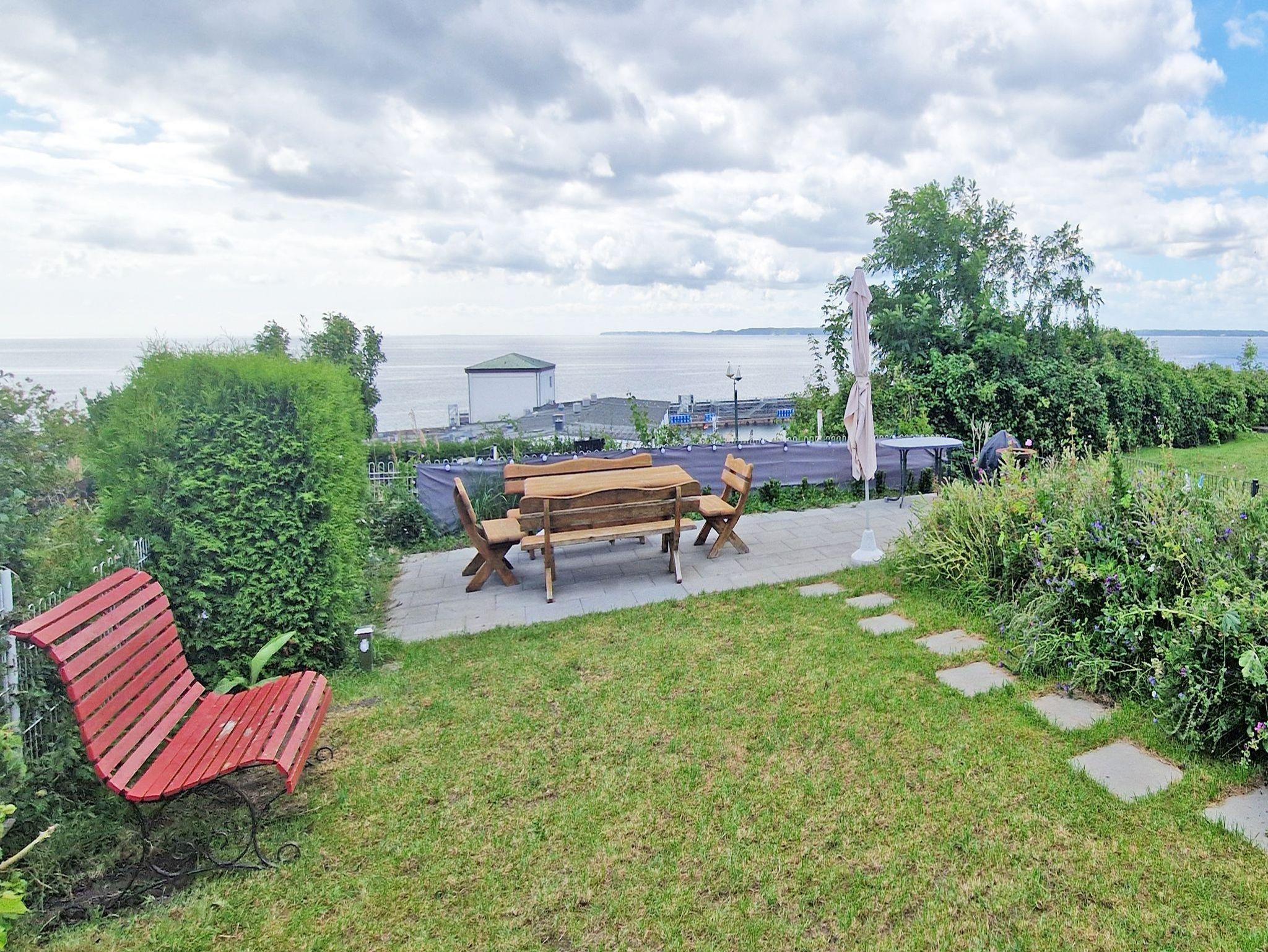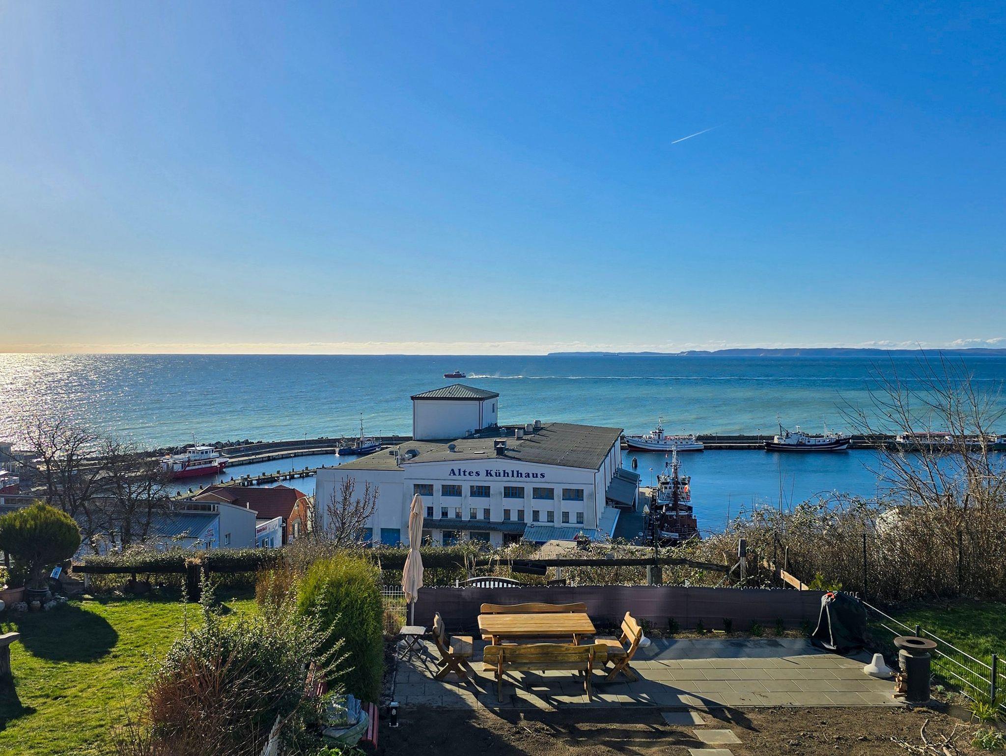 Haus Waterkant in Sassnitz bietet traumhaften Meerblick, Sauna und eingezäunten Garten für erholsame Tage mit Familie oder Freunden.