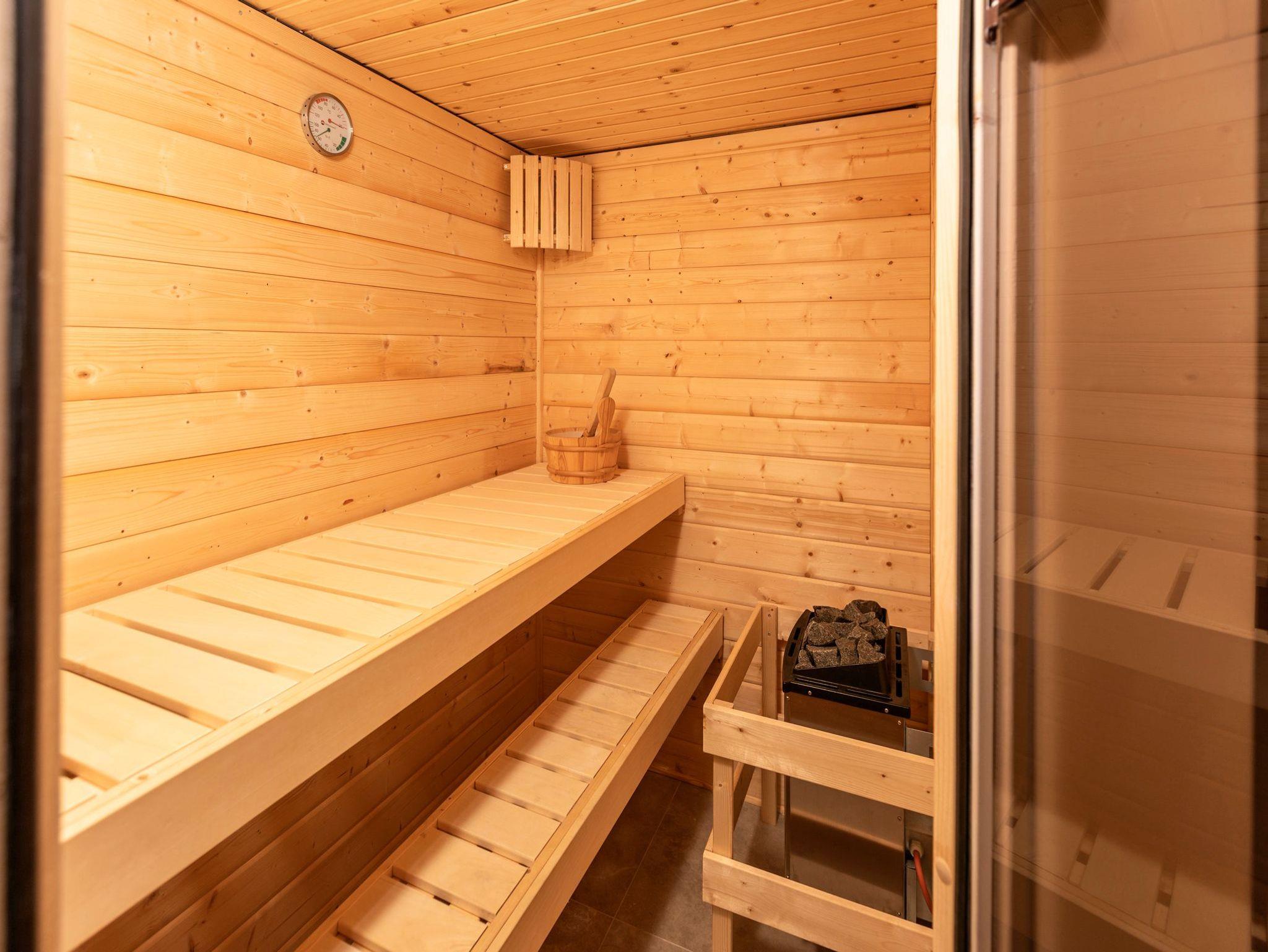 • Saunabereich mit finnischer Sauna und zwei Liegestühlen